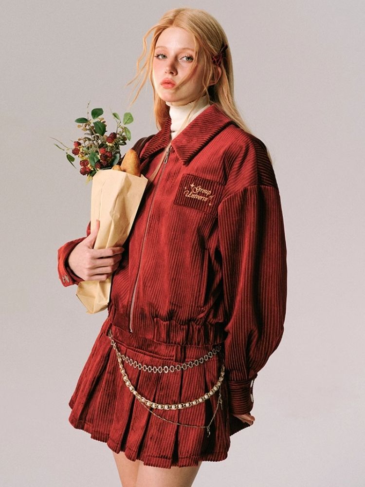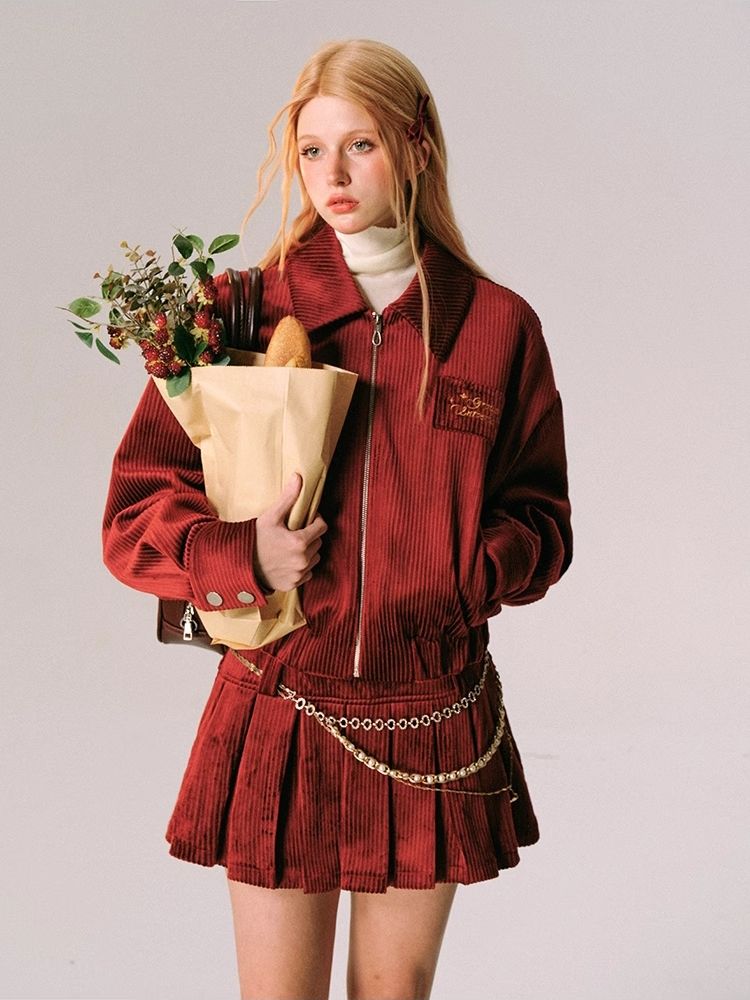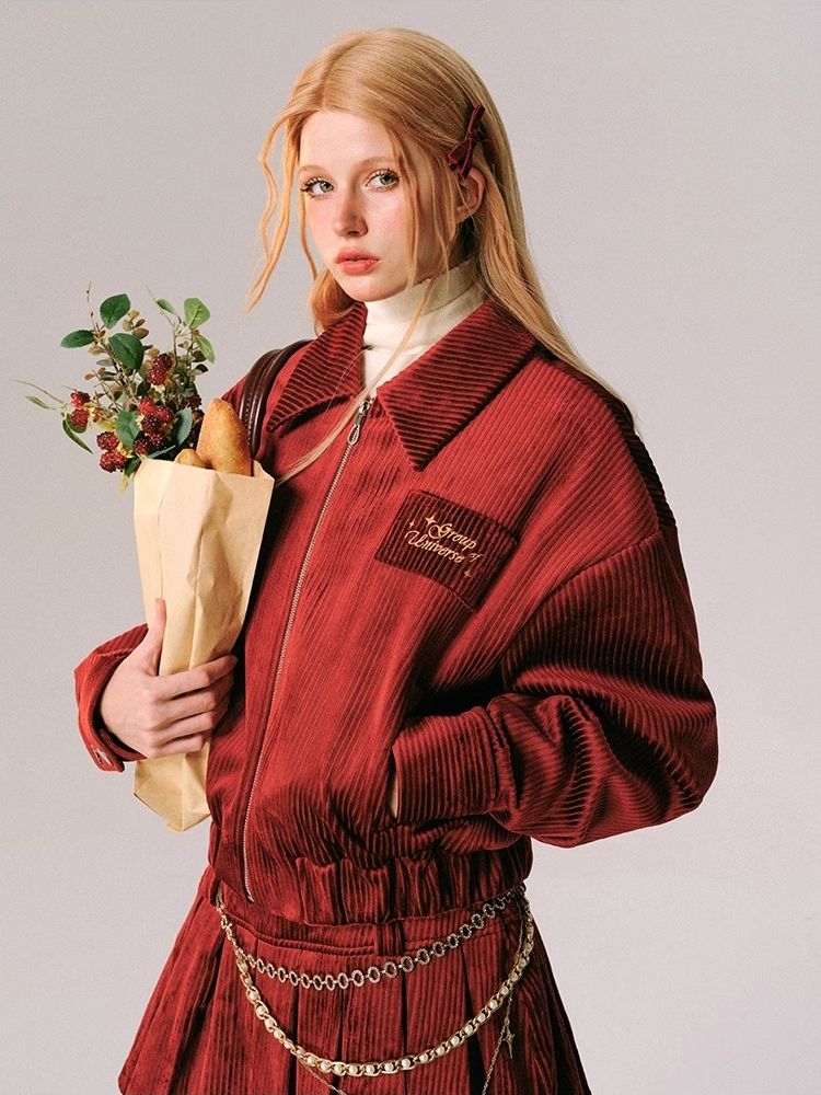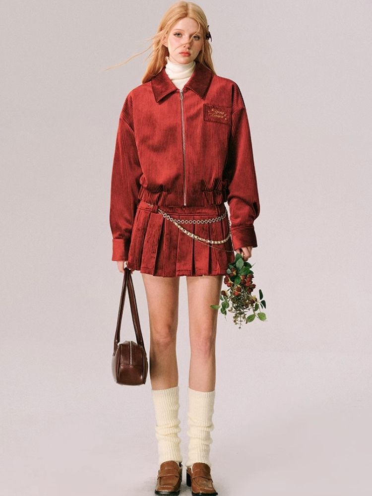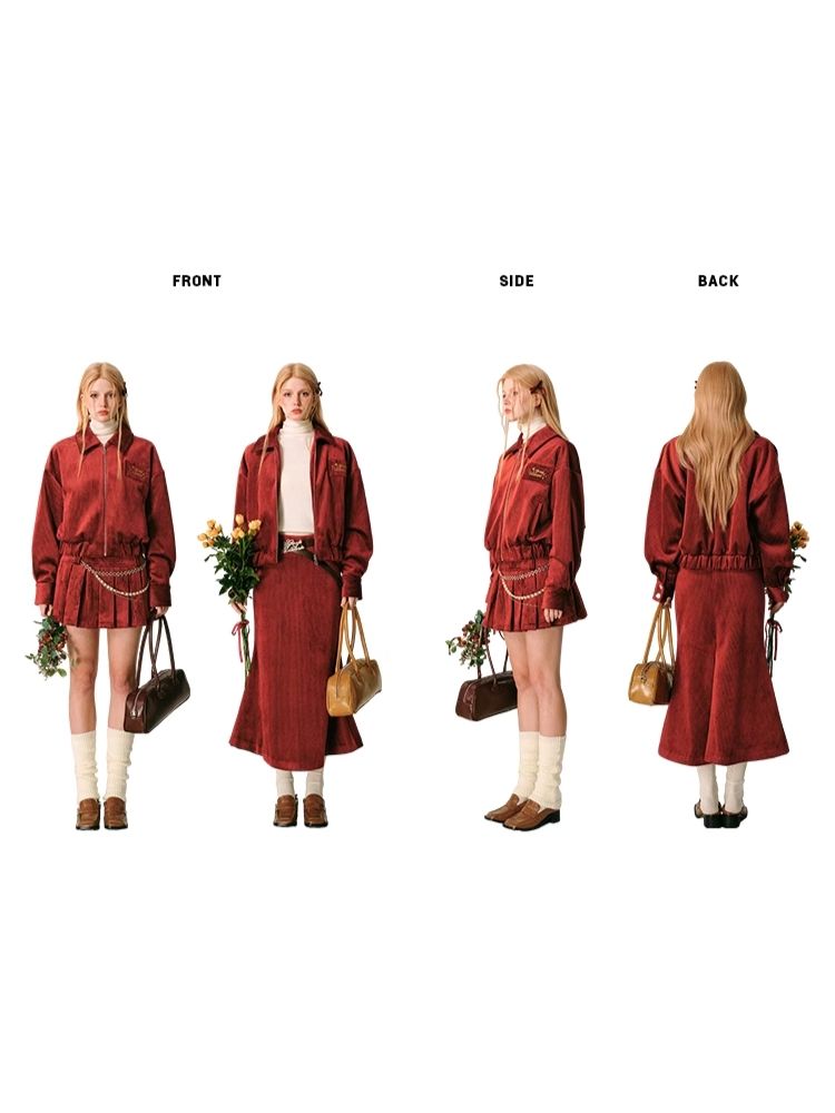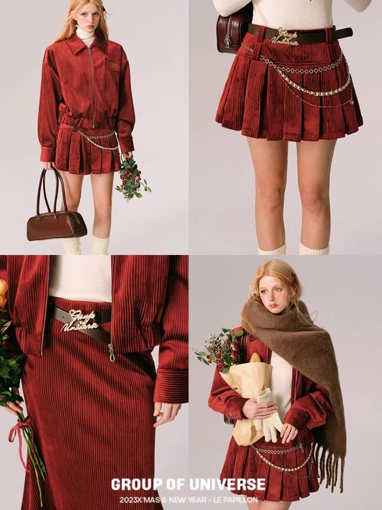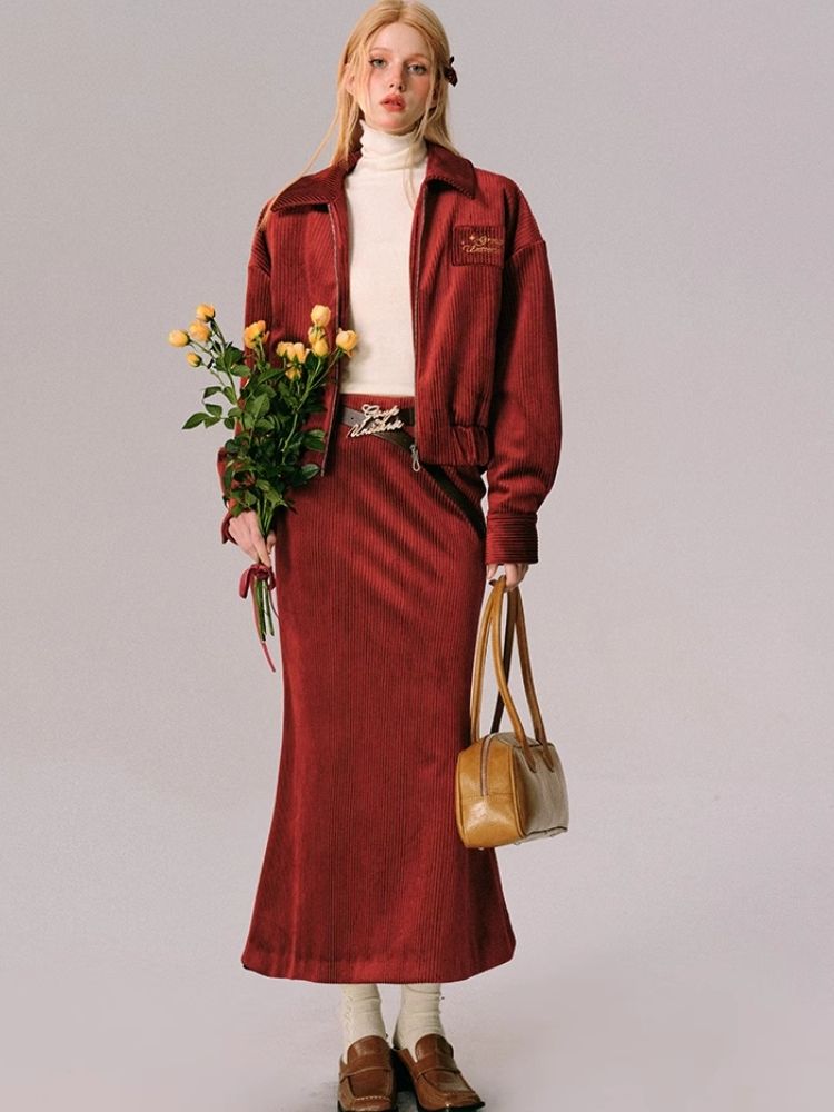 Velvet Jacket Half Skirt Two Piece Red Christmas Set【s0000005606】