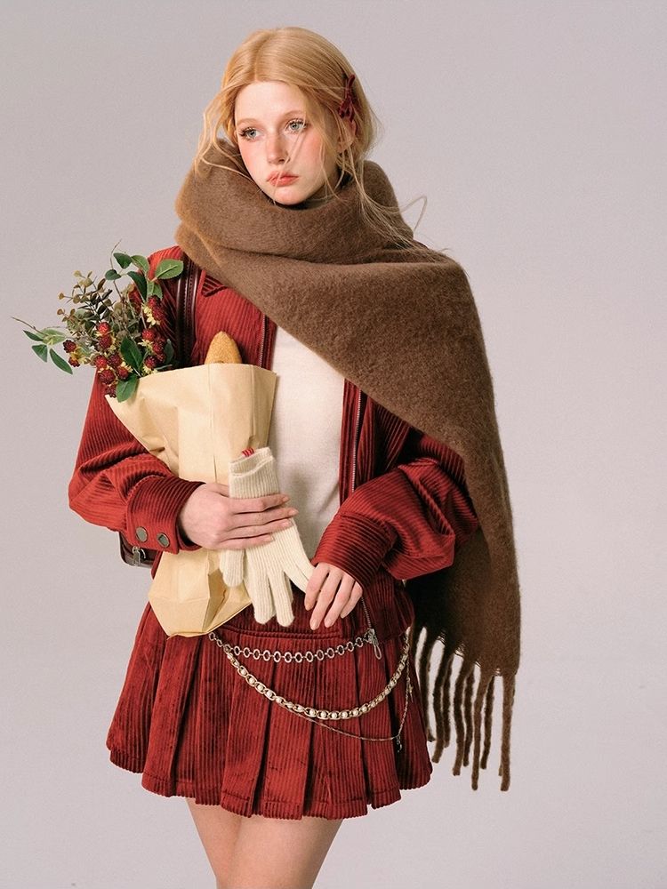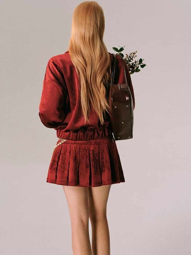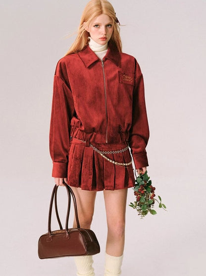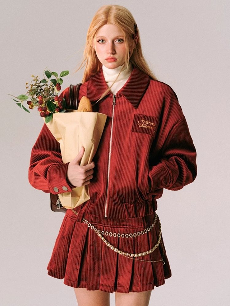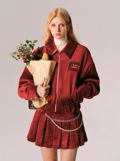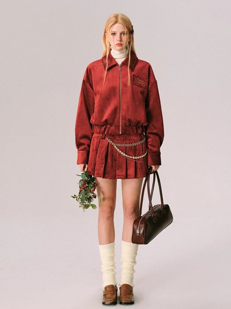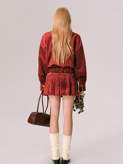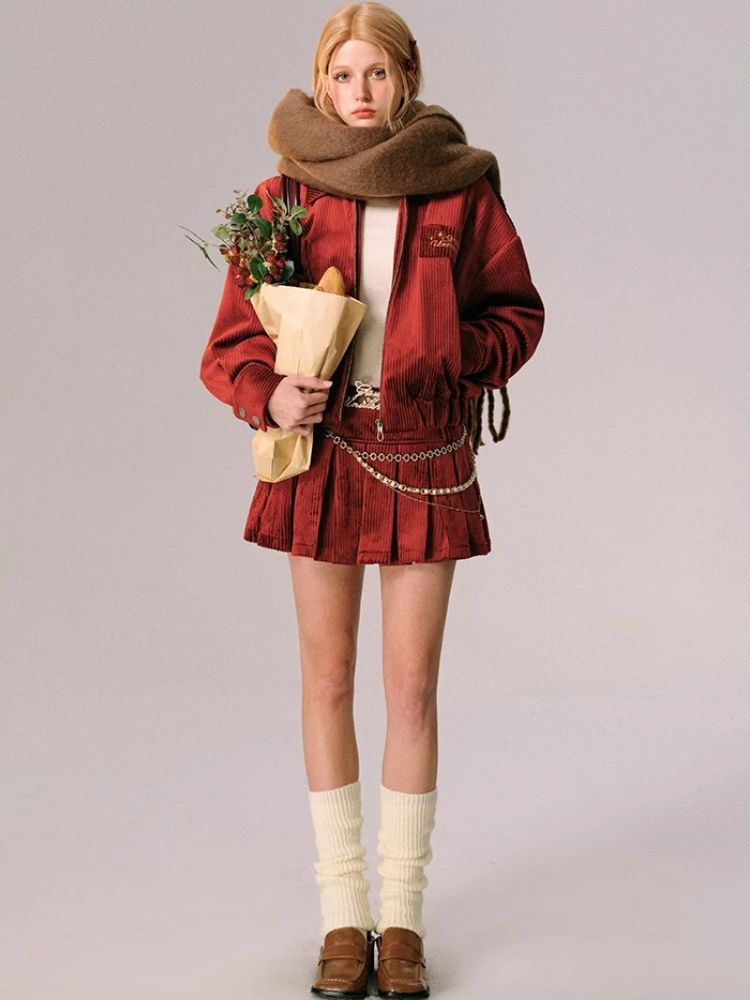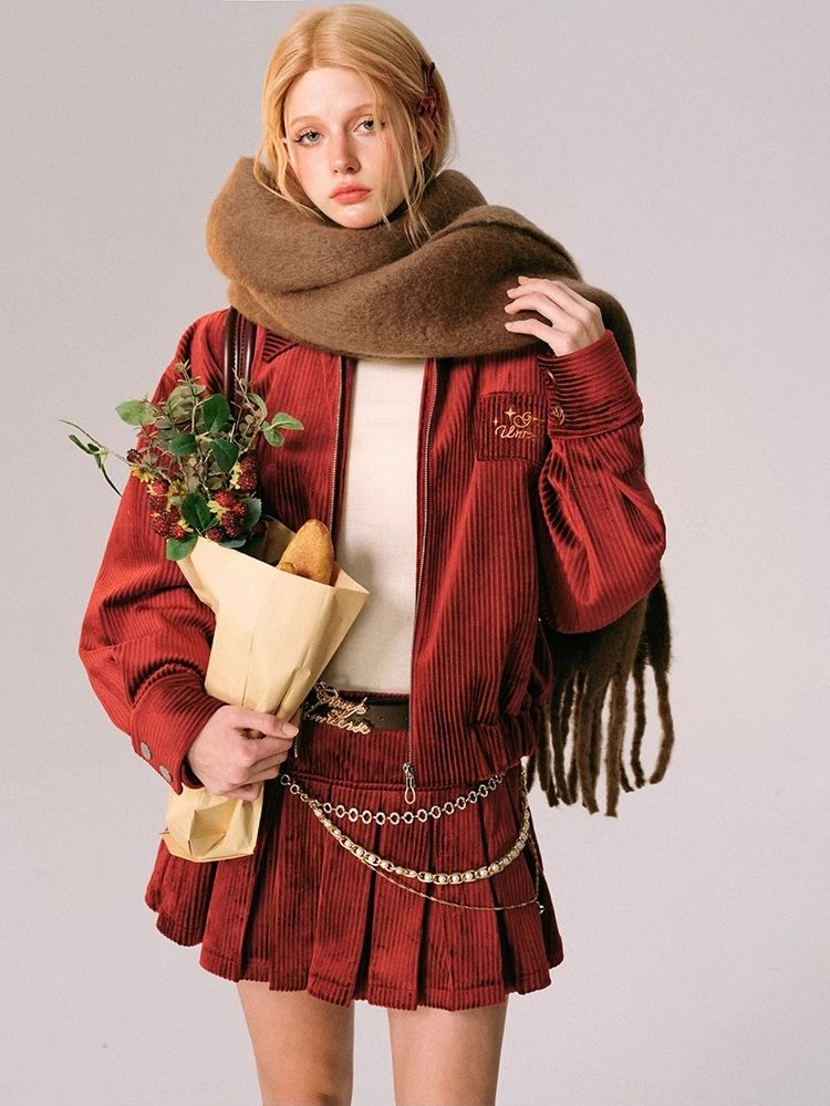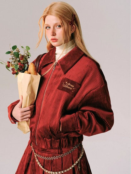 Velvet Jacket Half Skirt Two Piece Red Christmas Set【s0000005606】
