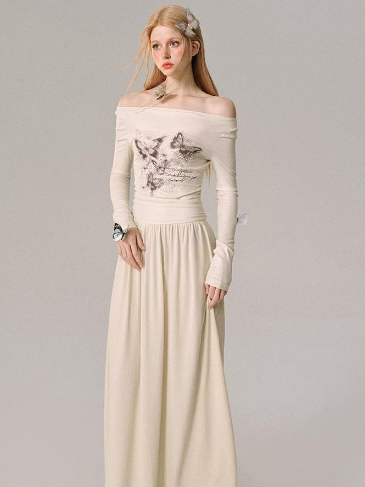 Moon Goddess Printed Skirt One Neck Dresses【s0000005612】