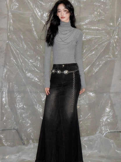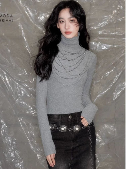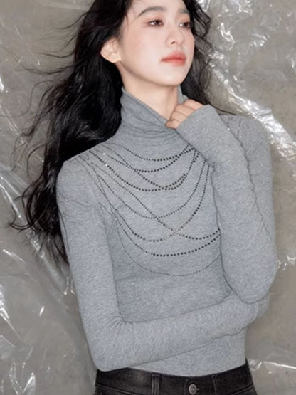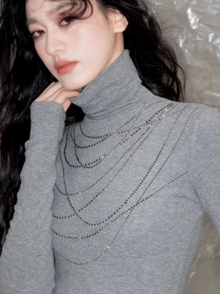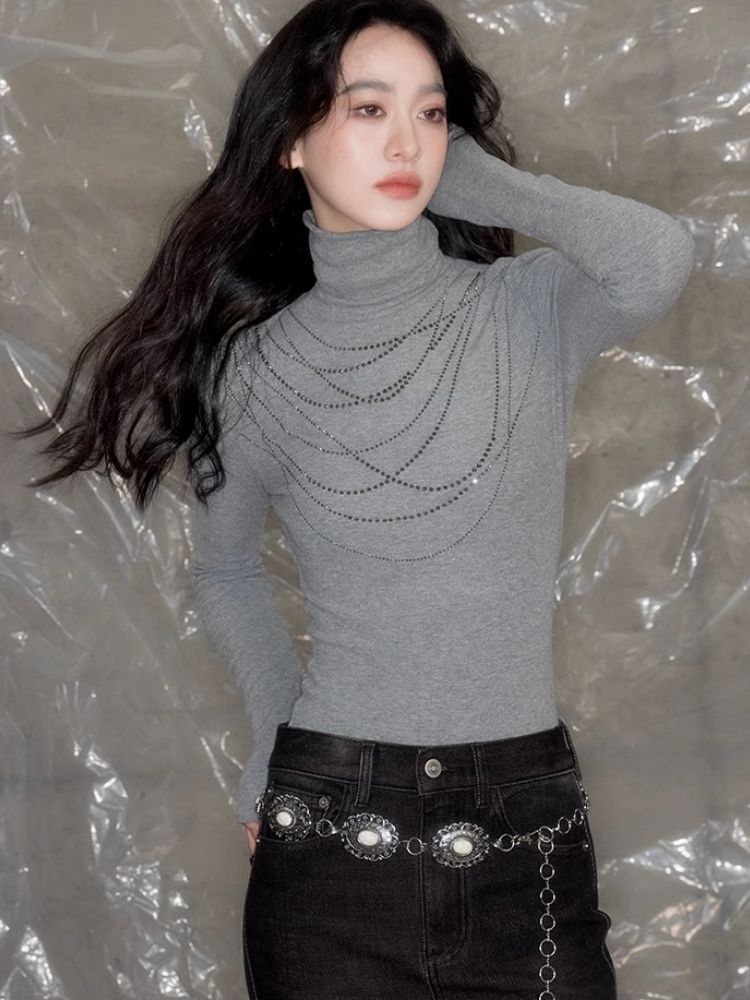 Stacked masonry necklace turtleneck bottoming shirt【s0000005618】