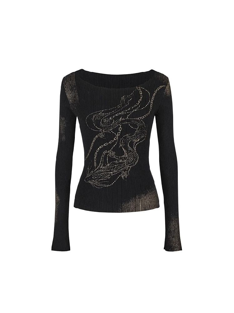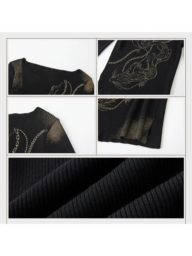 Dragon Print Handmade Printed Sweater【s0000005643】