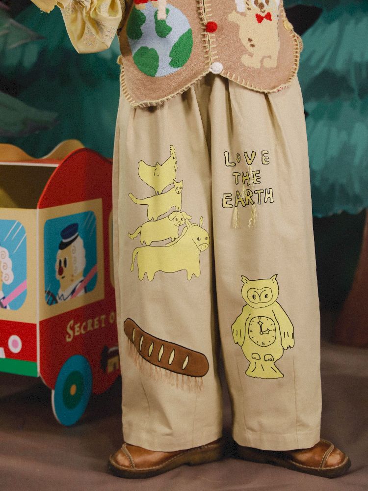 Bremen Illustration Print Wide Leg Pants【s0000005681】