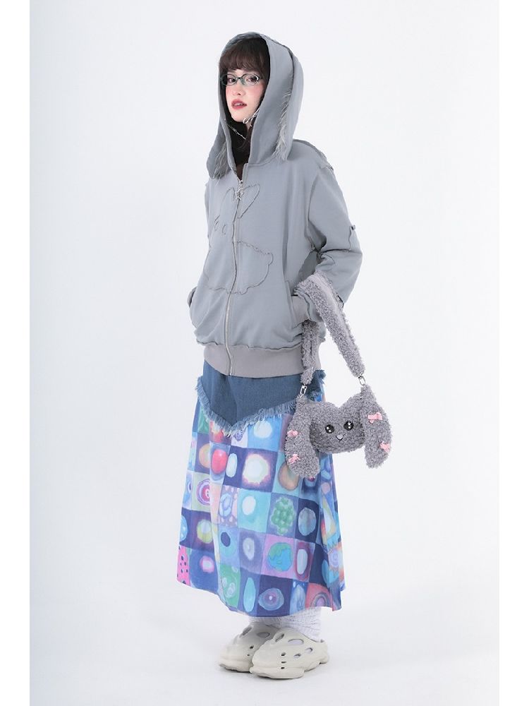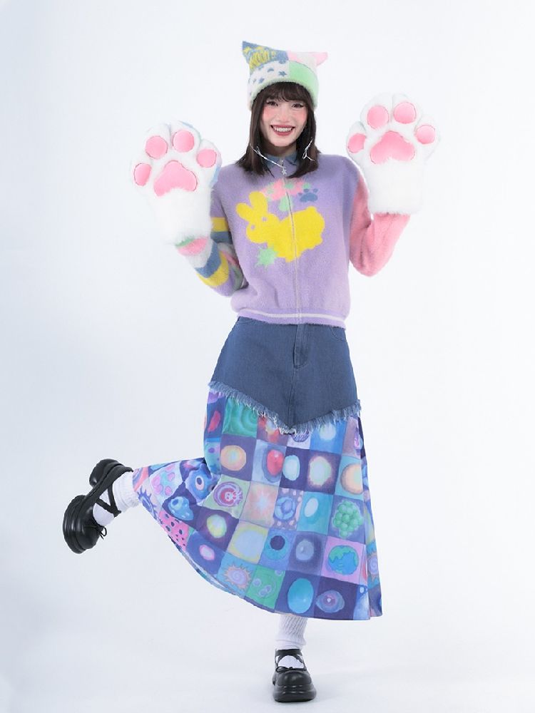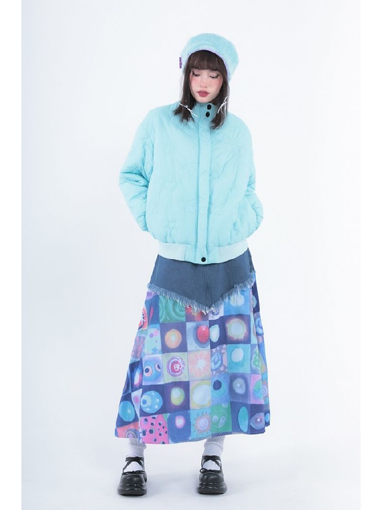 Plaid Patchwork Denim Maxi Skirt【s0000005728】