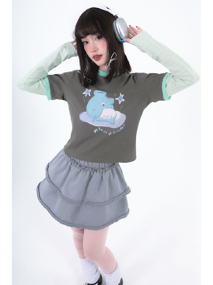 Fake Two Long Sleeve Short Version T-Shirt【s0000005730】