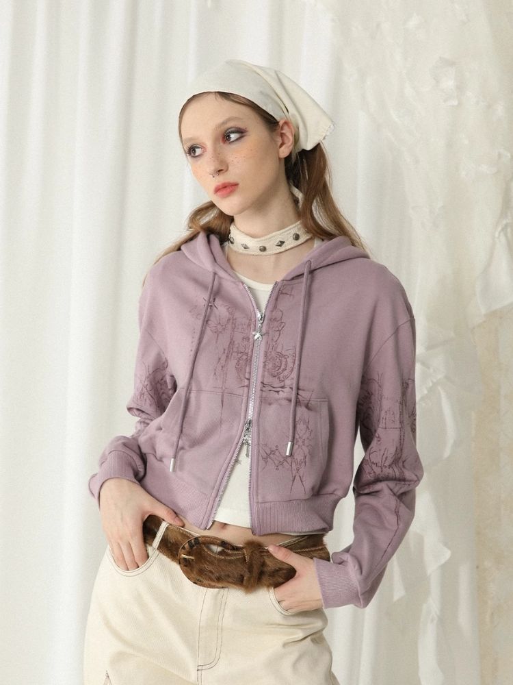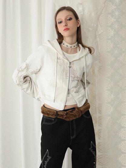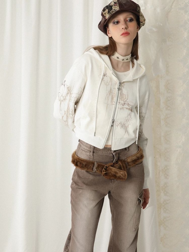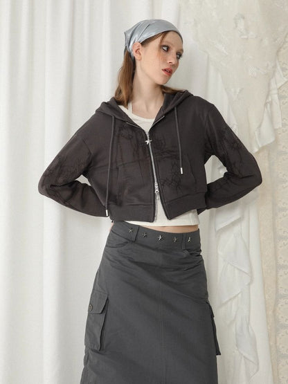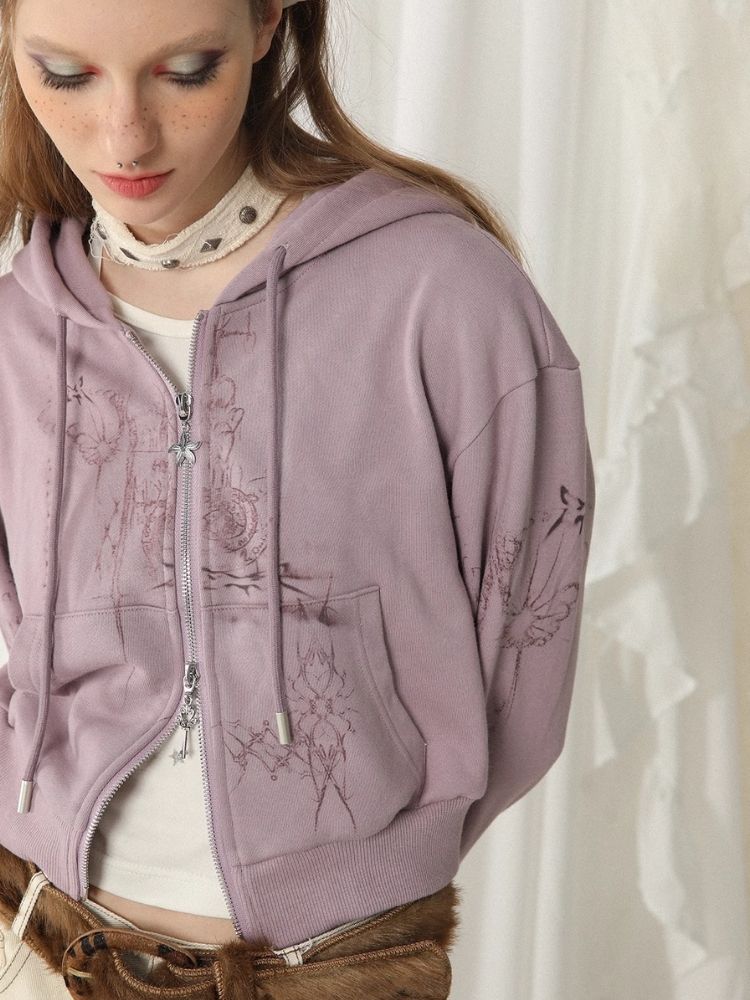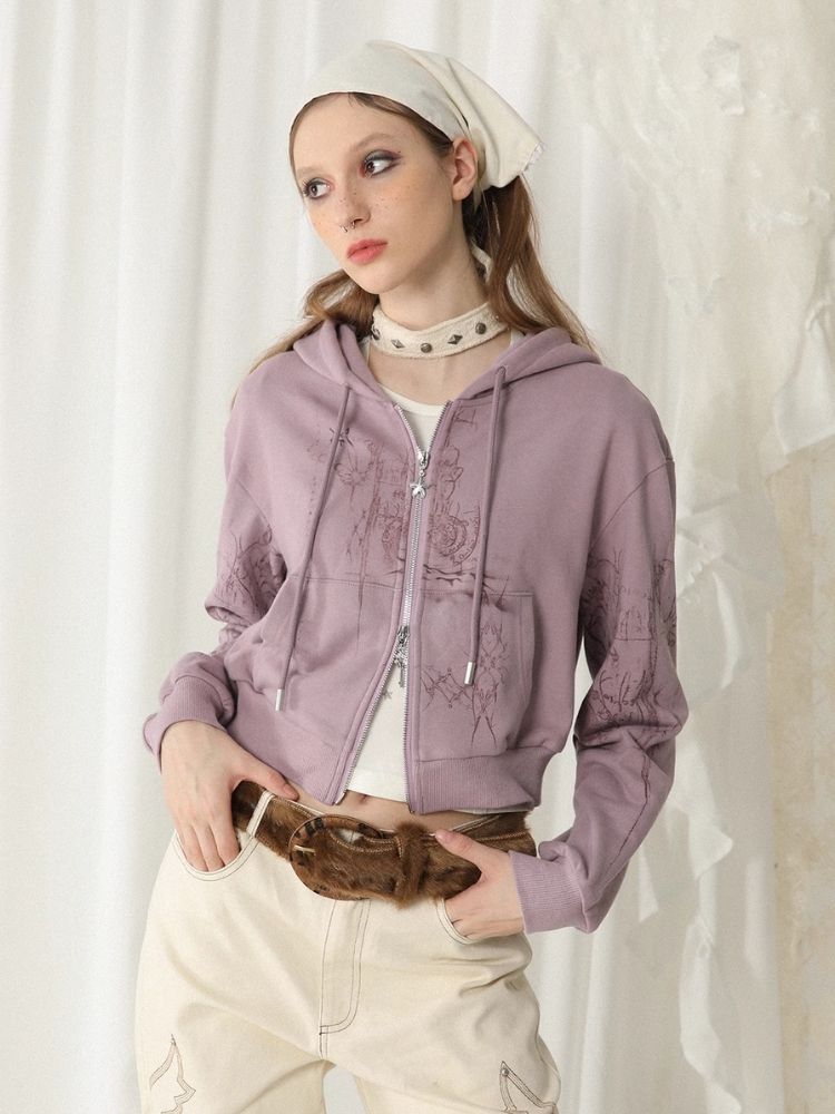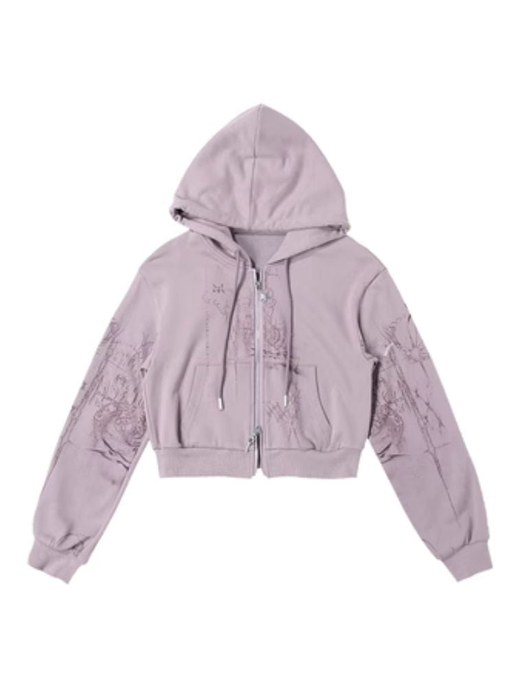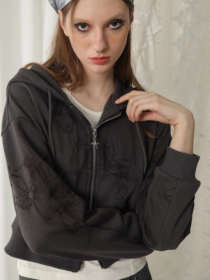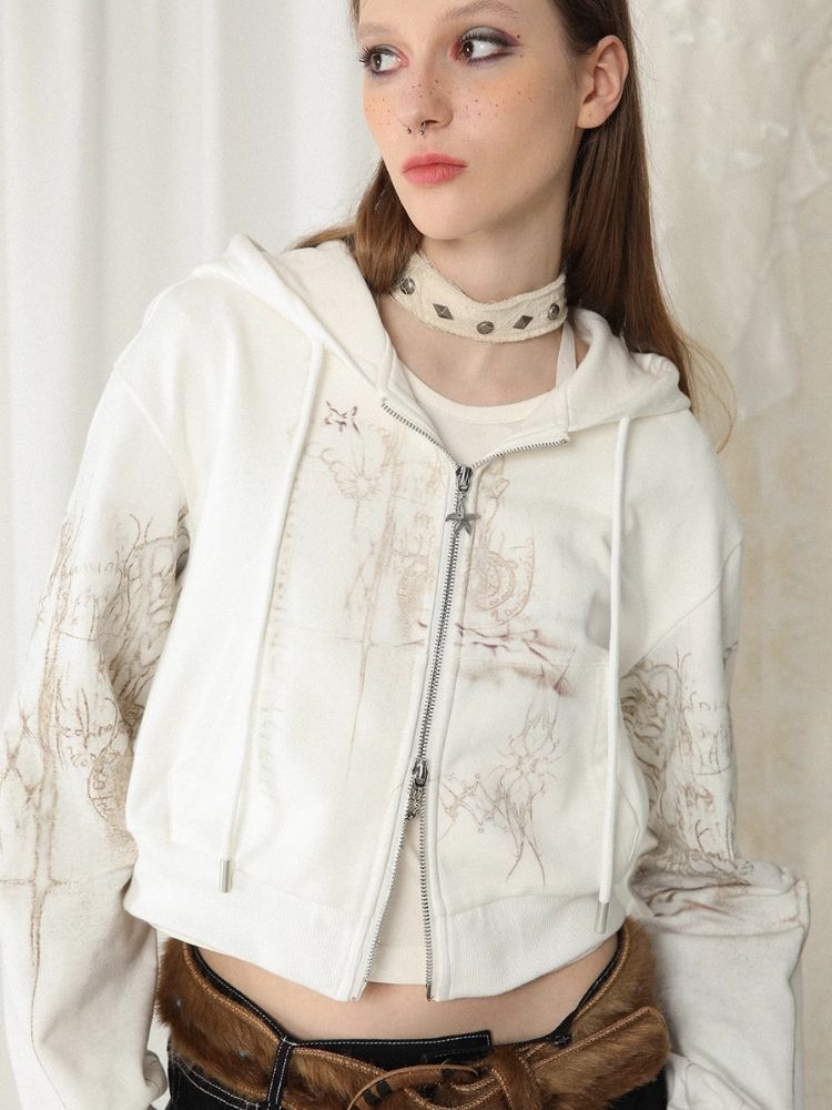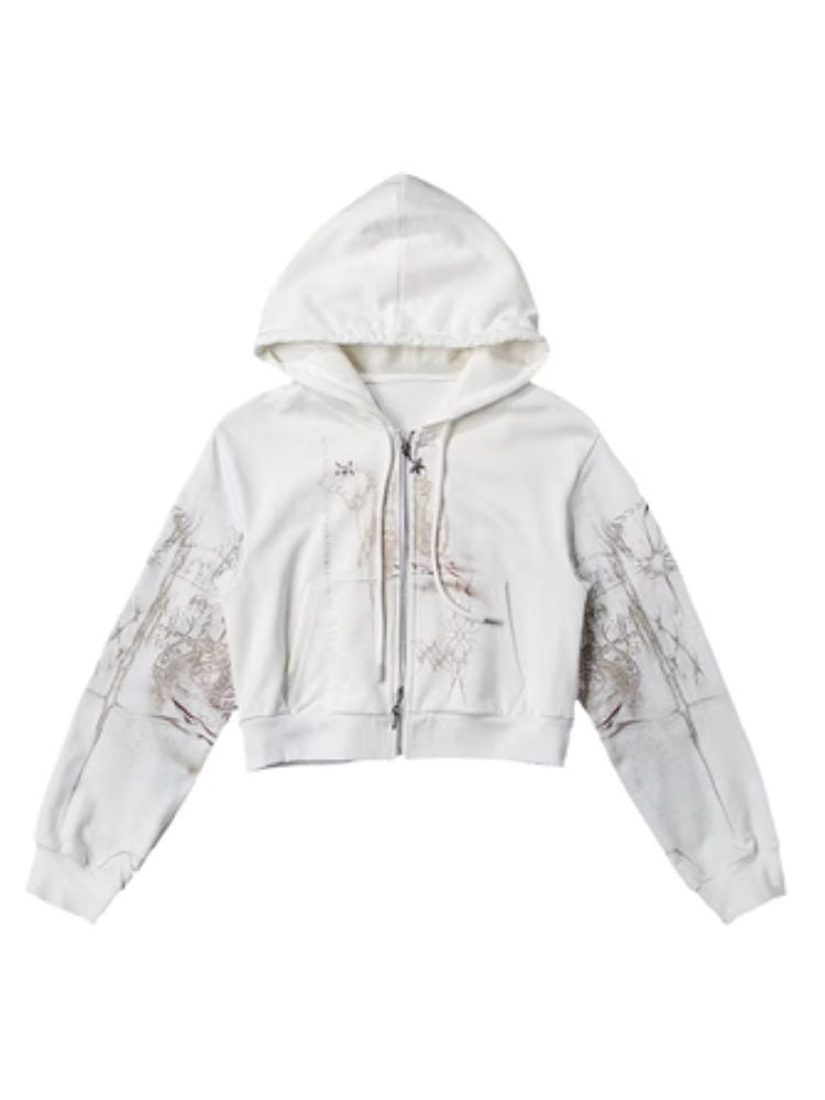 Tattoo Print Hooded Short Sweatshirt【s0000005741】