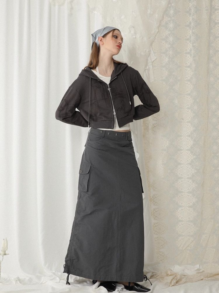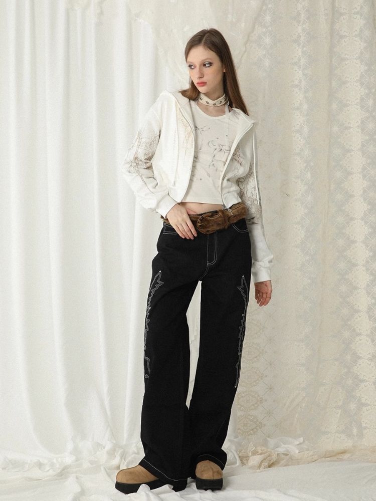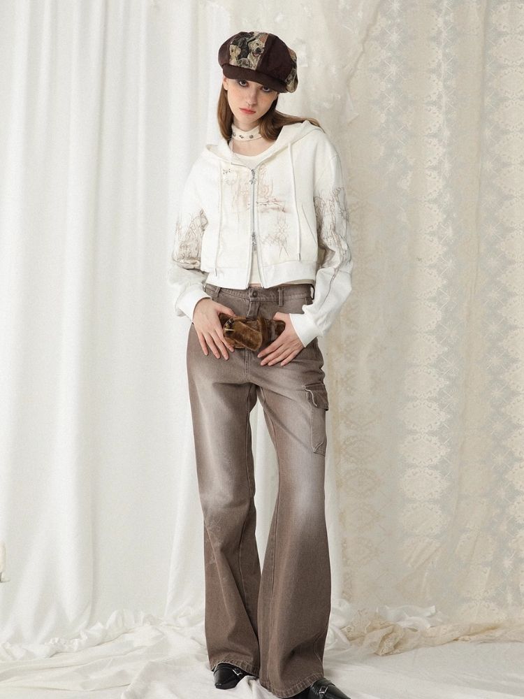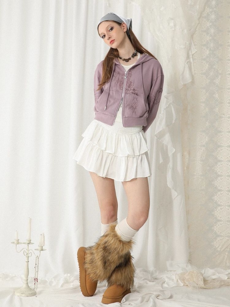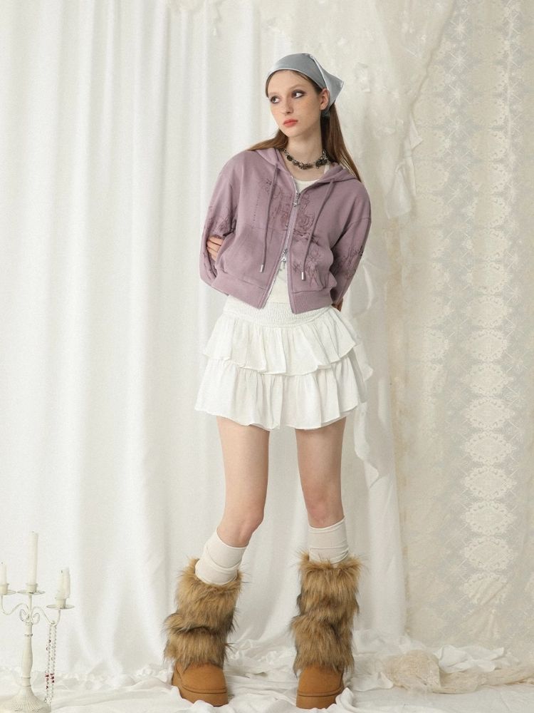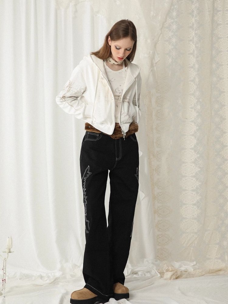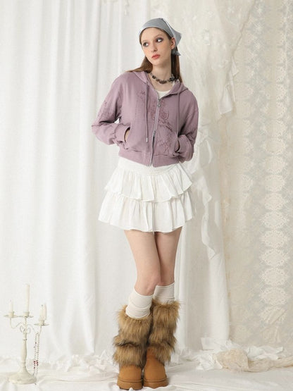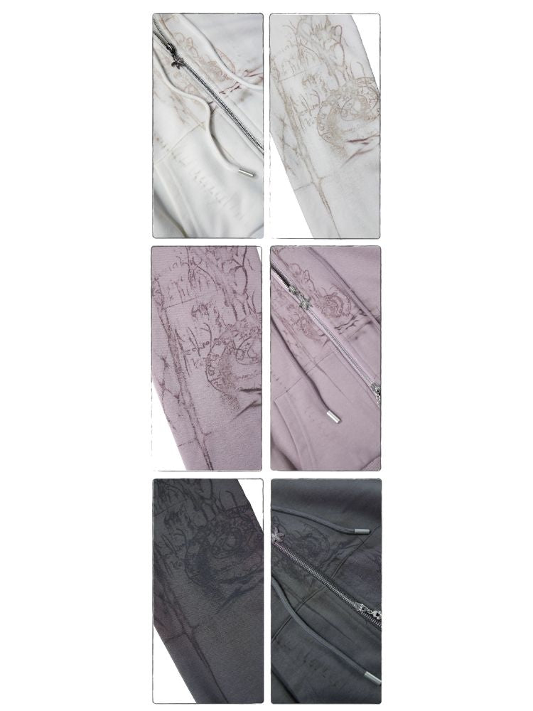 Tattoo Print Hooded Short Sweatshirt【s0000005741】