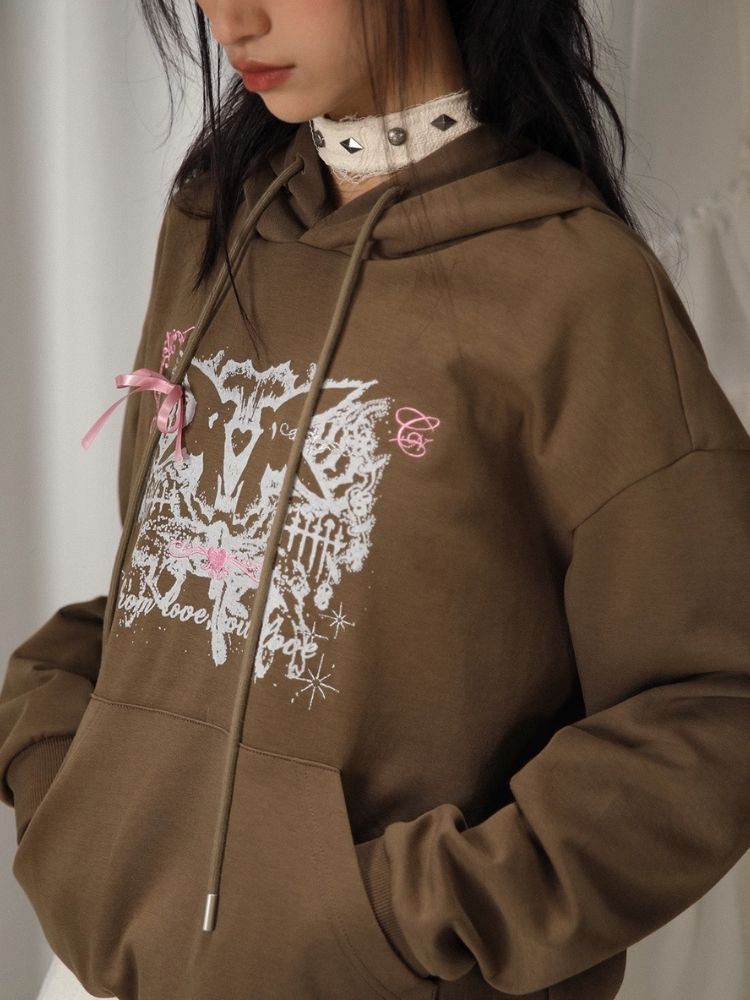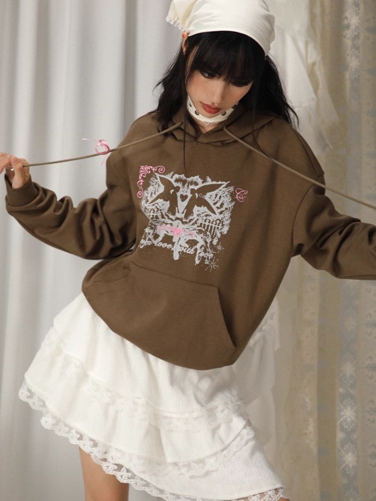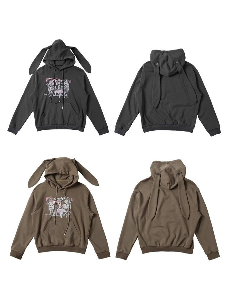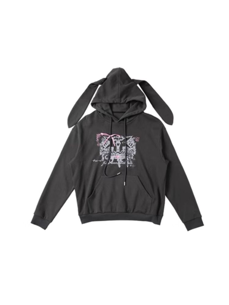 Rabbit Ears Hooded Printed Sweatshirt【s0000005747】