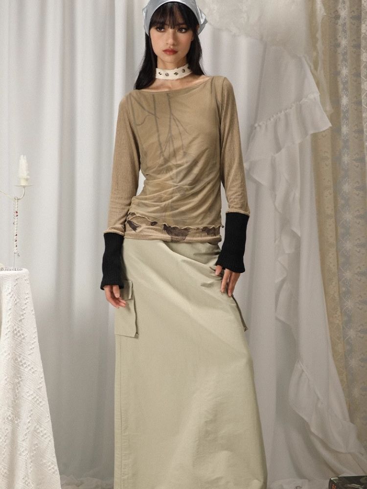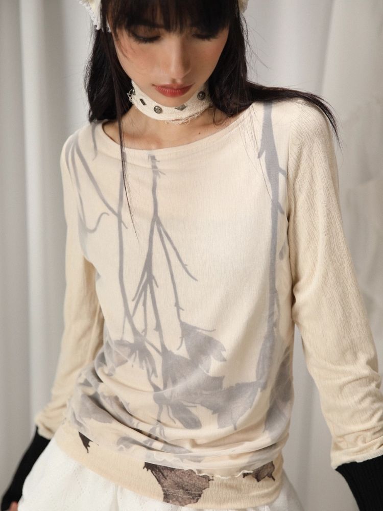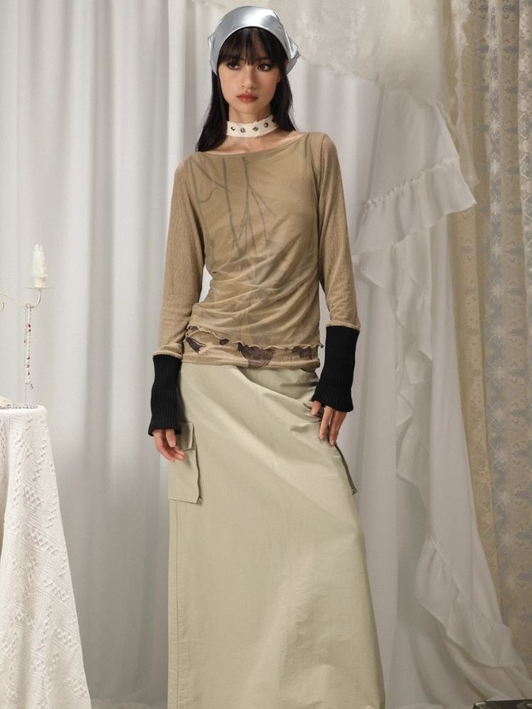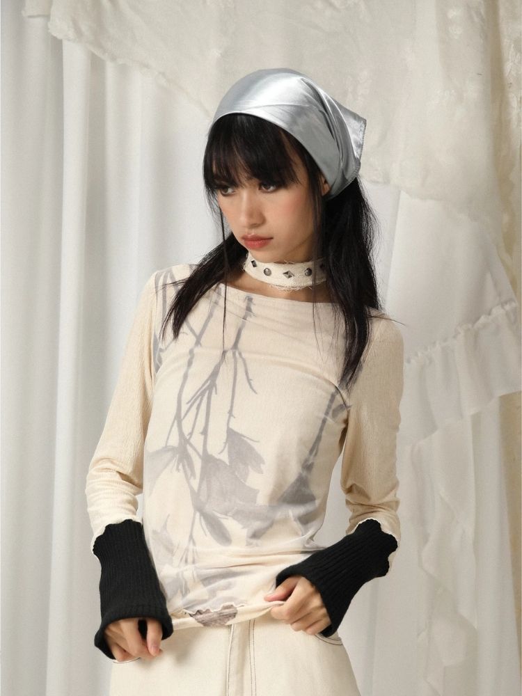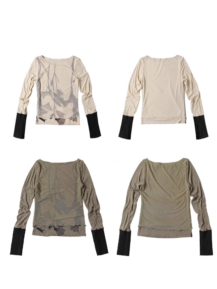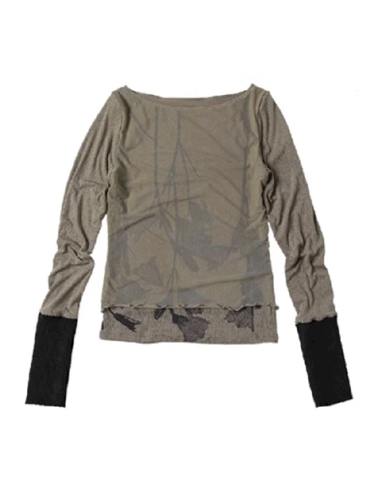 Printed Mesh Fake Two Piece Long Sleeve T-Shirt【s0000005749】
