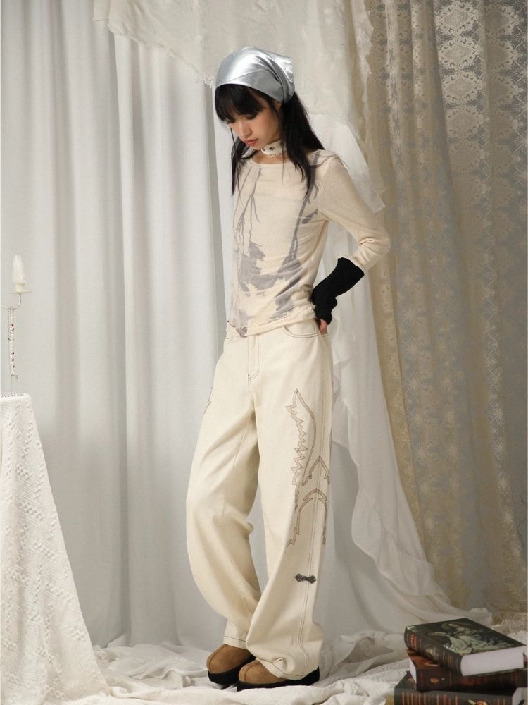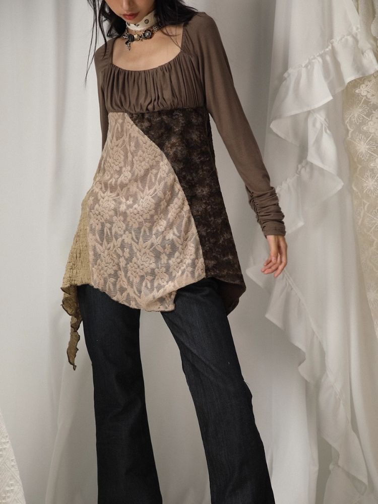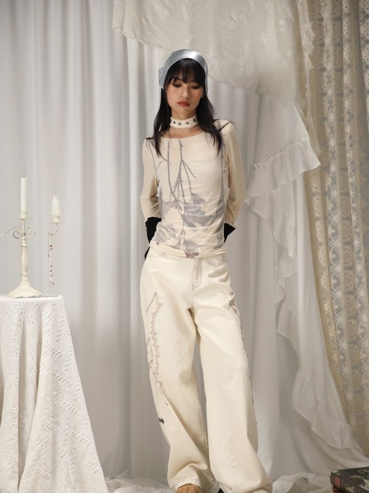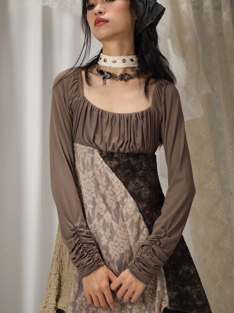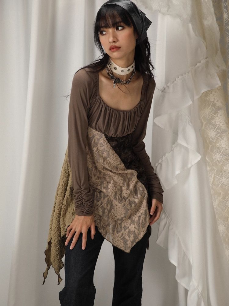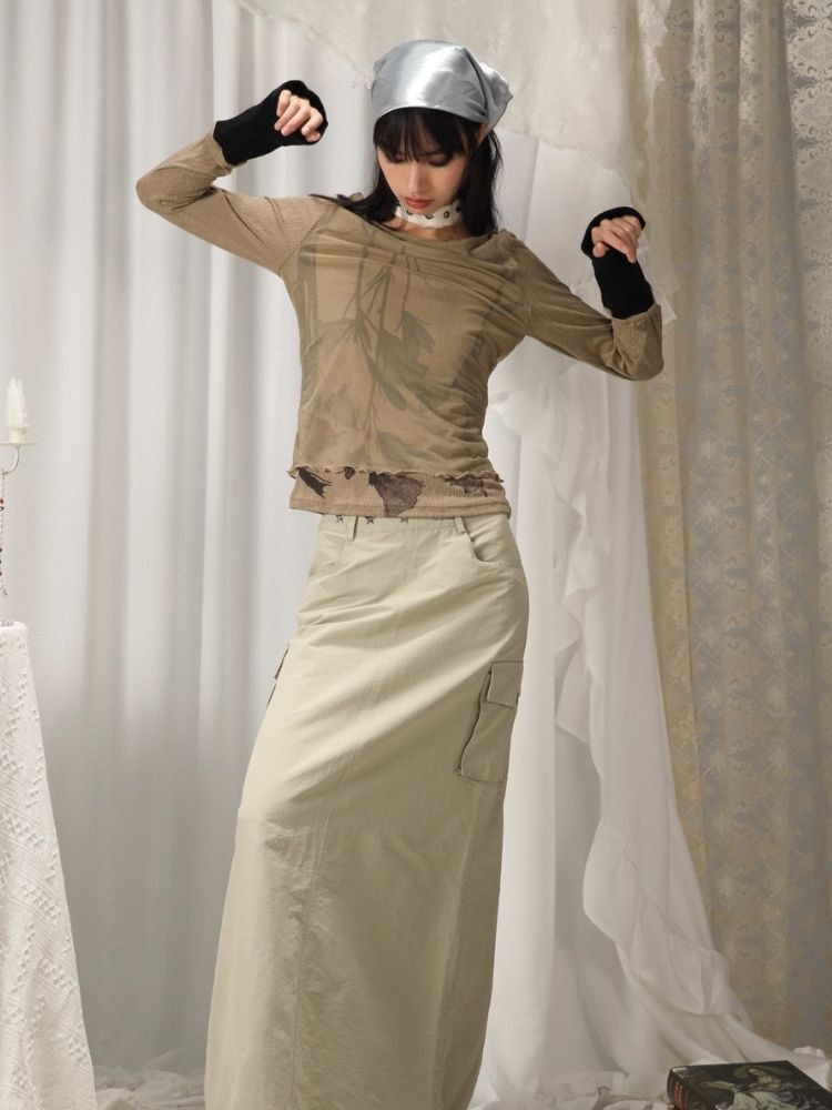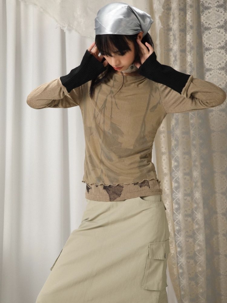 Printed Mesh Fake Two Piece Long Sleeve T-Shirt【s0000005749】