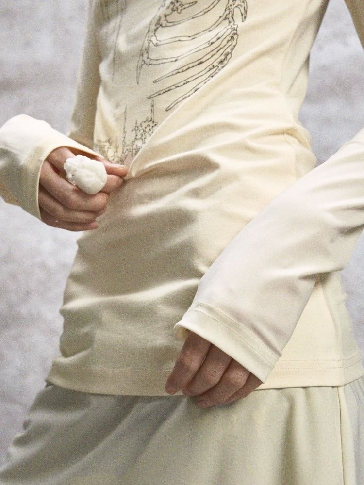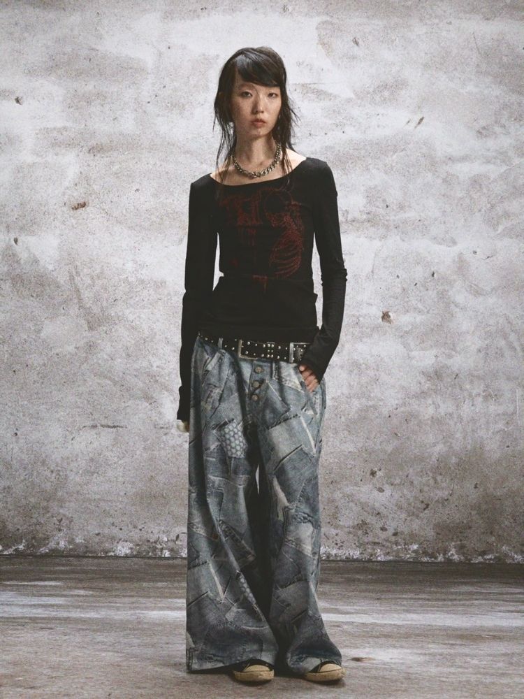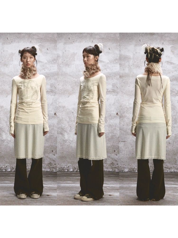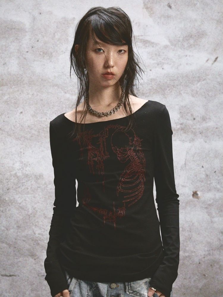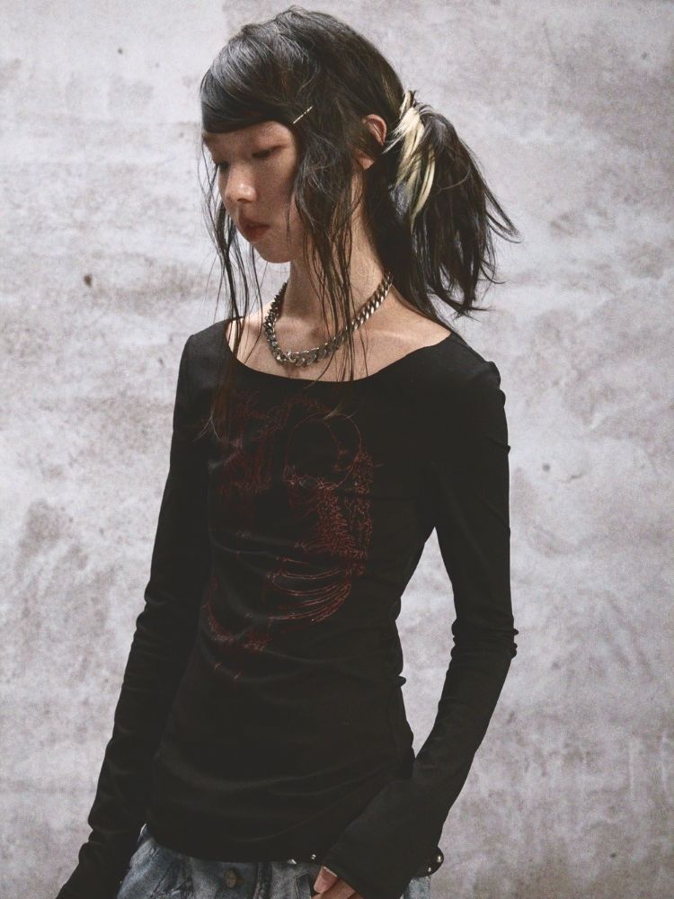 Large Neckline Printed Long Sleeve T【s0000005764】