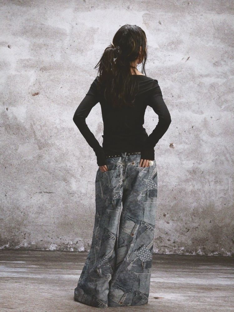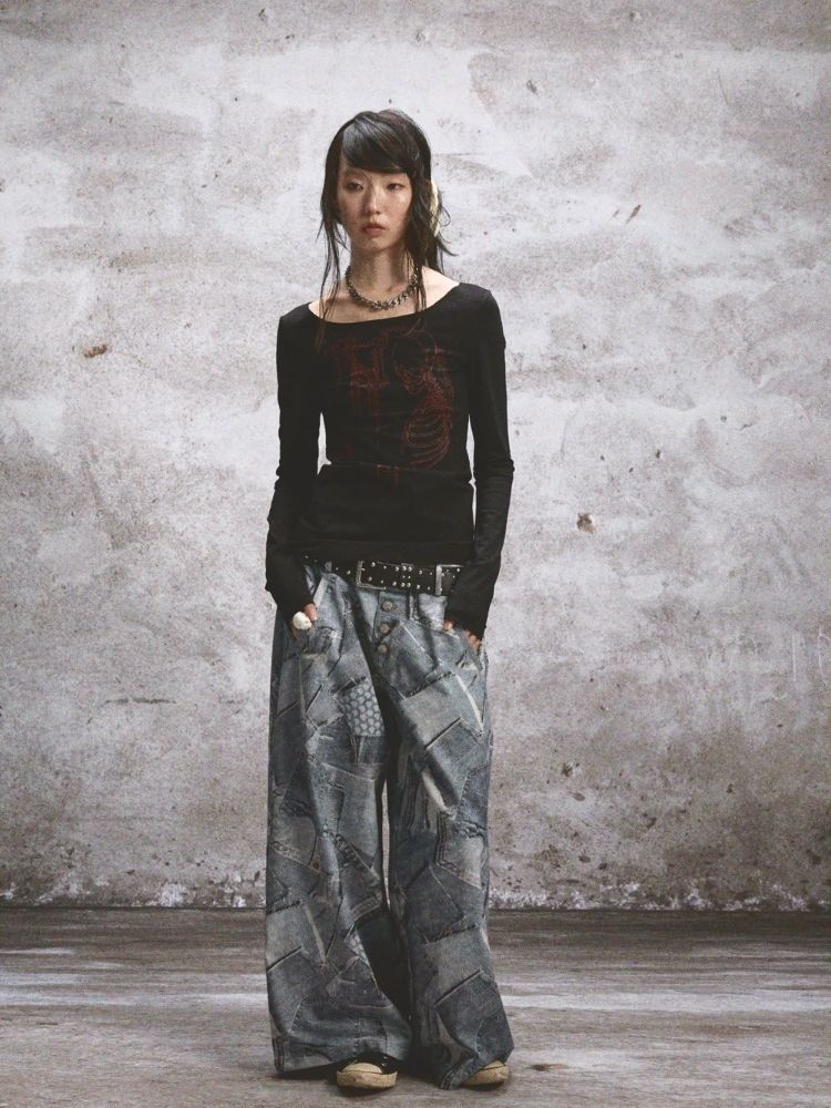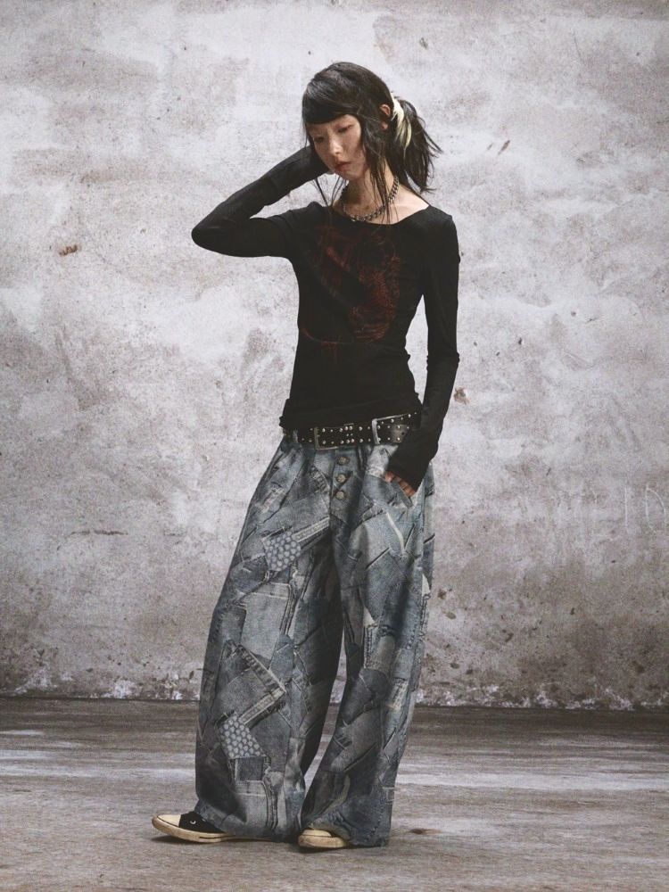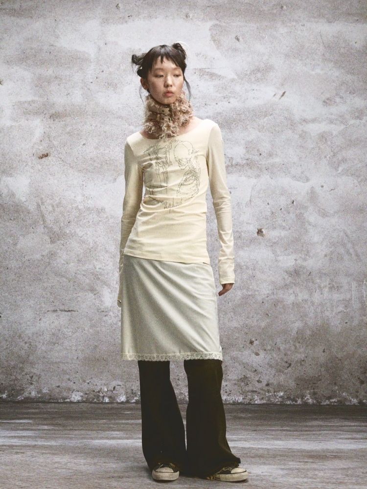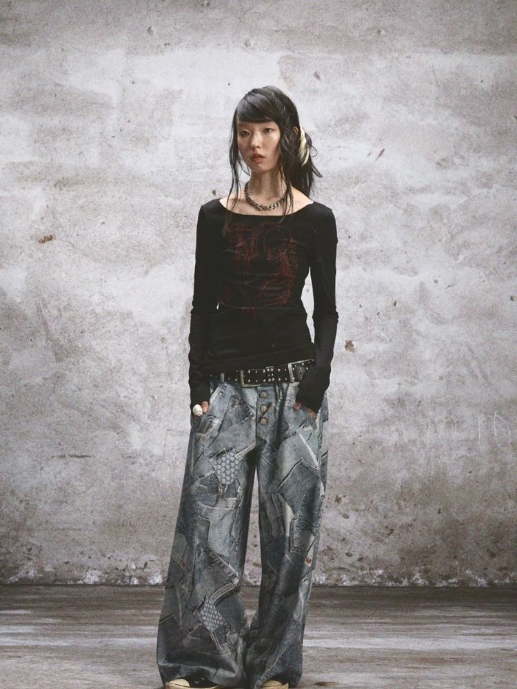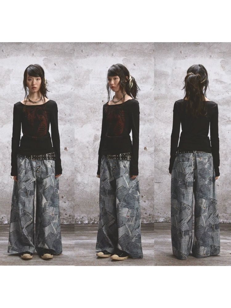 Large Neckline Printed Long Sleeve T【s0000005764】