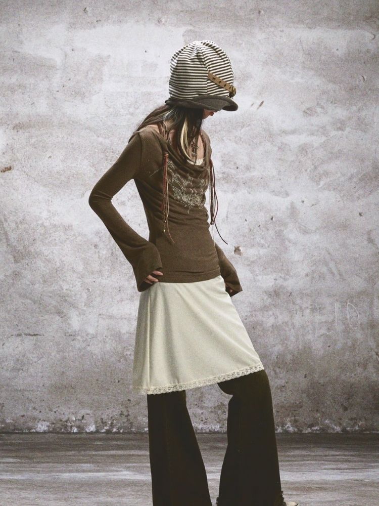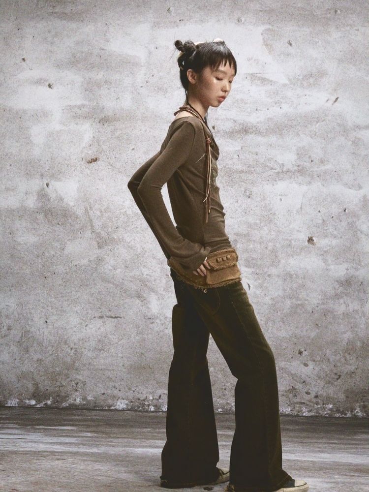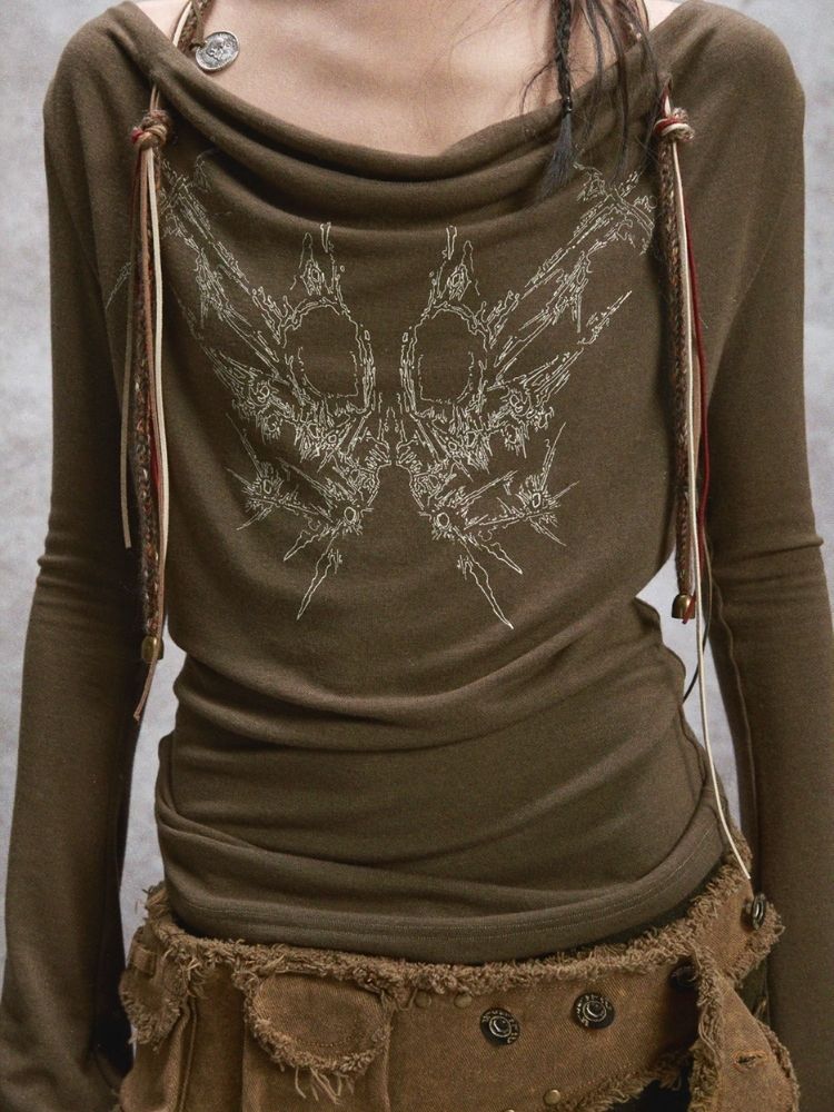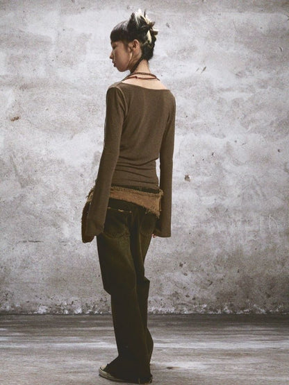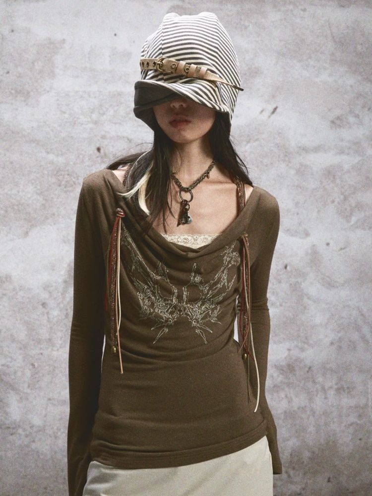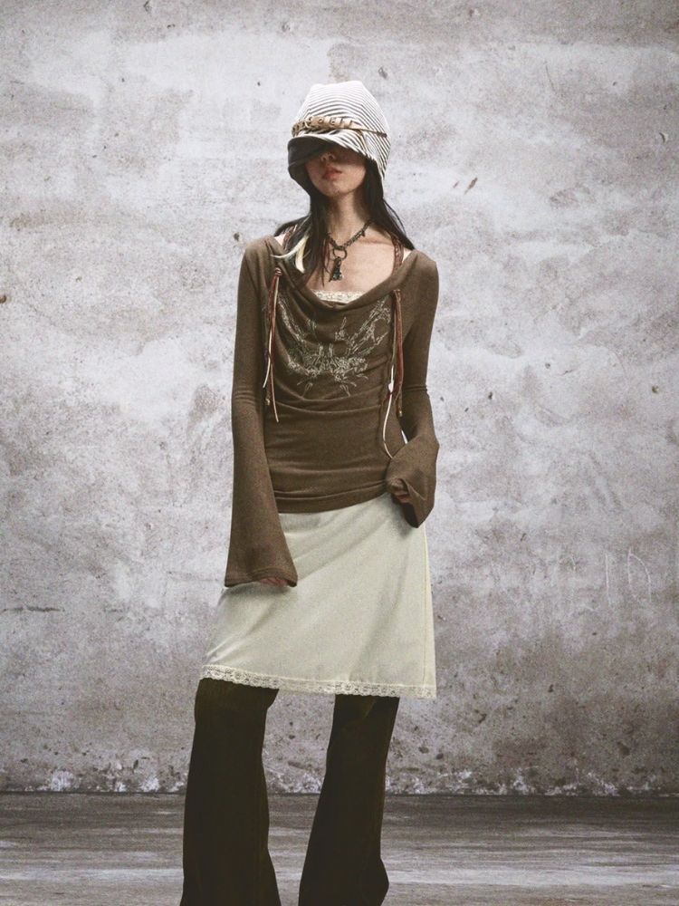 Hanging Neck Long Sleeve Outer Bottom t【s0000005768】