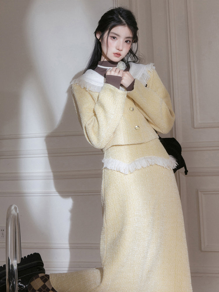 Yellow jacket + skirt set【s0000005797】