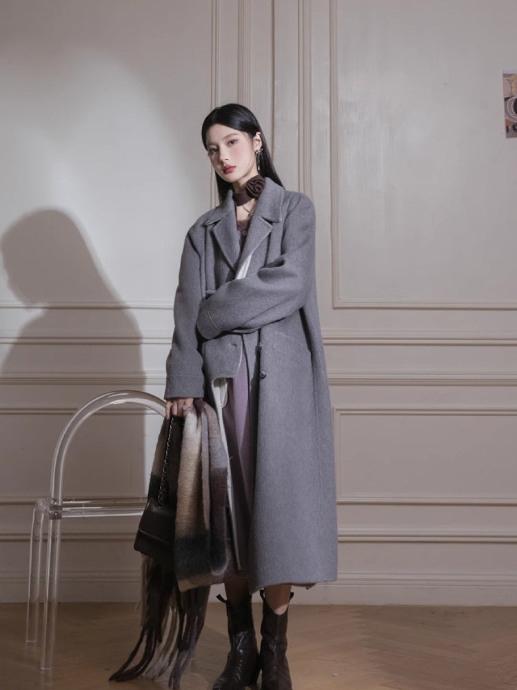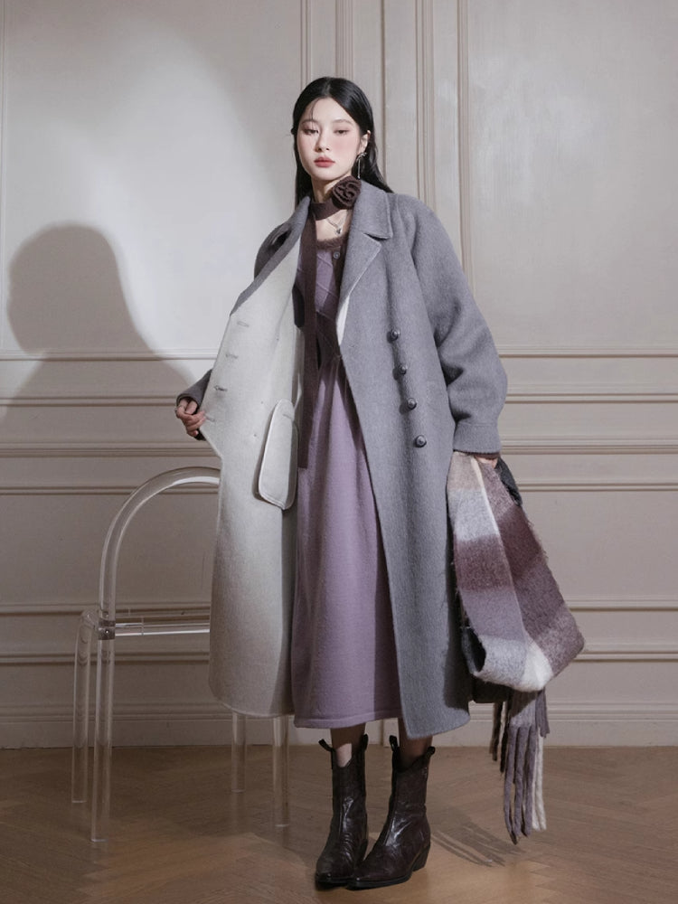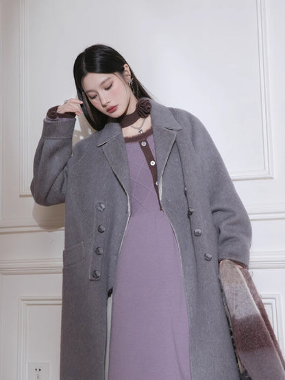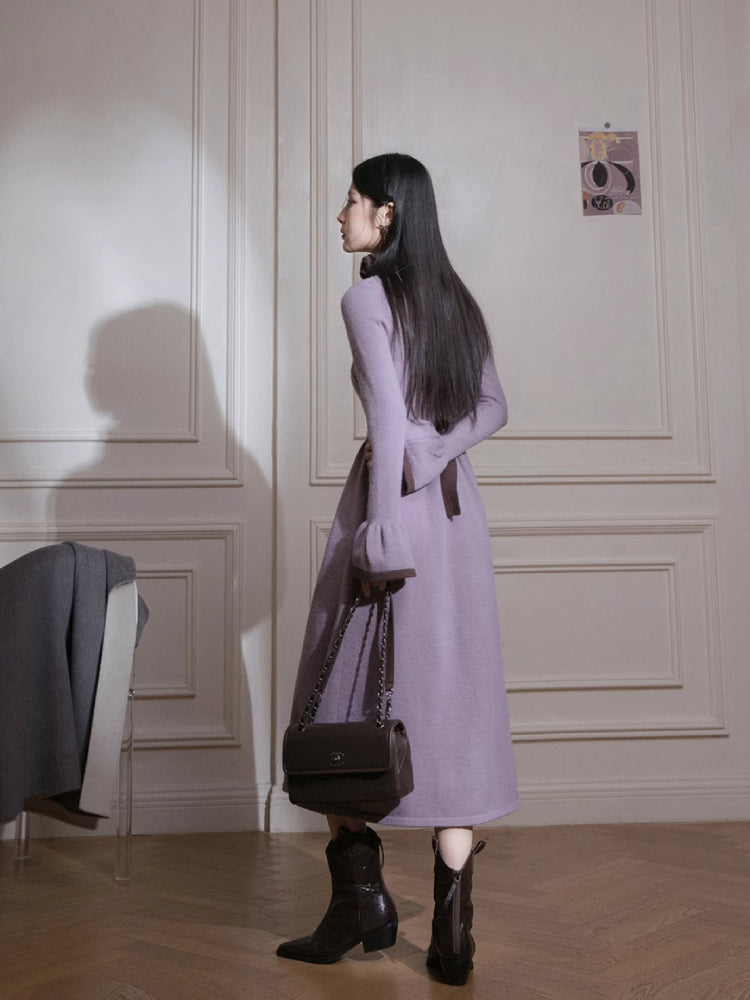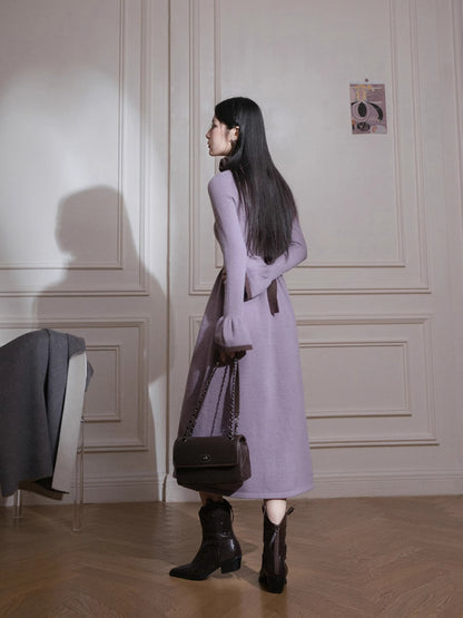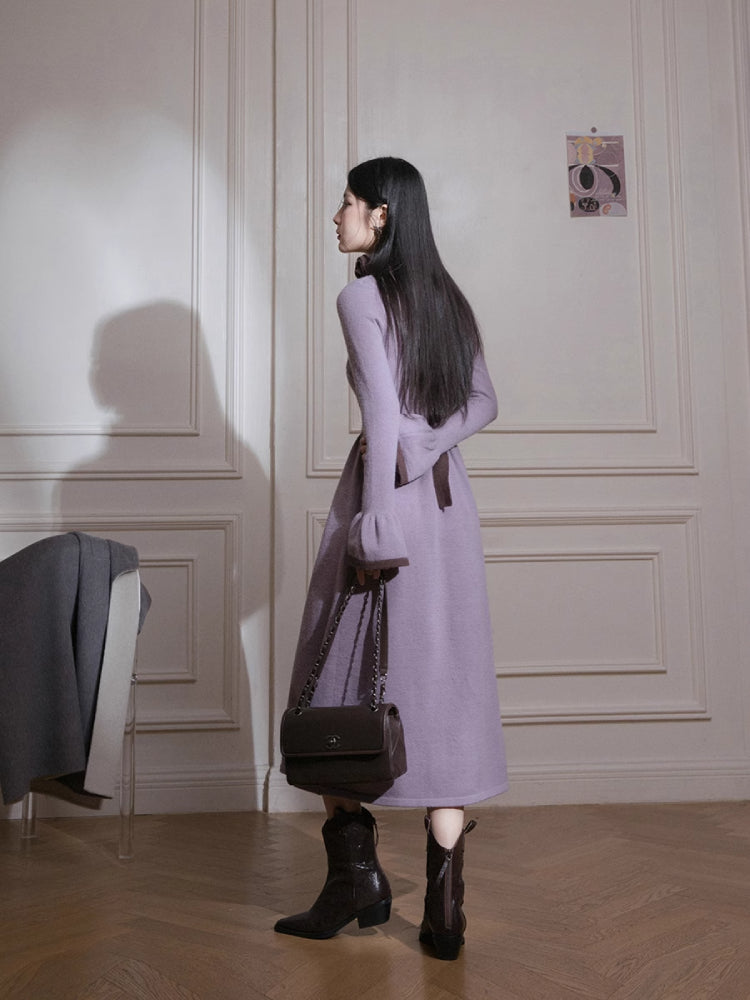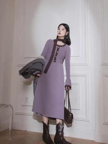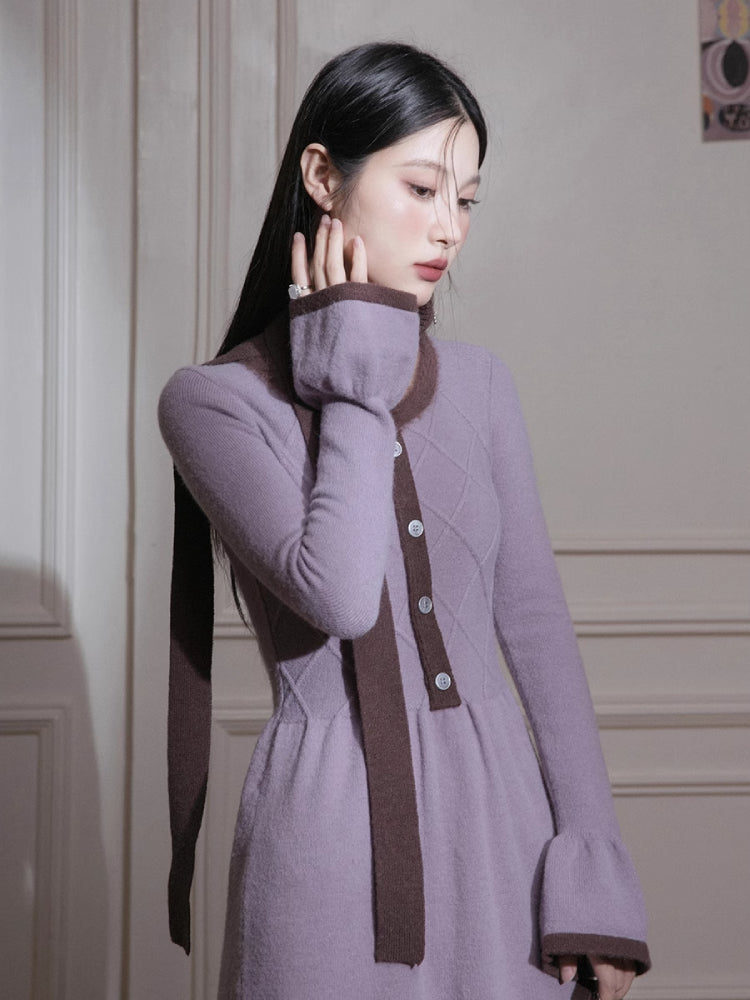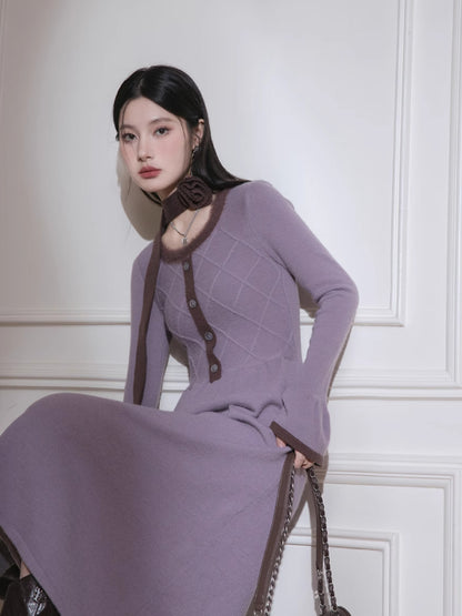 Brown U-Neck Diamond Wool Dress【s0000005812】