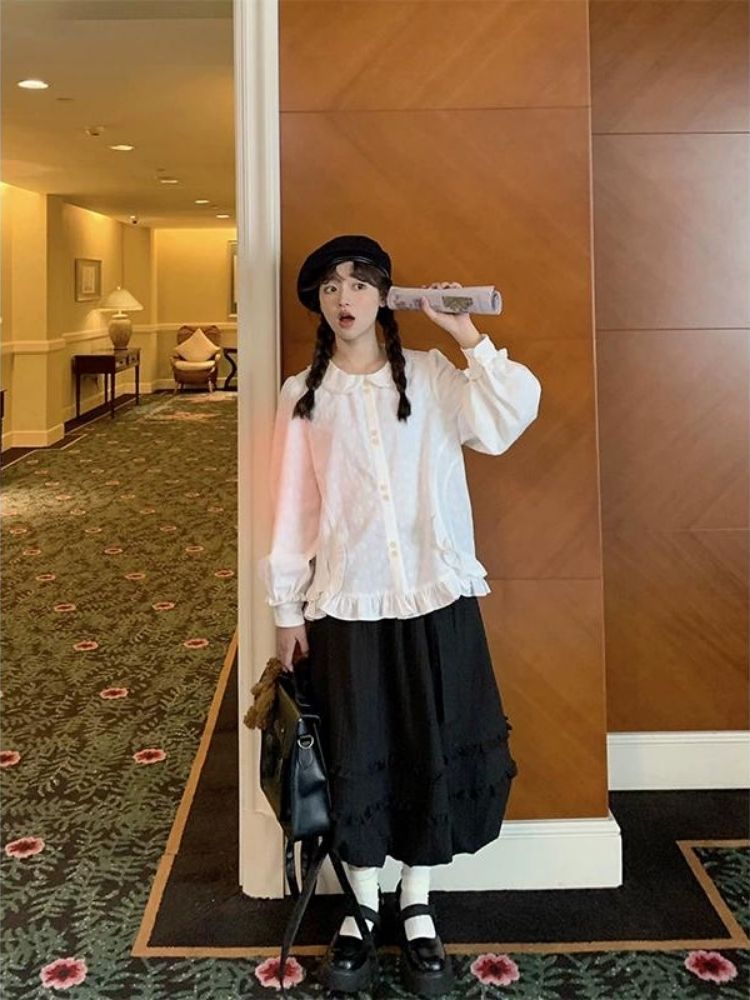 Doll Neck Irregular Bottom Hem CDG Style Shirt【s0000005902】