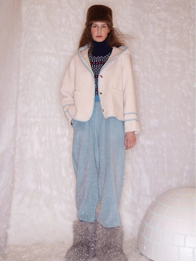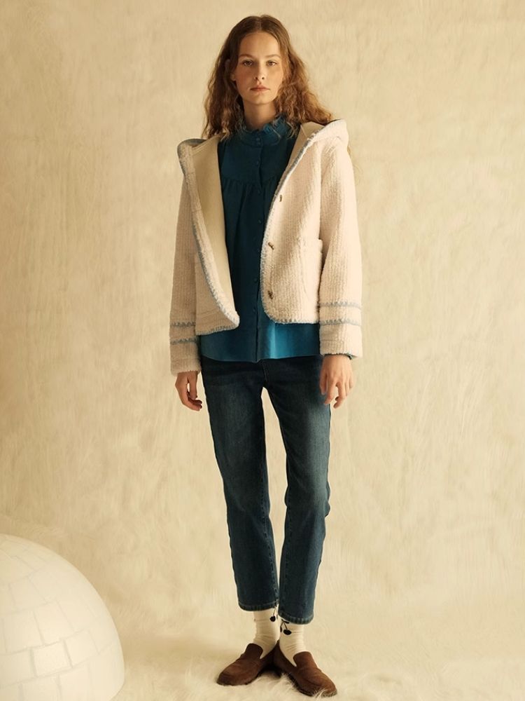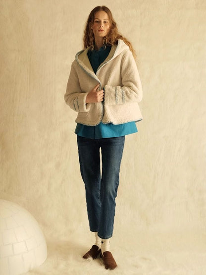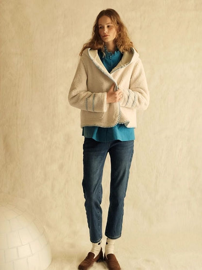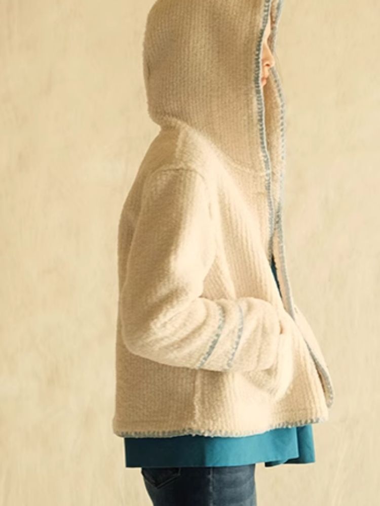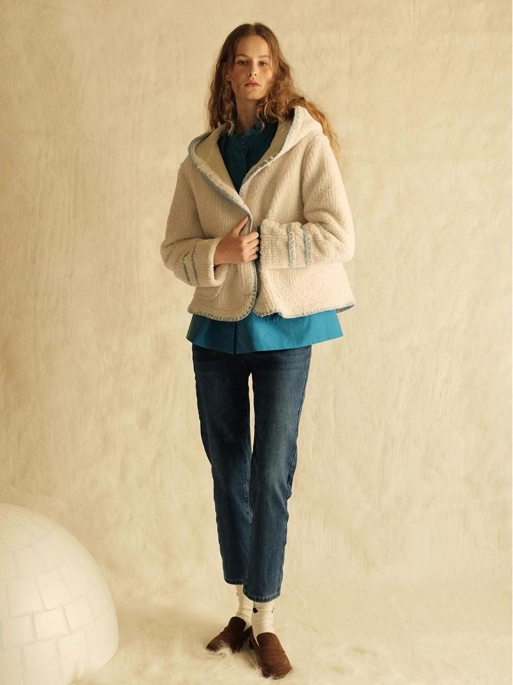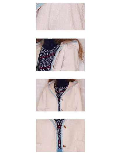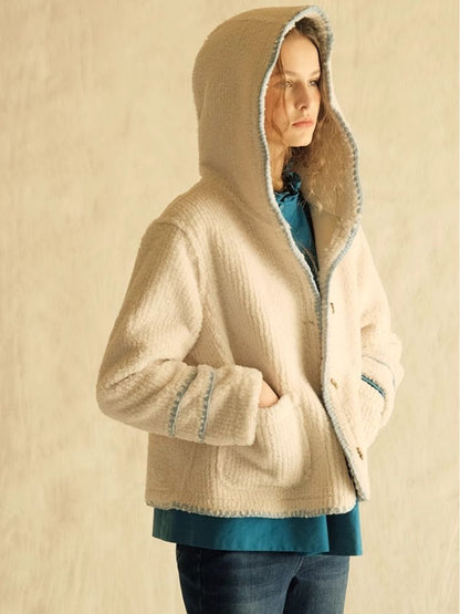 Lace Cowl Button Hooded Short Jacket【s0000005923】