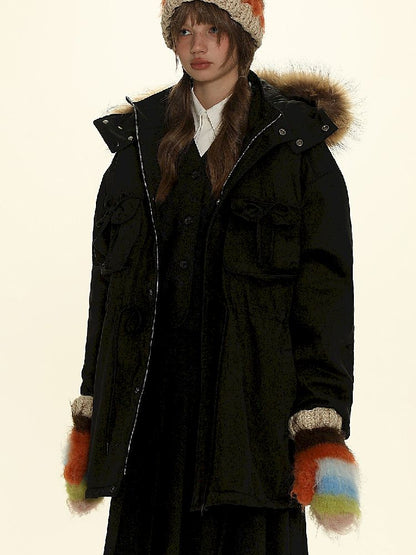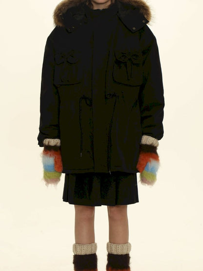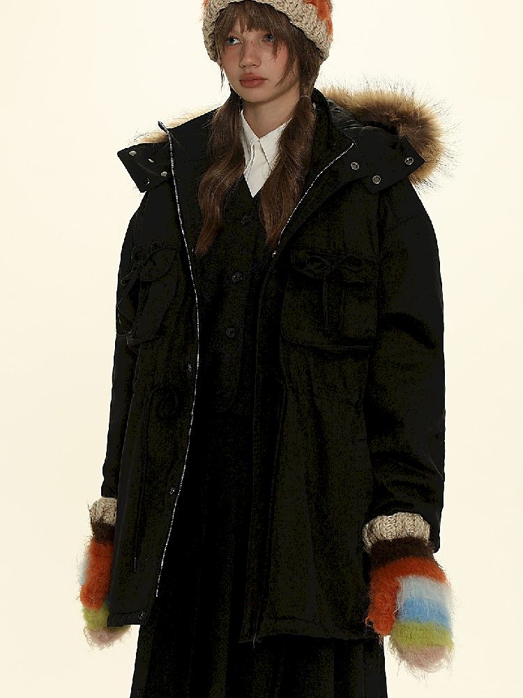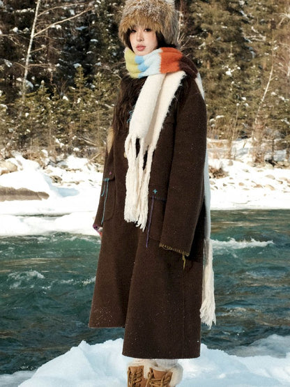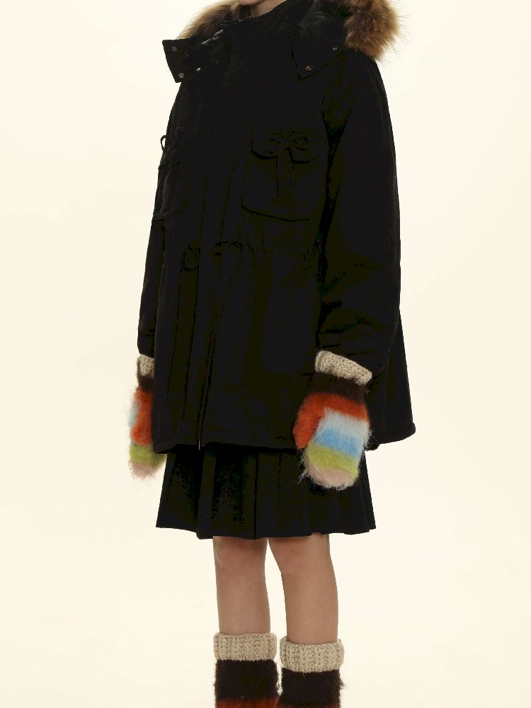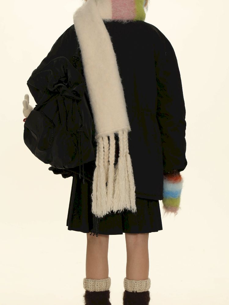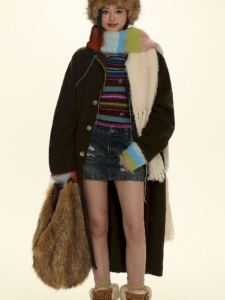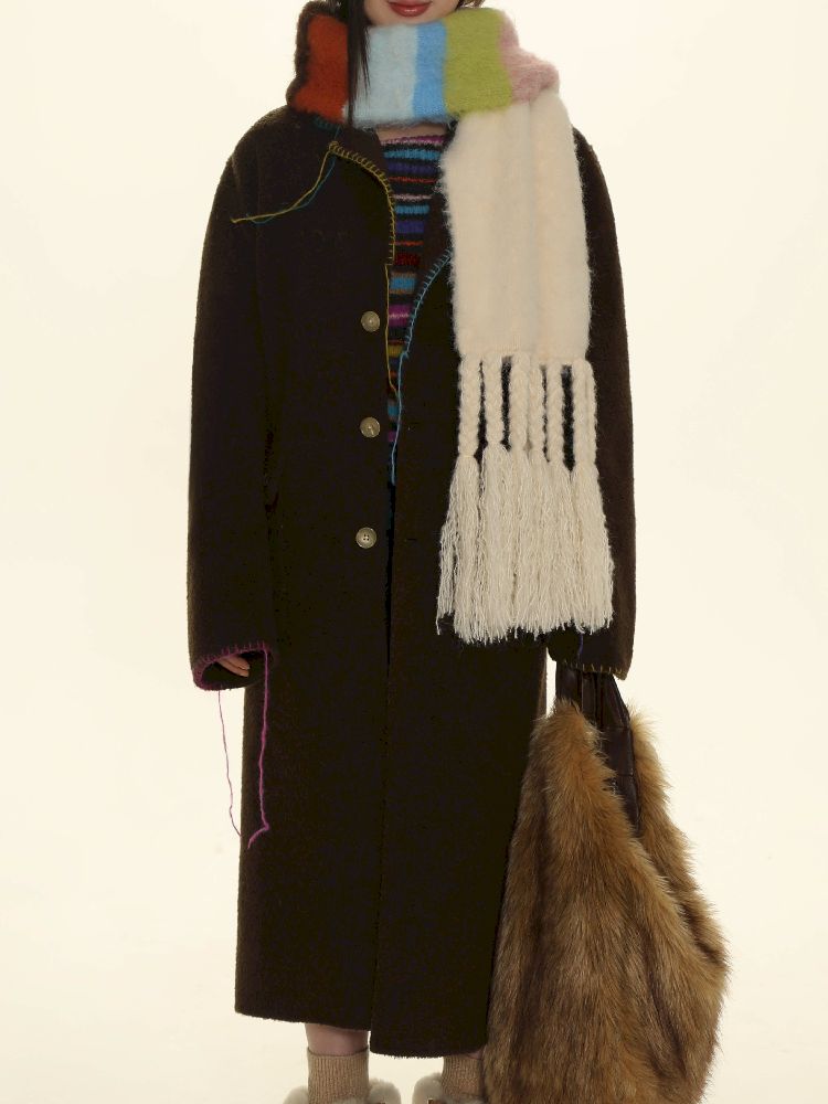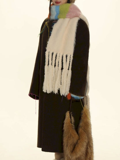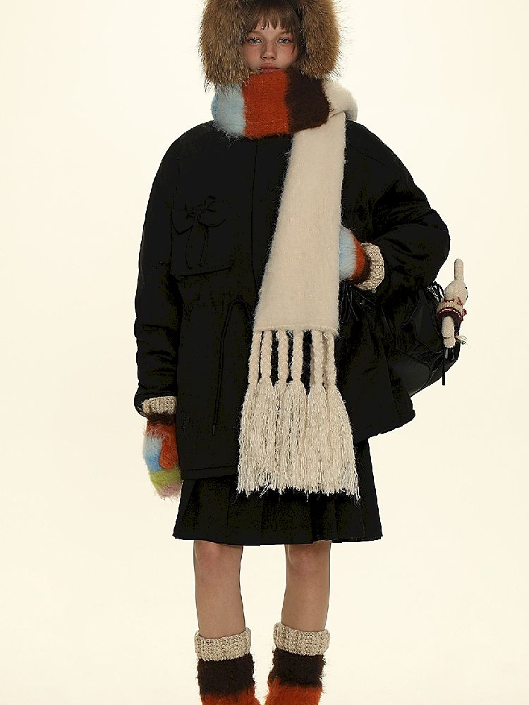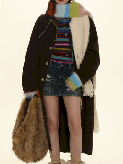 Stripe gloves hand knitted tassel scarf【s0000005991】