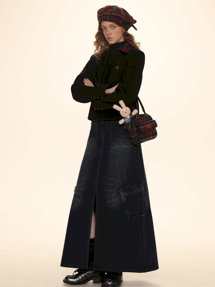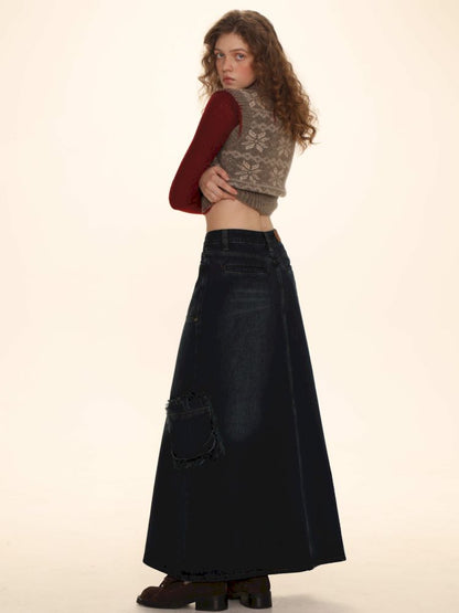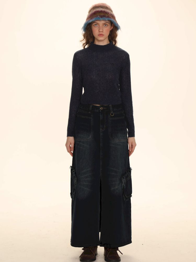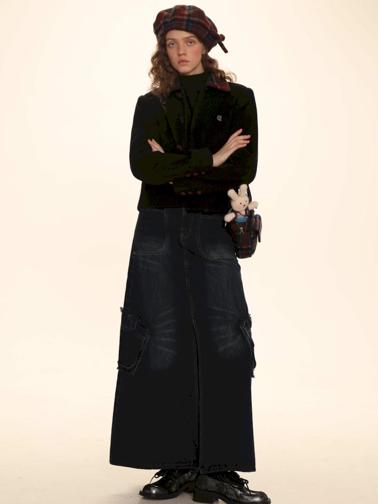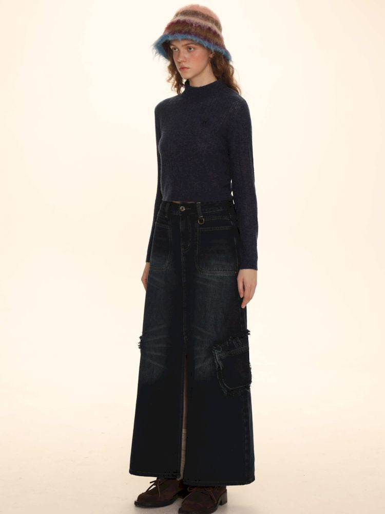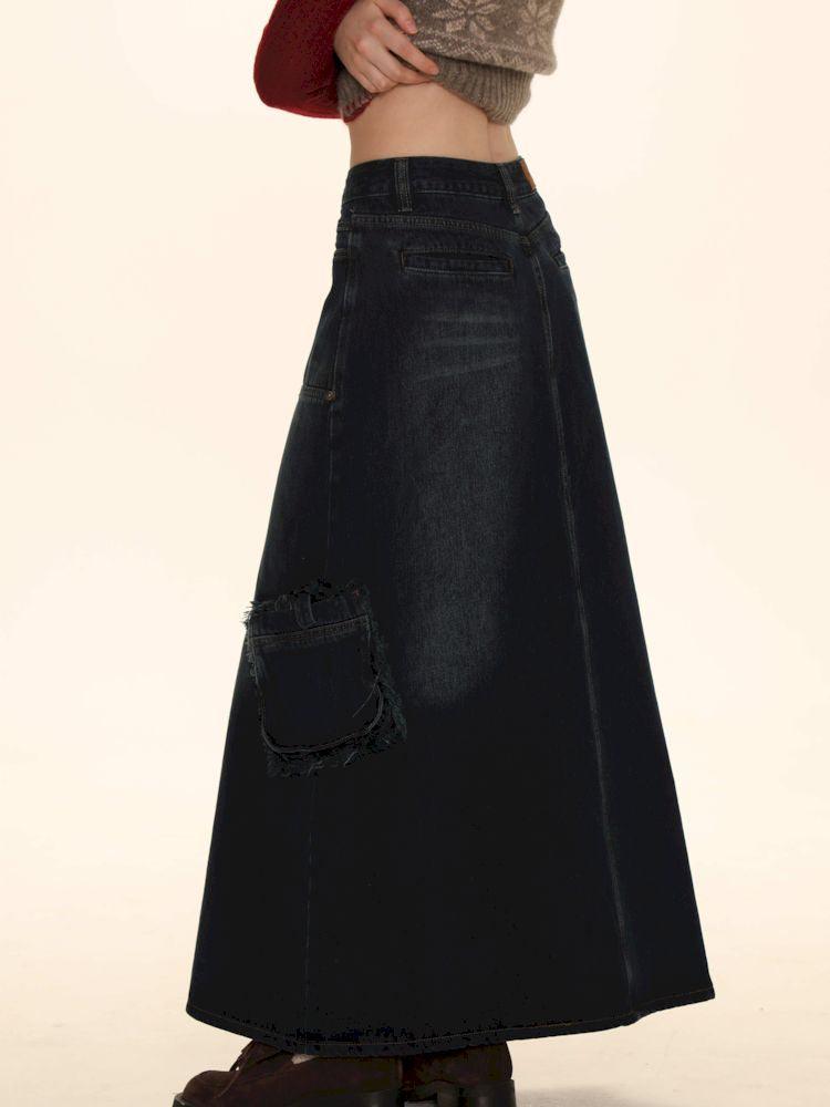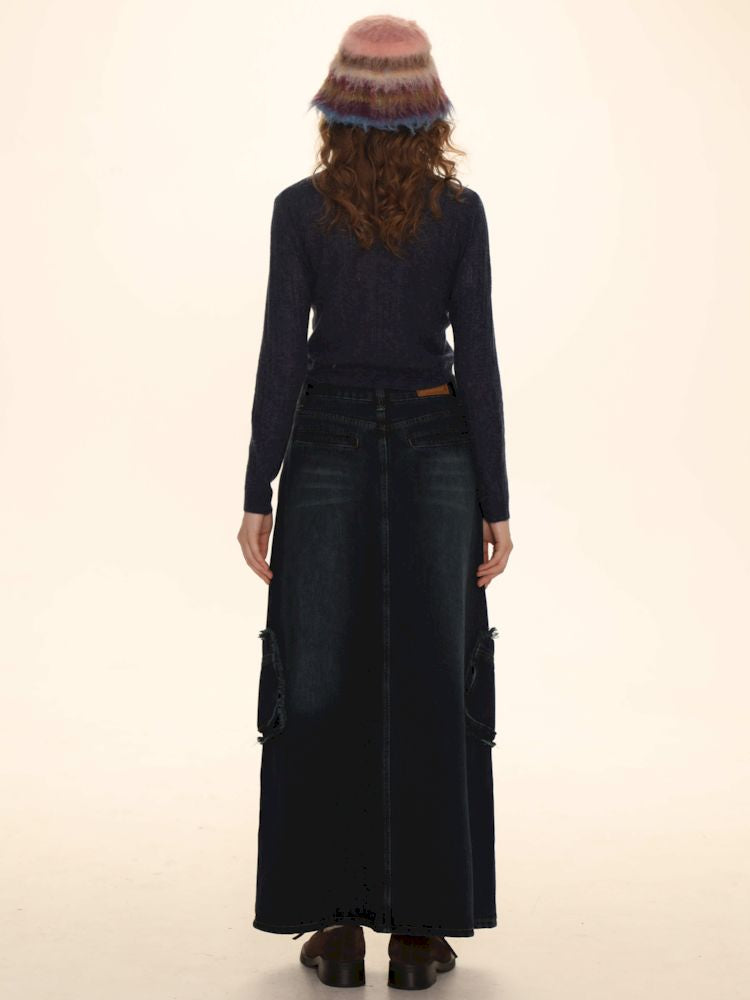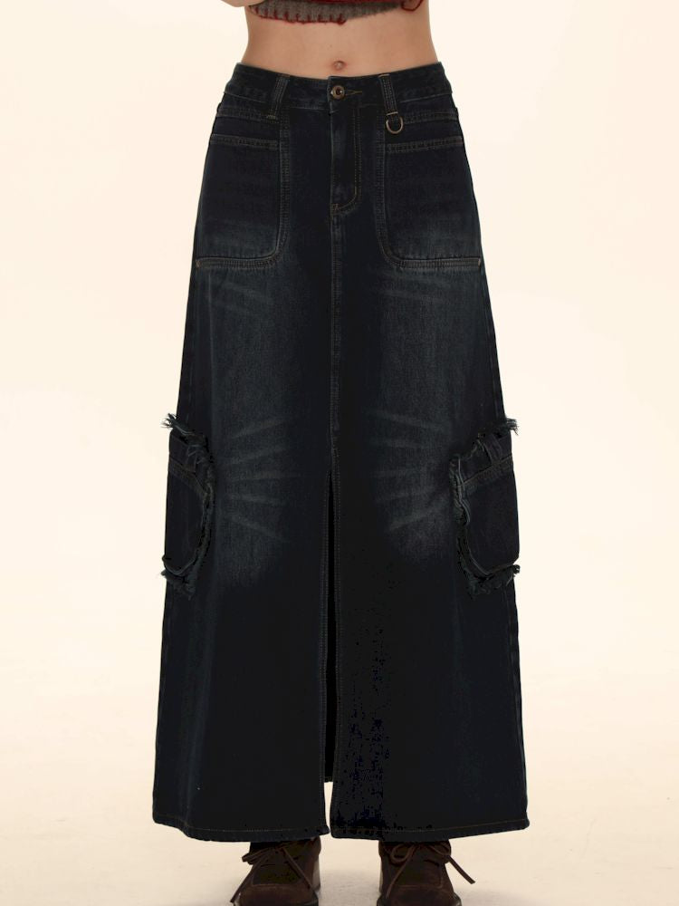 Raw Edge Tabs With Pockets Denim Work Skirt【s0000006002】