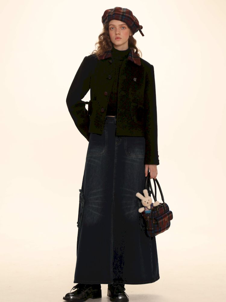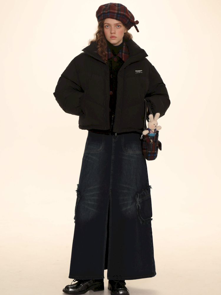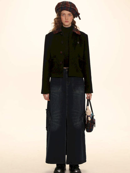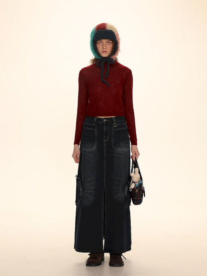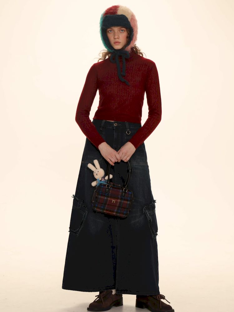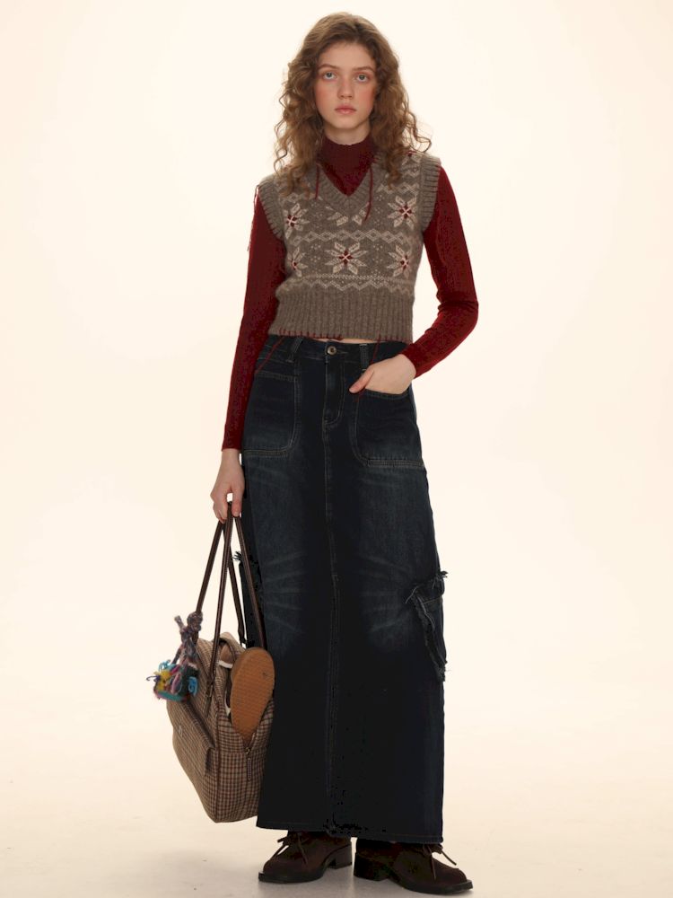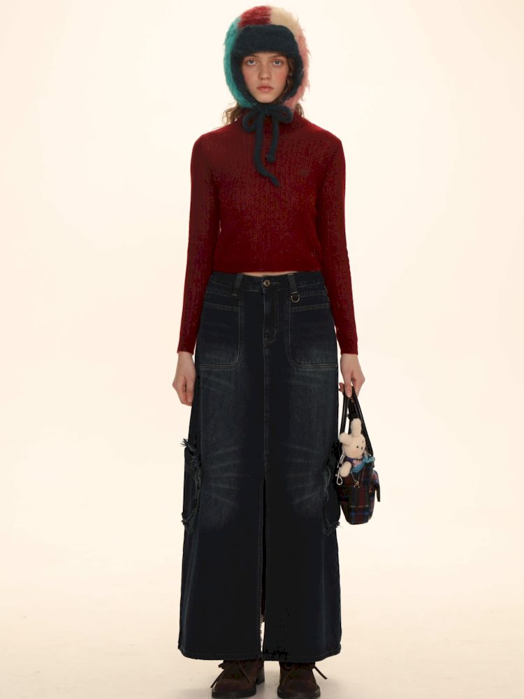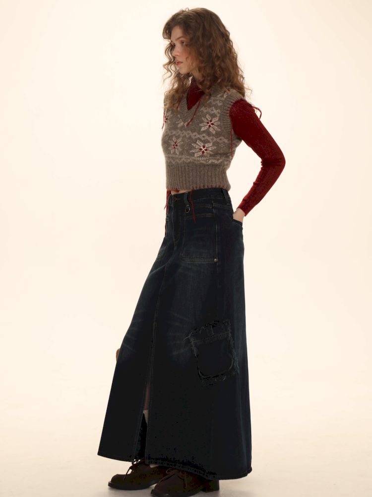 Raw Edge Tabs With Pockets Denim Work Skirt【s0000006002】