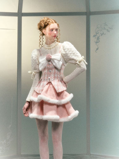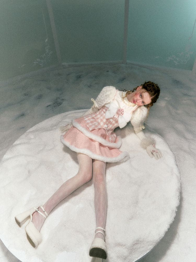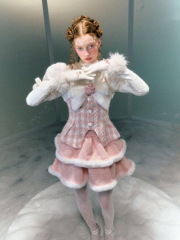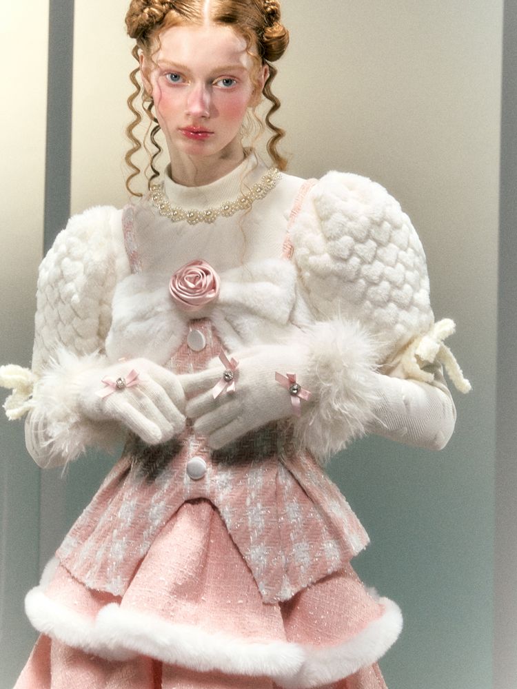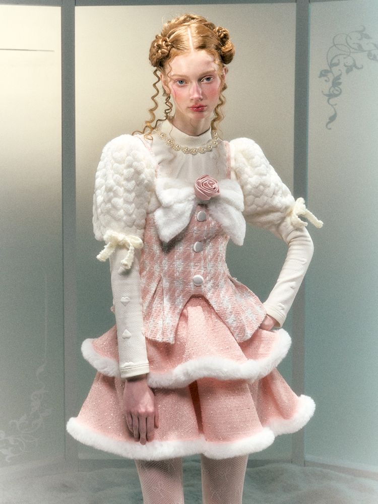 Tweed Fur Flower Bow Pom Pom Set【s0000006047】
