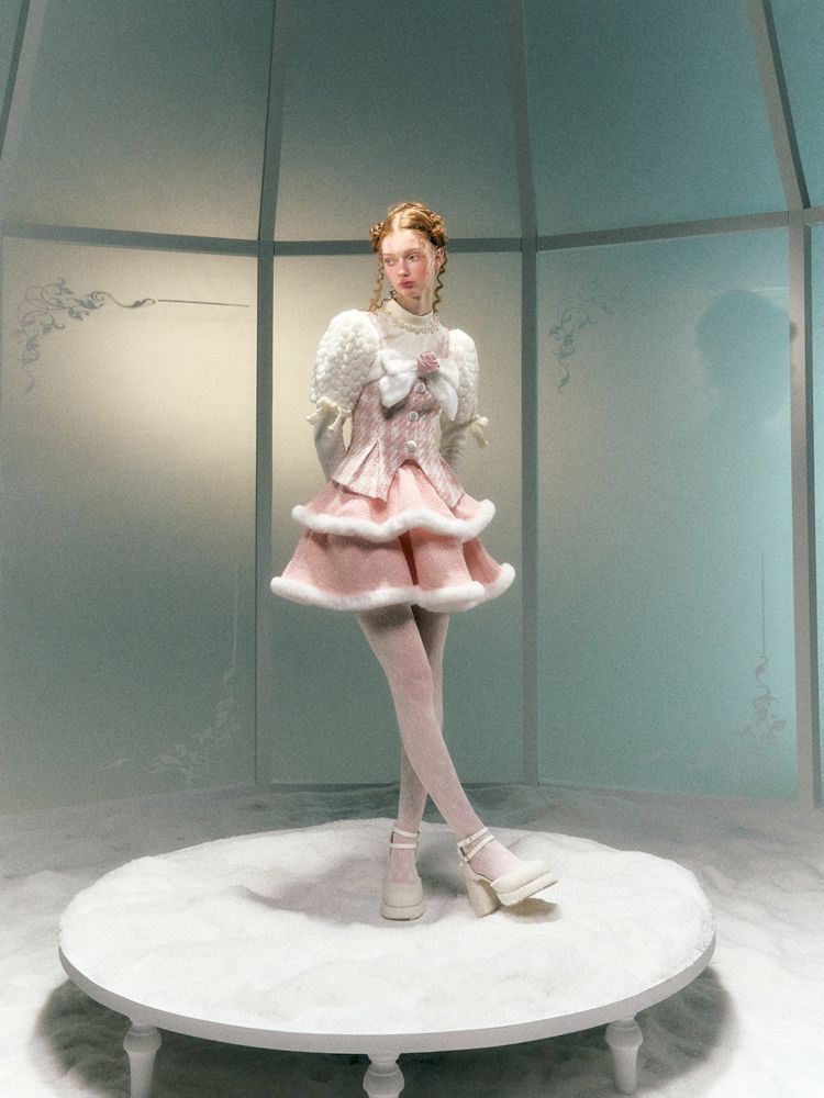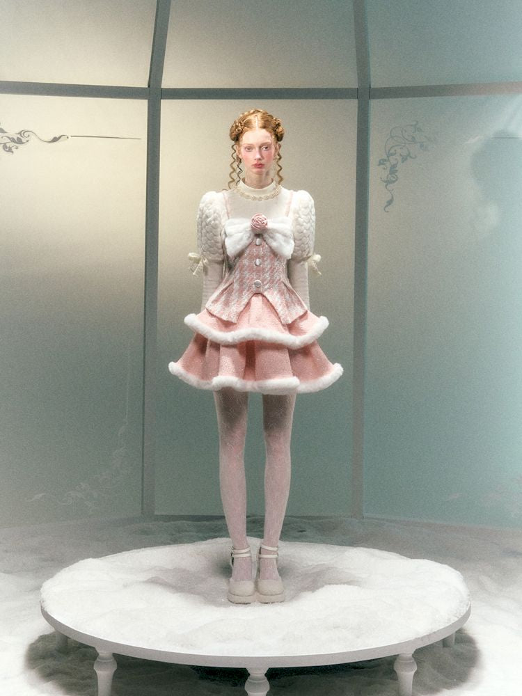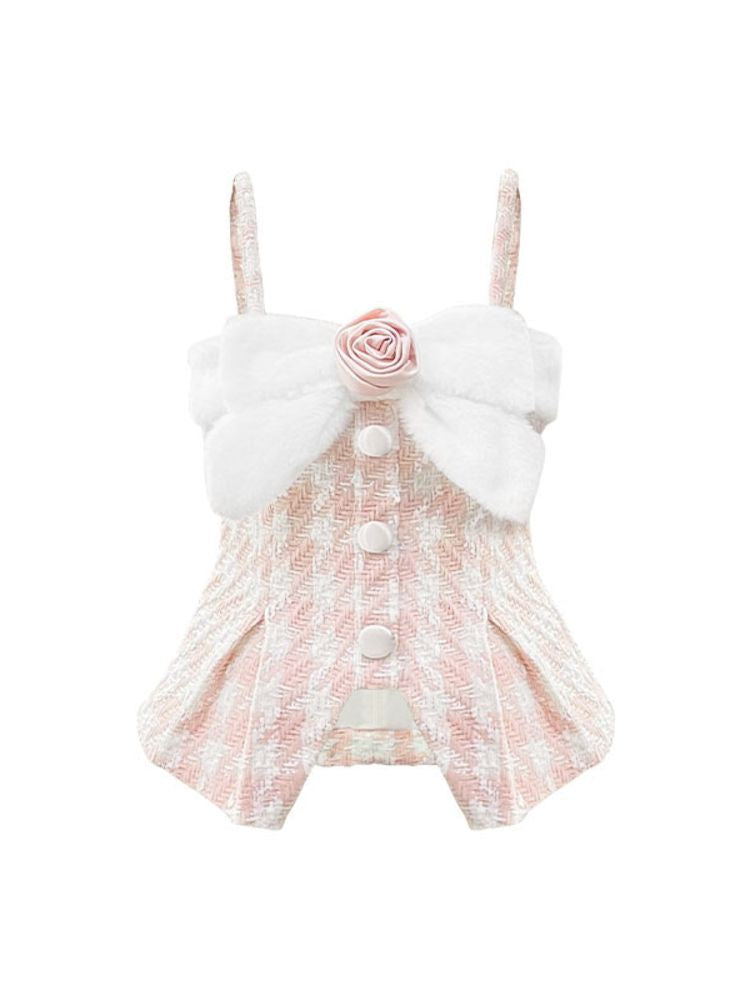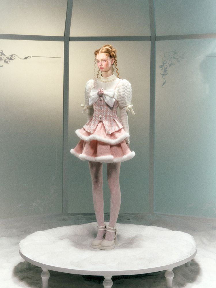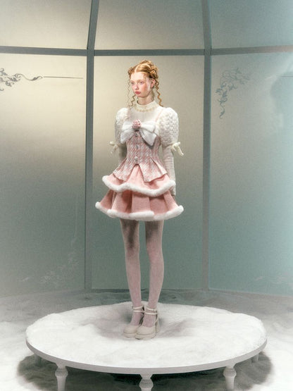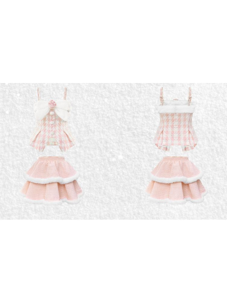 Tweed Fur Flower Bow Pom Pom Set【s0000006047】