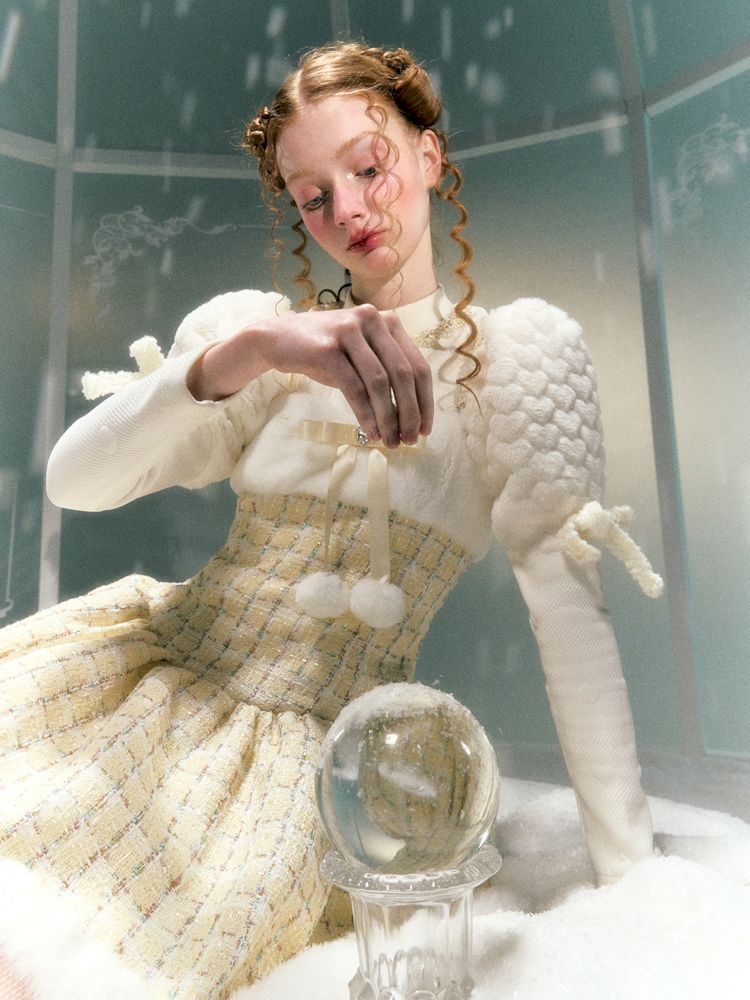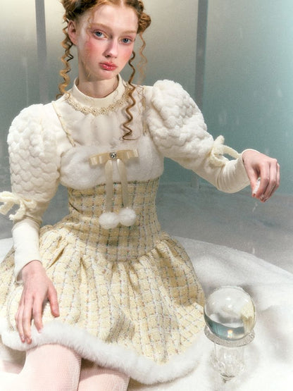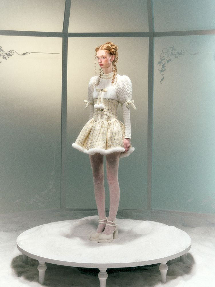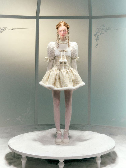Diamond Bow Hairball Halter Dress【s0000006051】