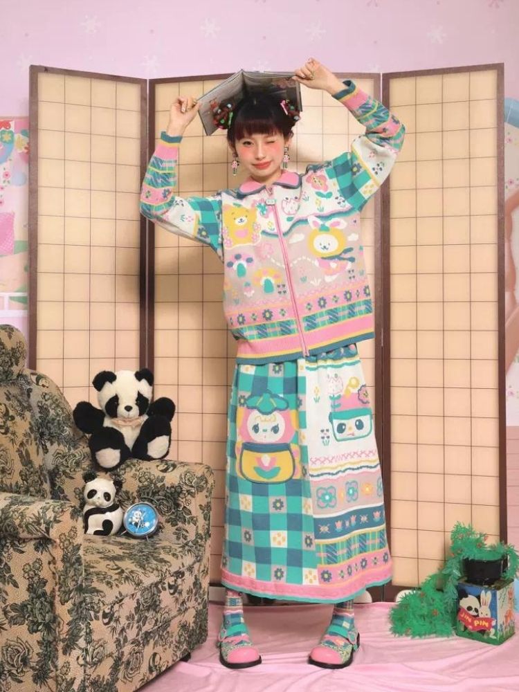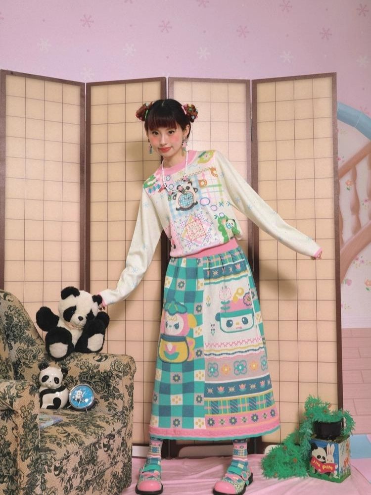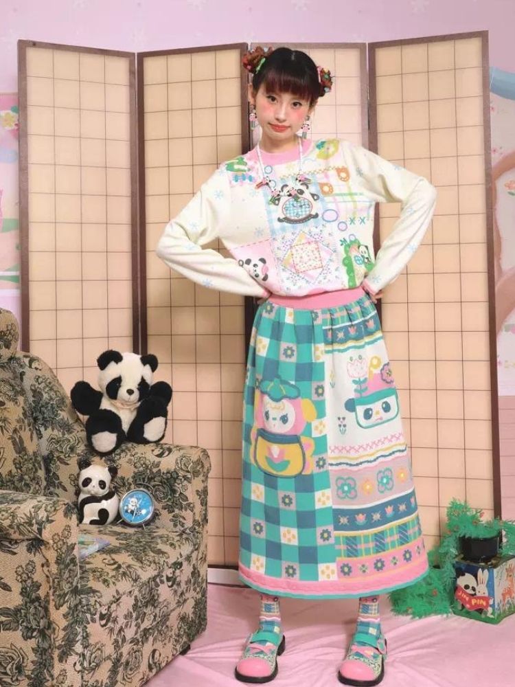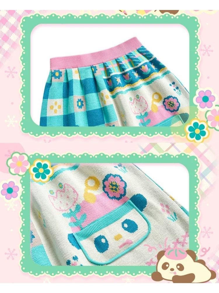 Plaid Pocket Clash Knit Jacquard Vintage Half Skirt【s0000006114】