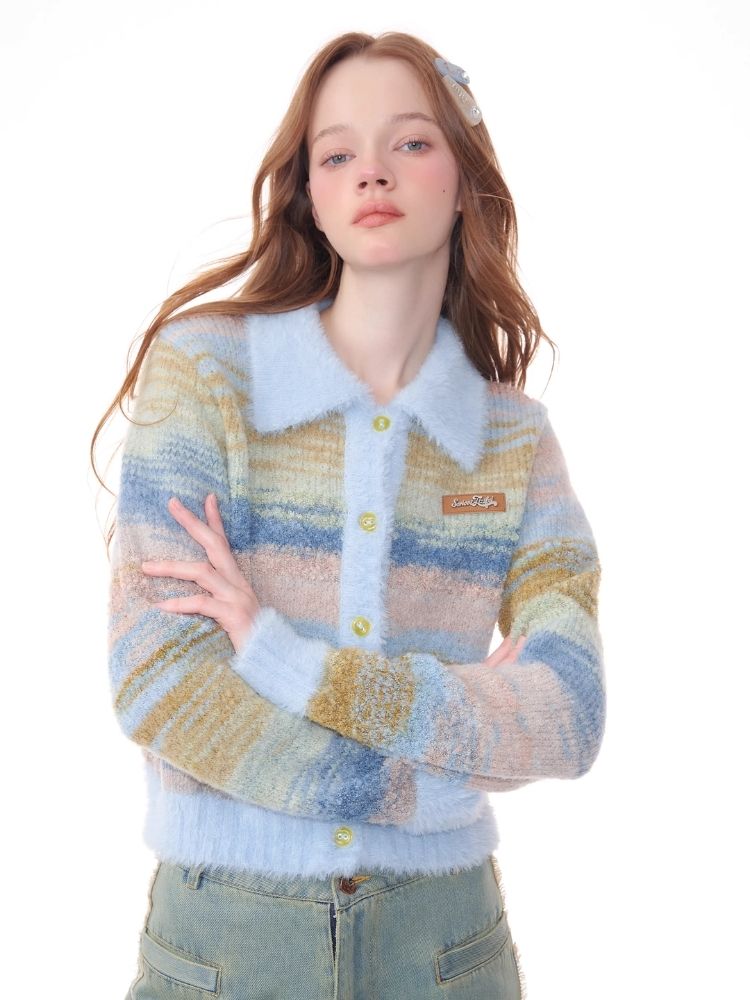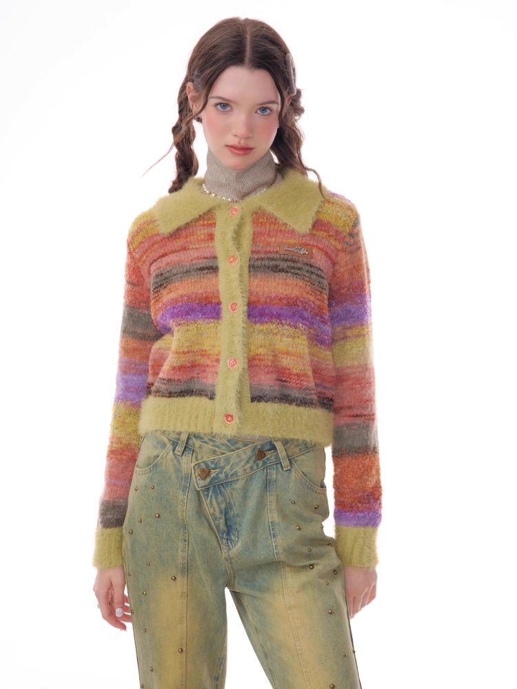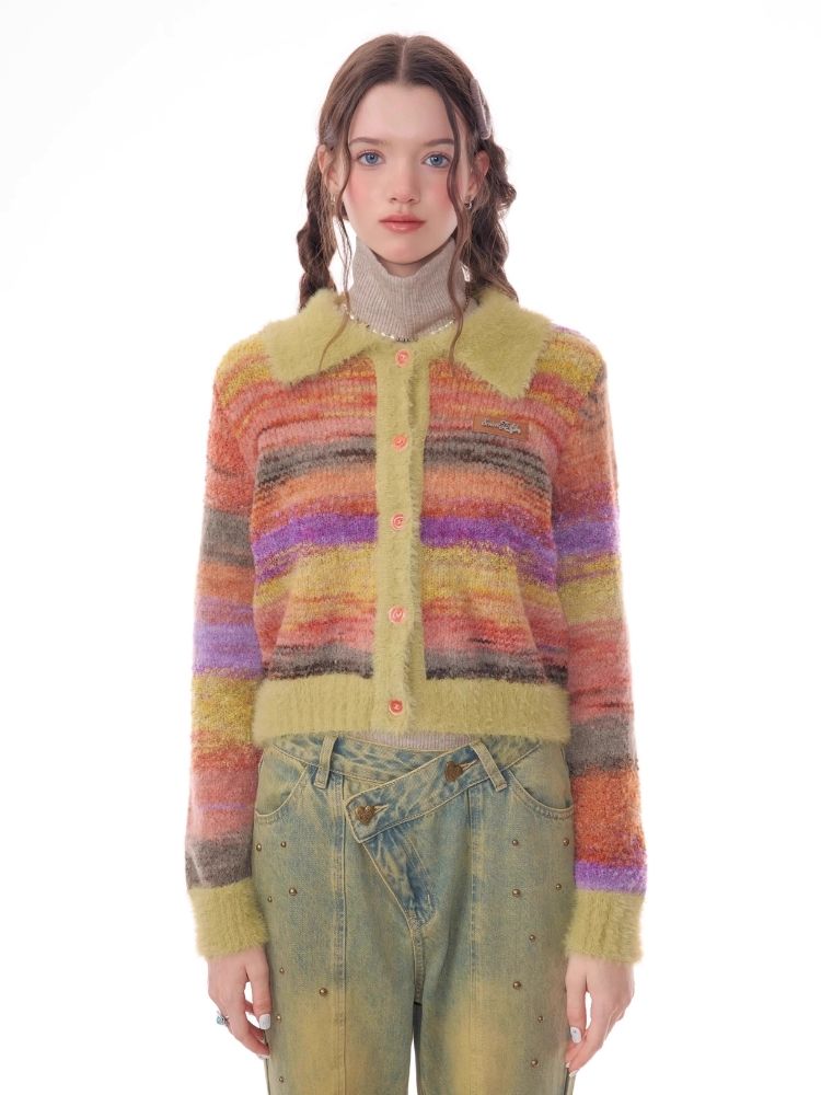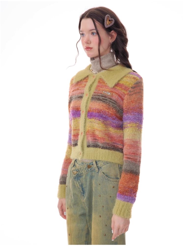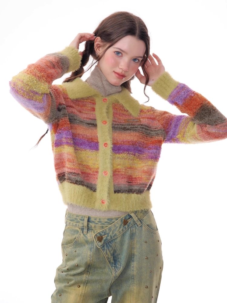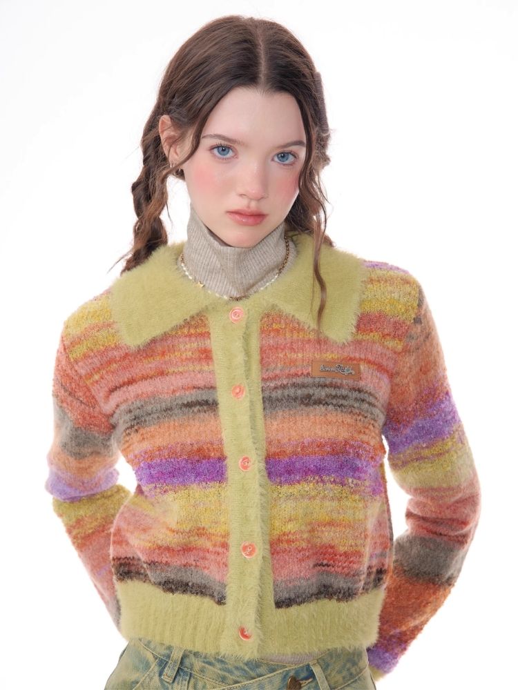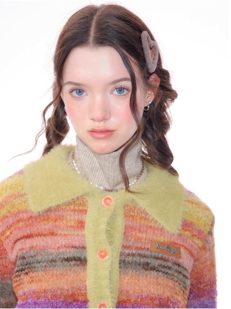 Striped Polo Neck Sweater Cardigan Jacket【s0000006141】