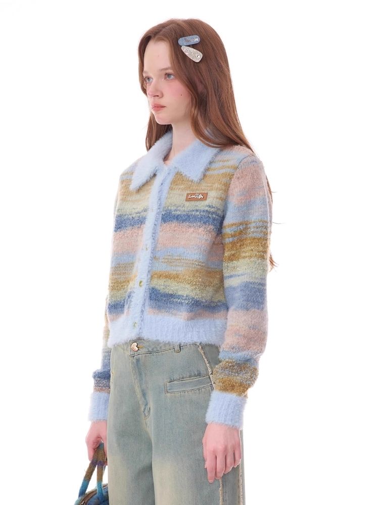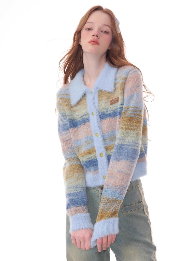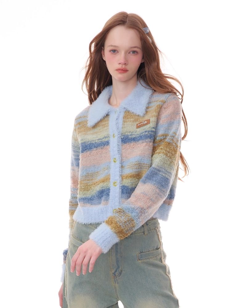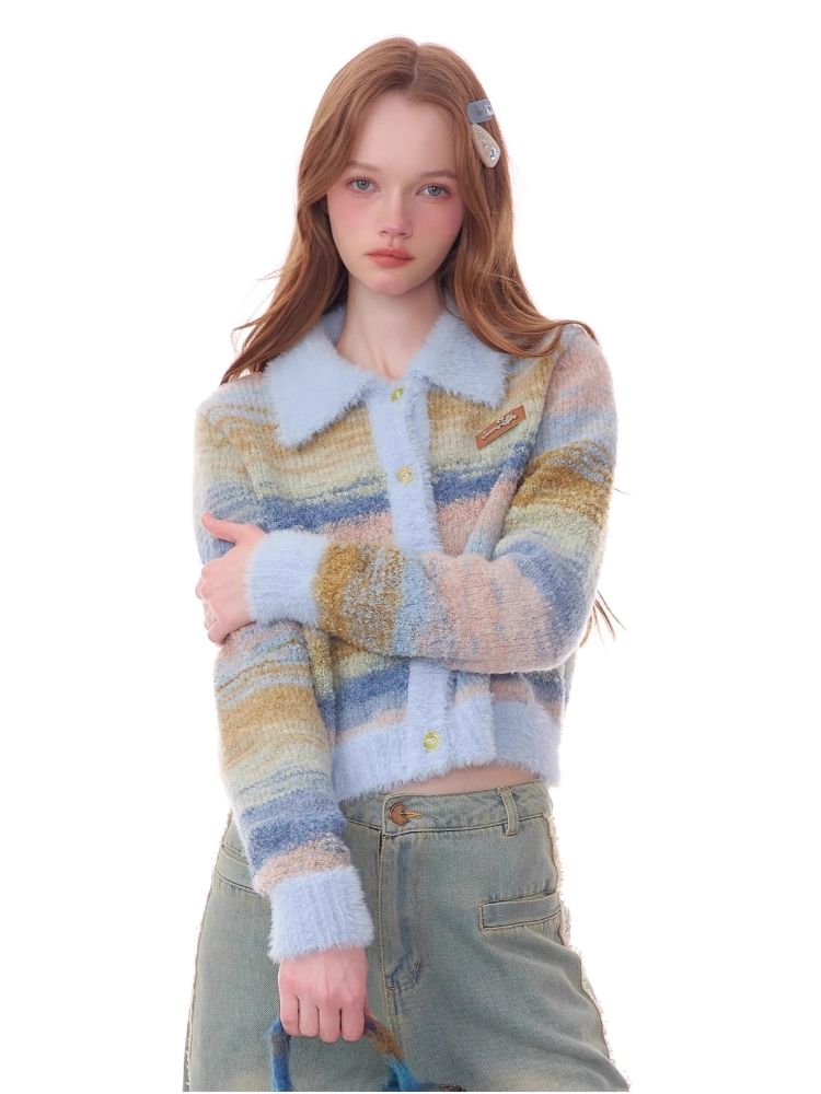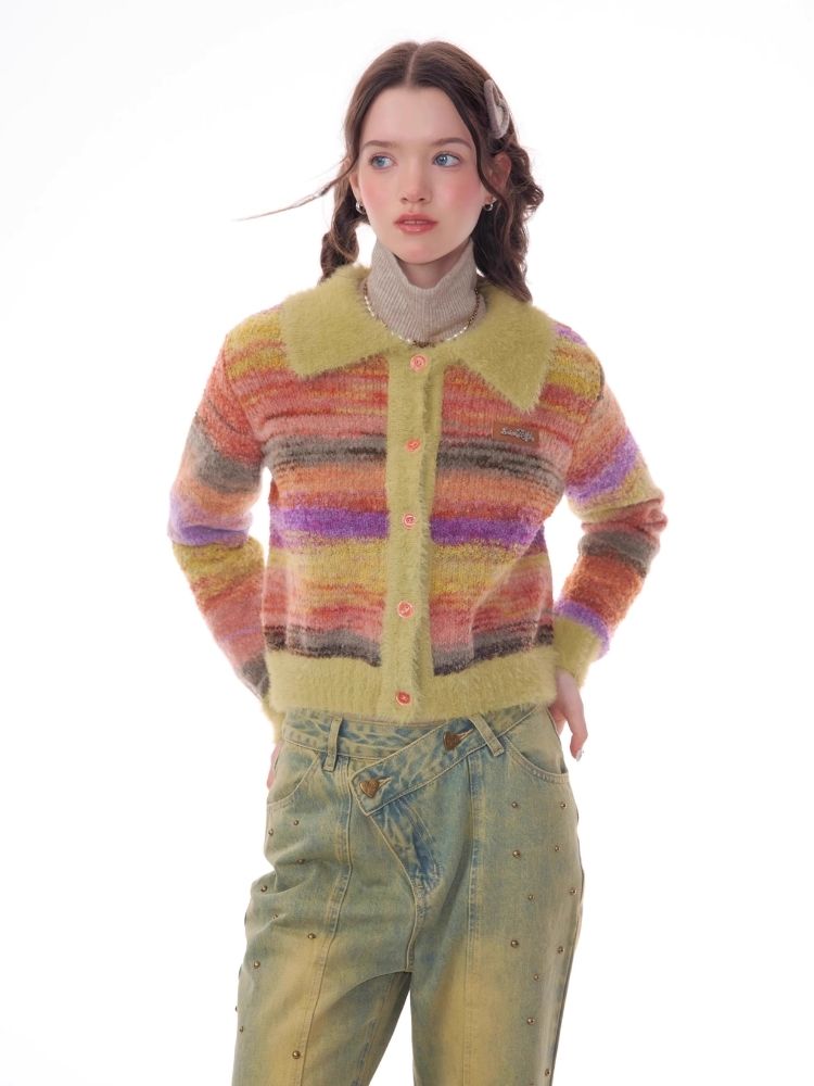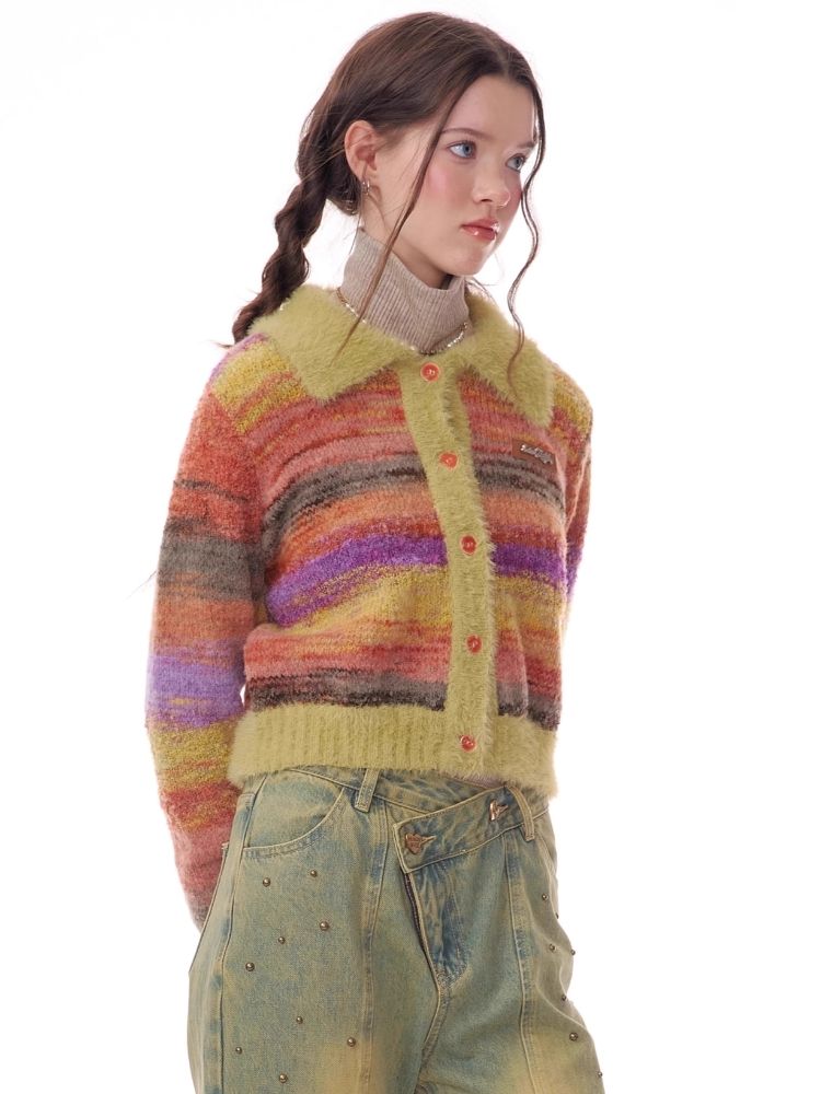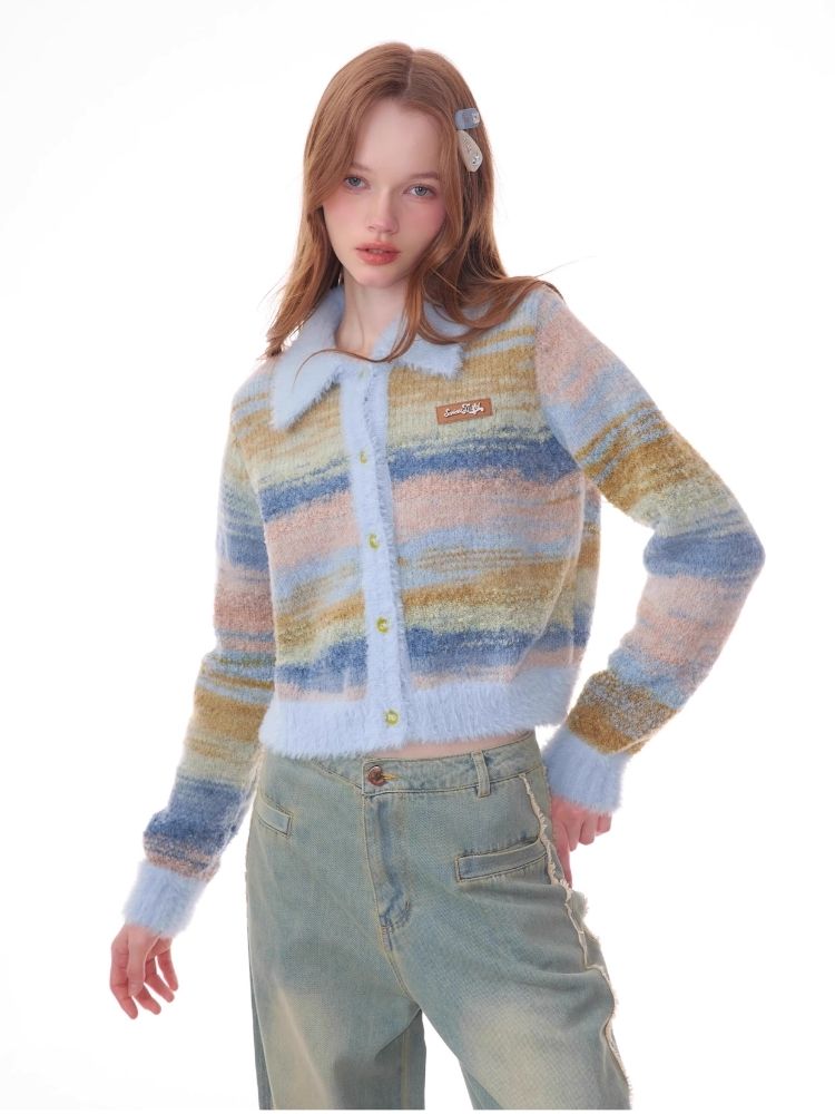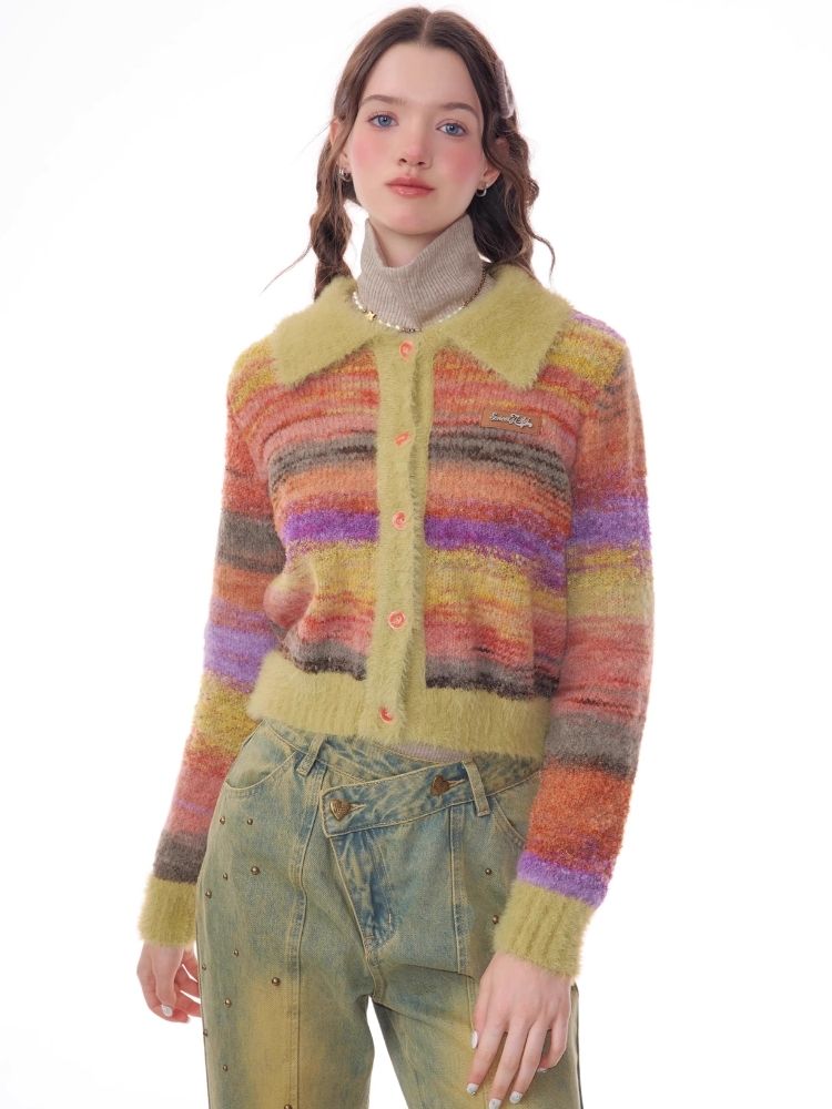 Striped Polo Neck Sweater Cardigan Jacket【s0000006141】