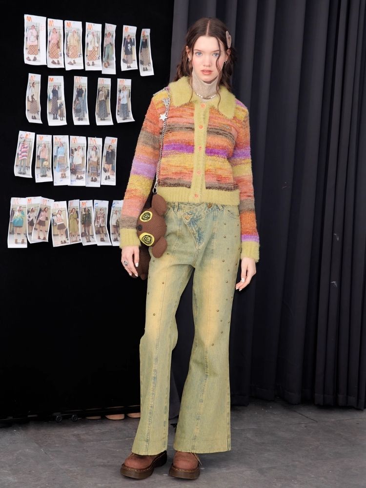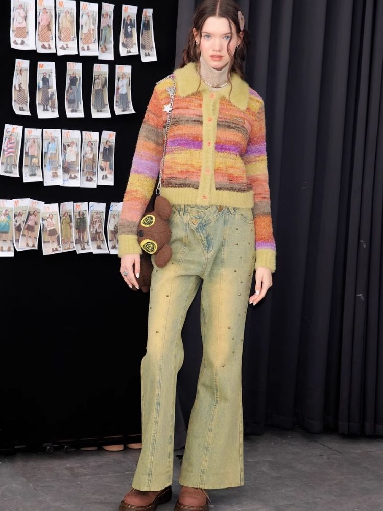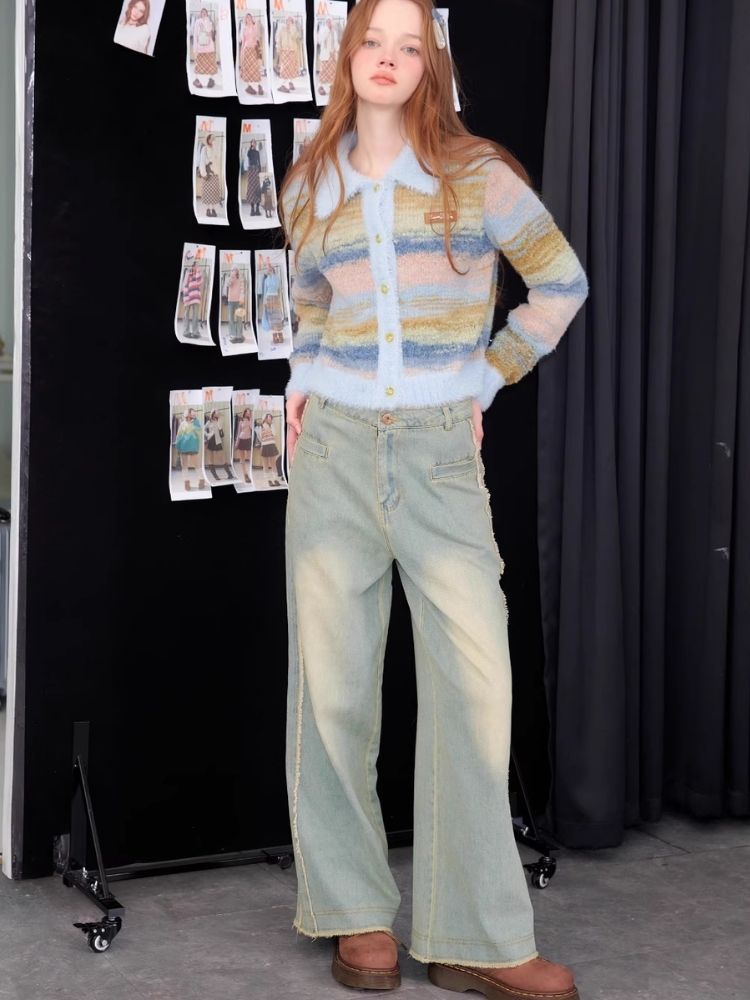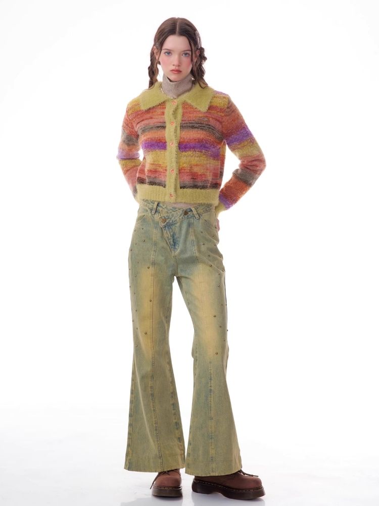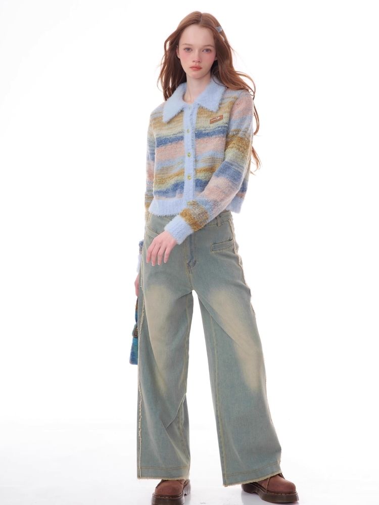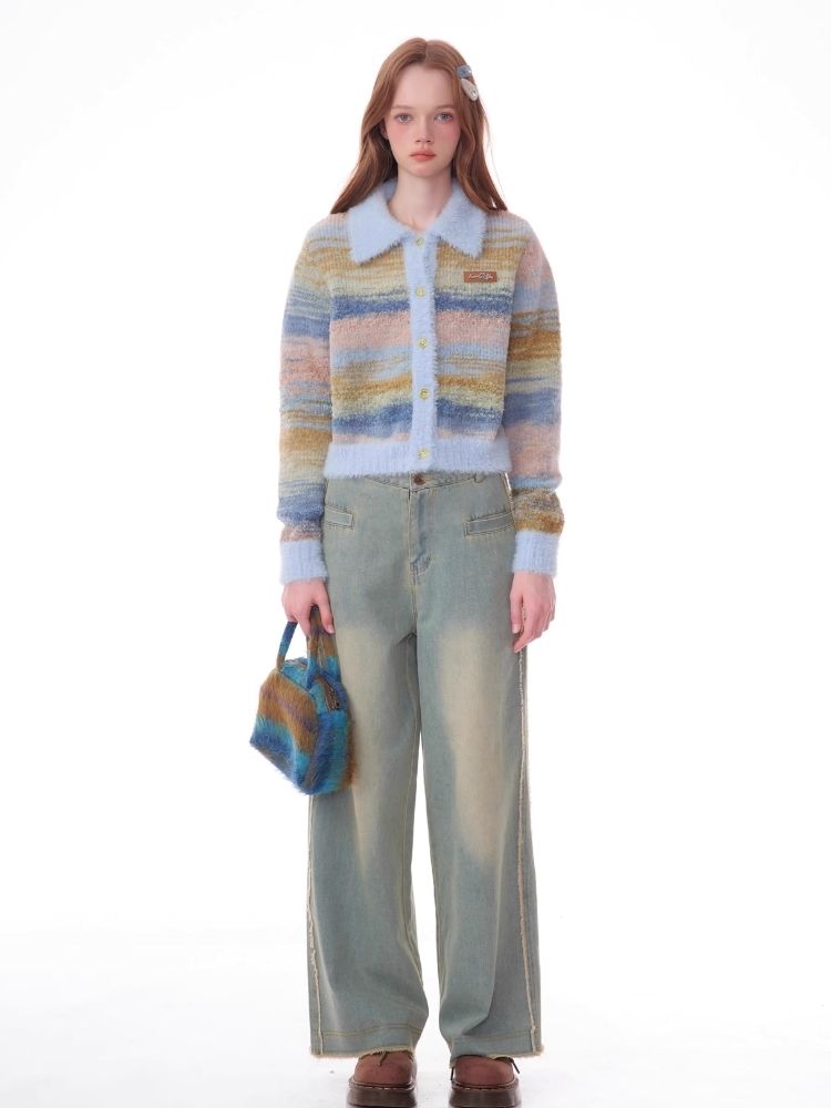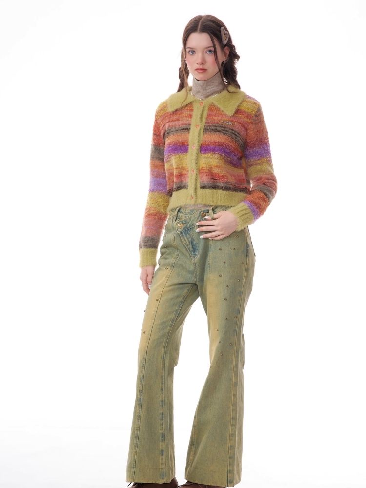 Striped Polo Neck Sweater Cardigan Jacket【s0000006141】