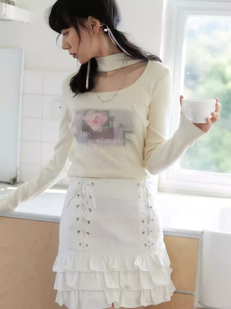 Romantic Swoosh Ambiance Rose Print Sweater【s0000006251】