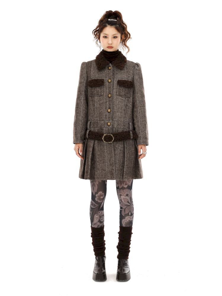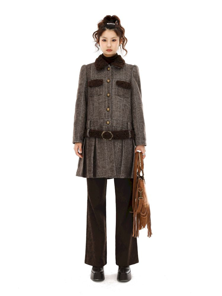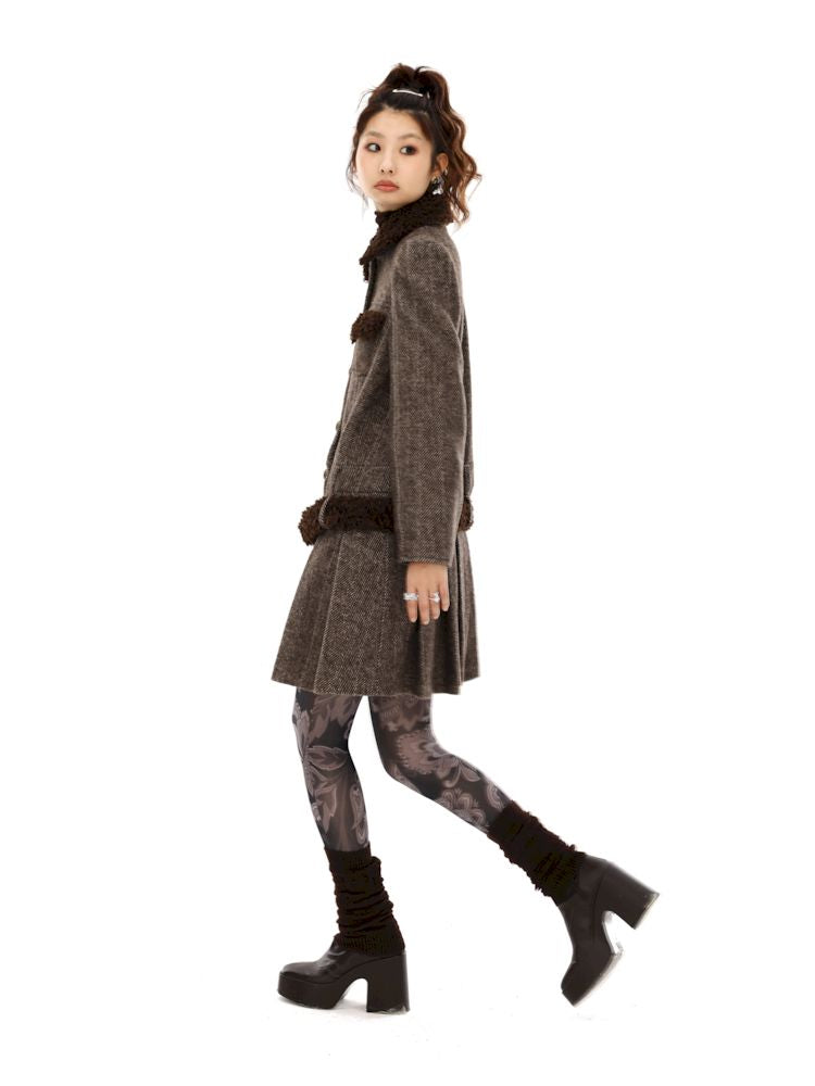Tweed Single Breasted Coat Jacket Pleated Skirt【s0000006257】