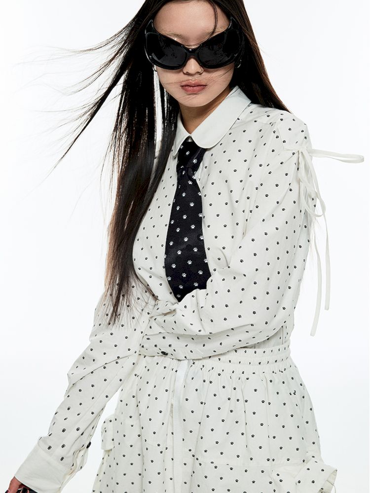 Cat's Paw Polka Dot Doll Collar Blouse Set【s0000006279】