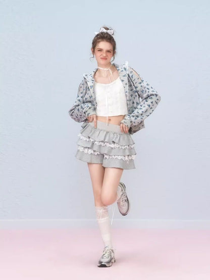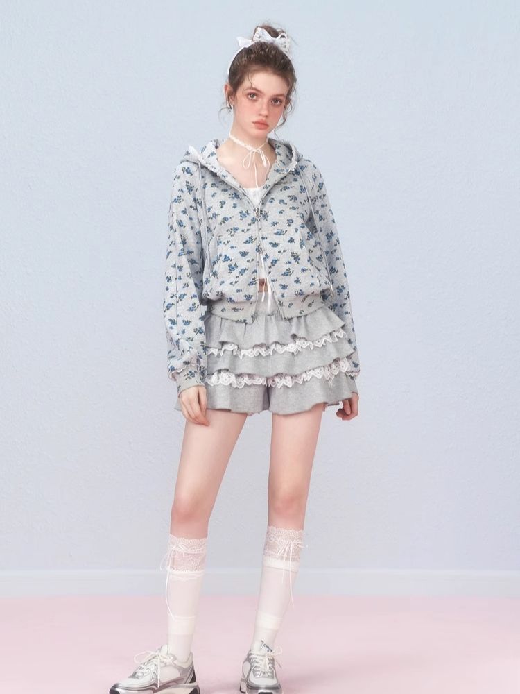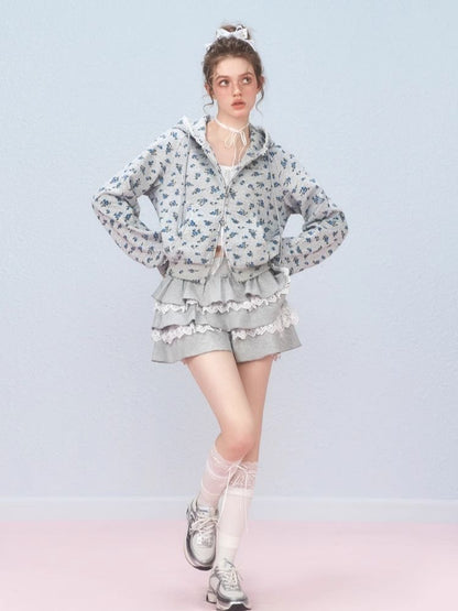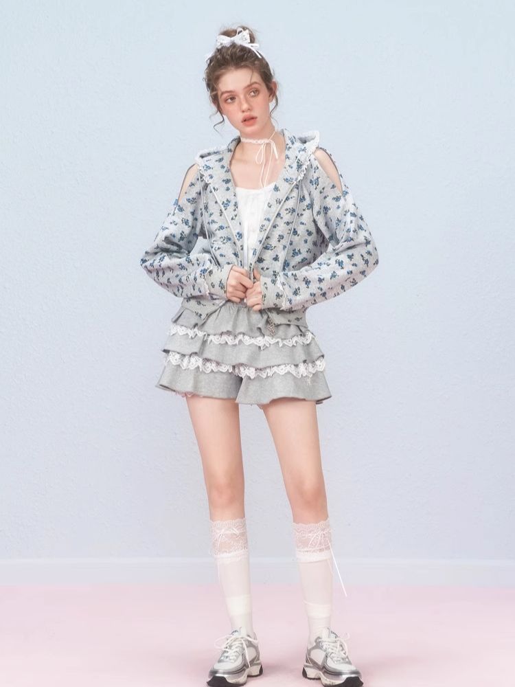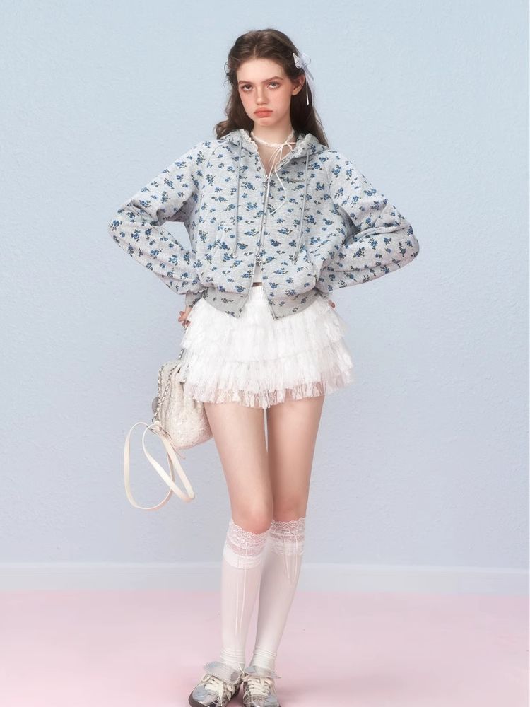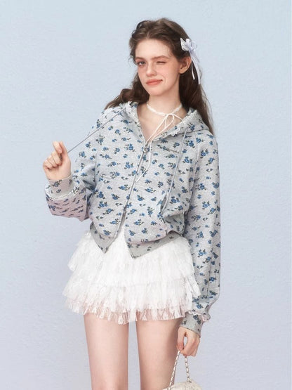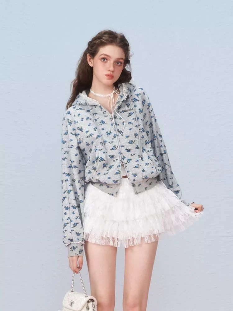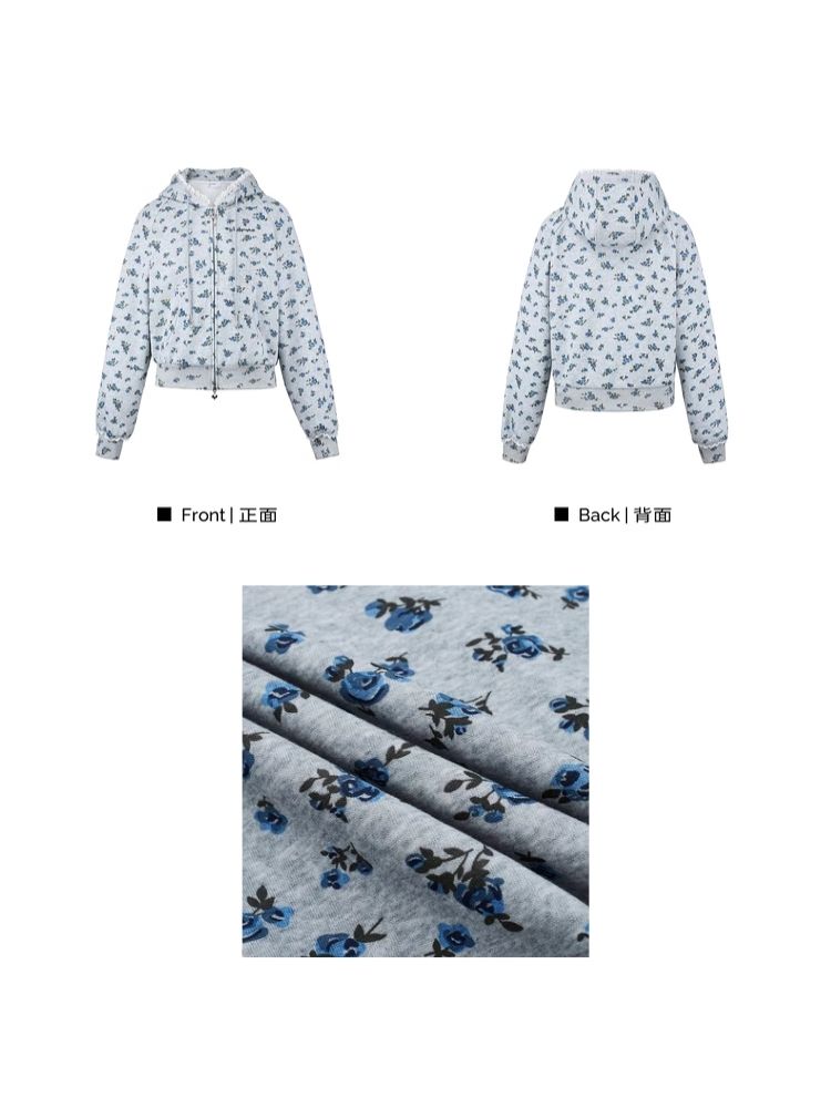 Floral Zipper Strapless Hooded Sweatshirt【s0000006314】