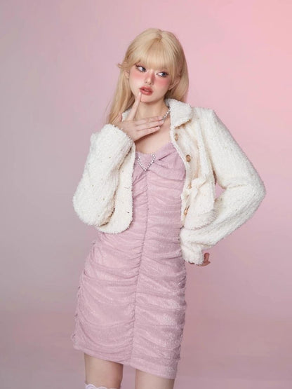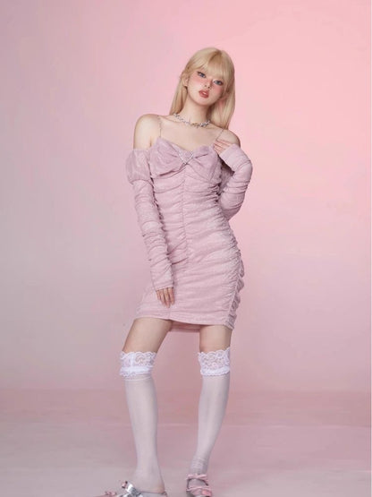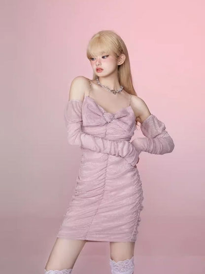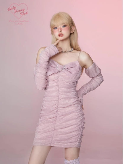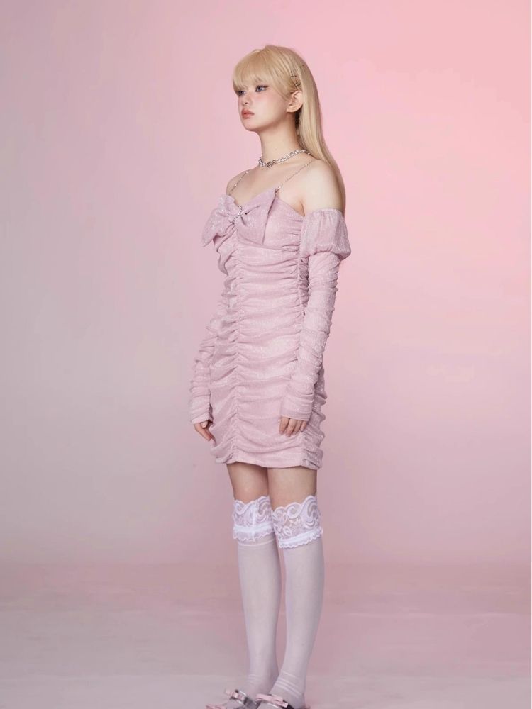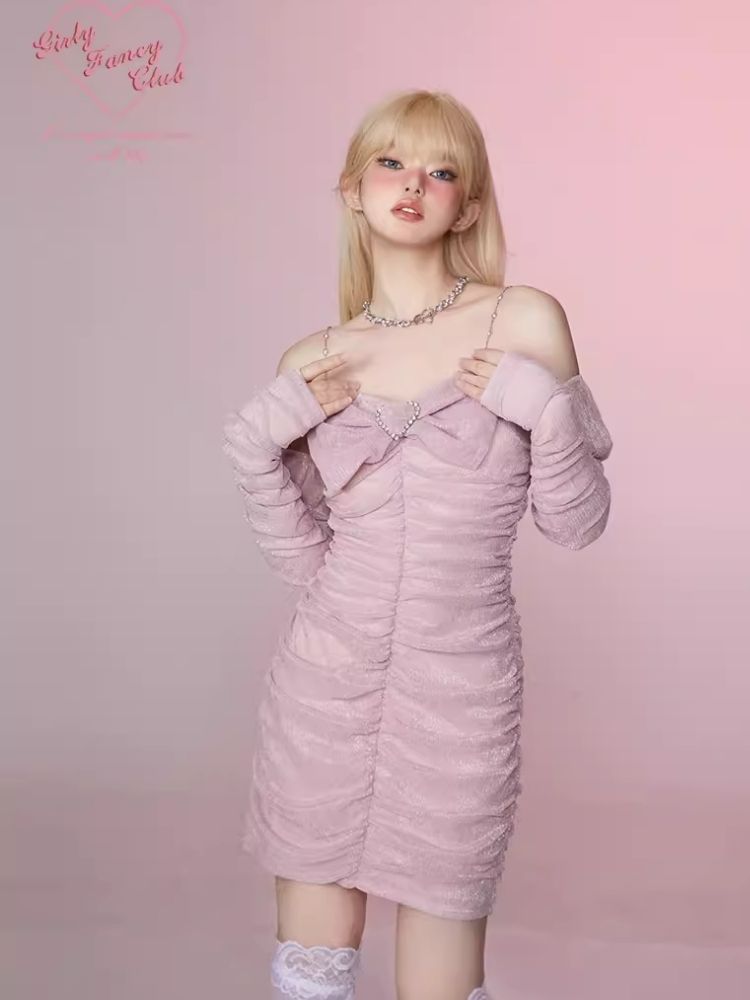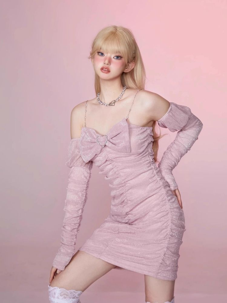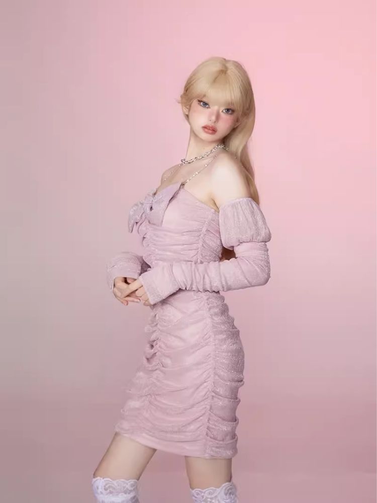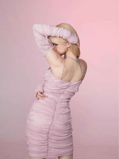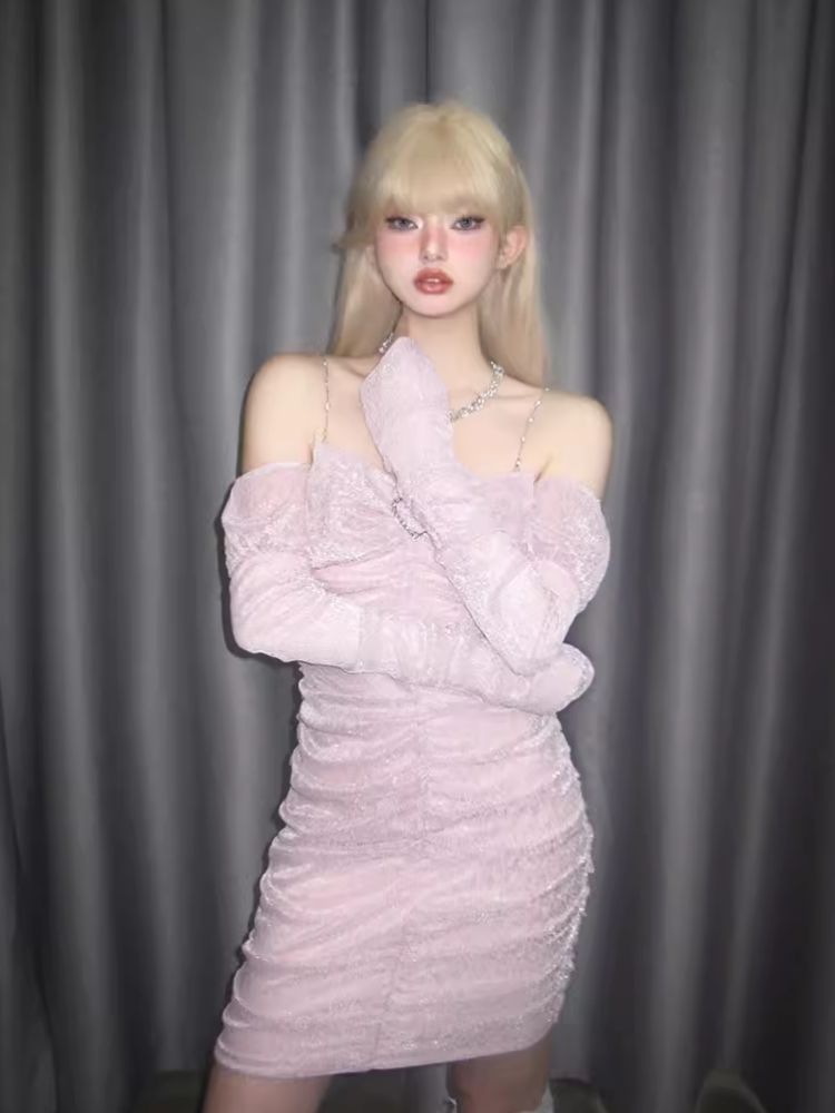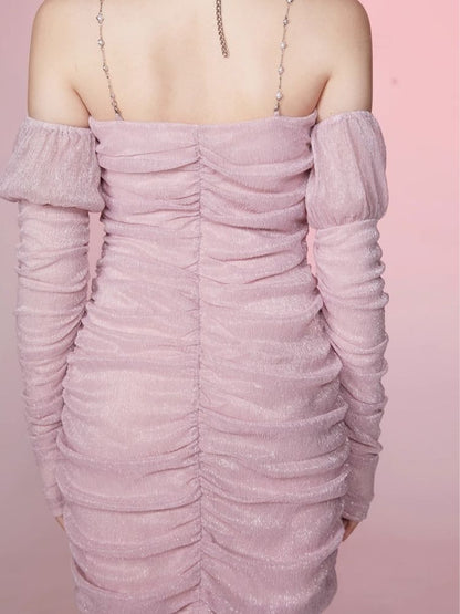 Pleated Slim Hip Skirt Chain Halter Dress【s0000006342】