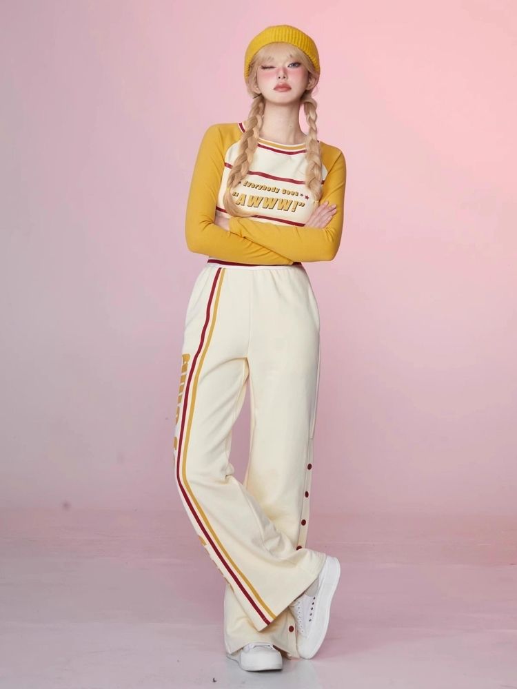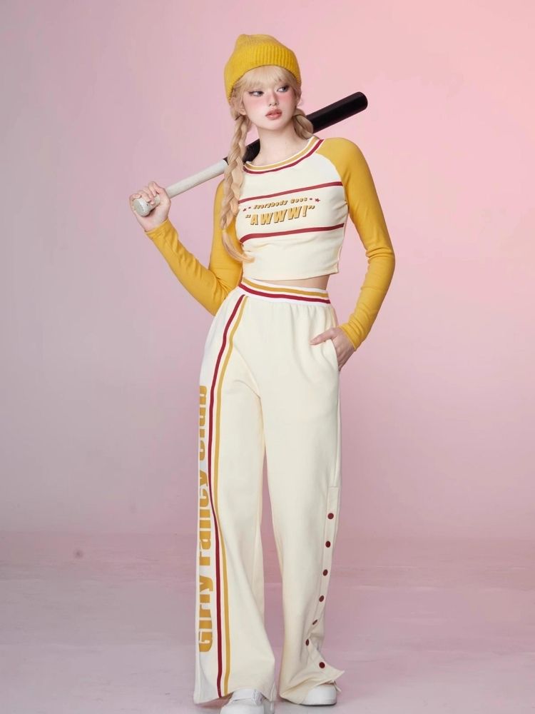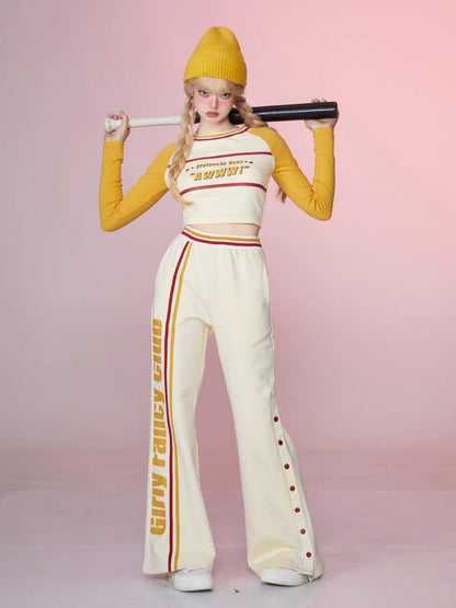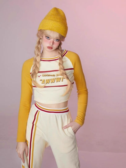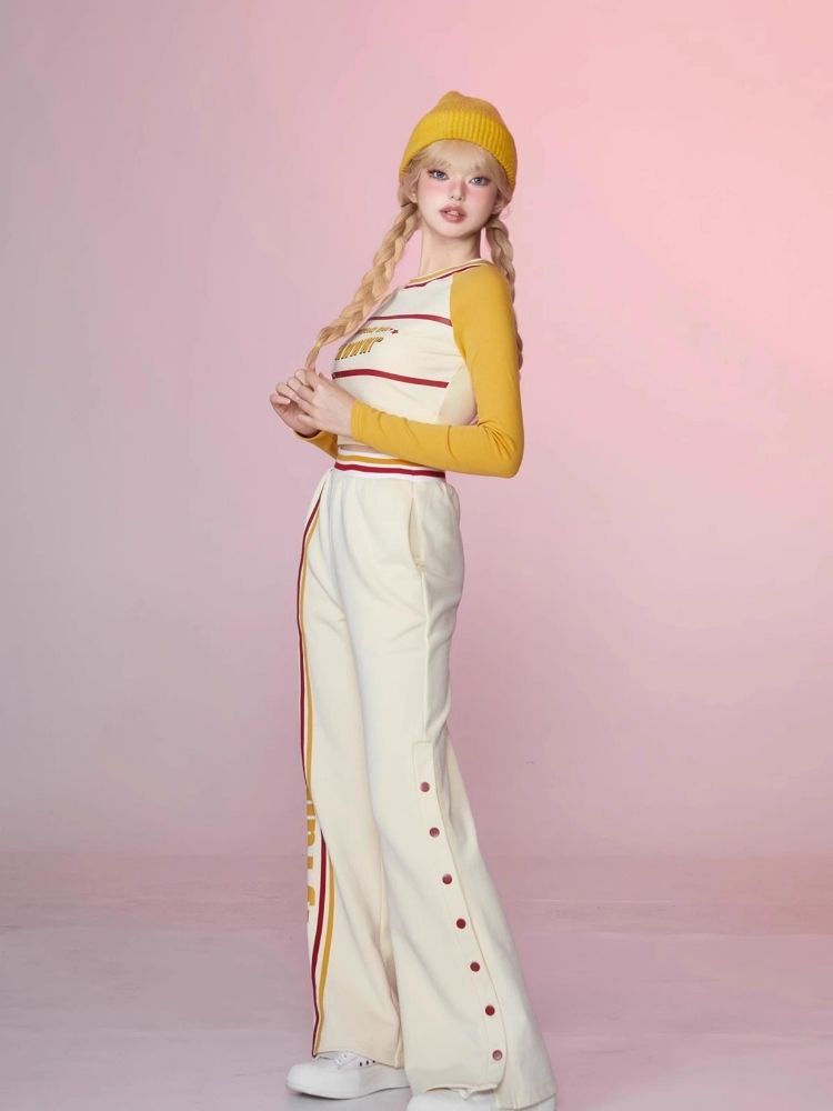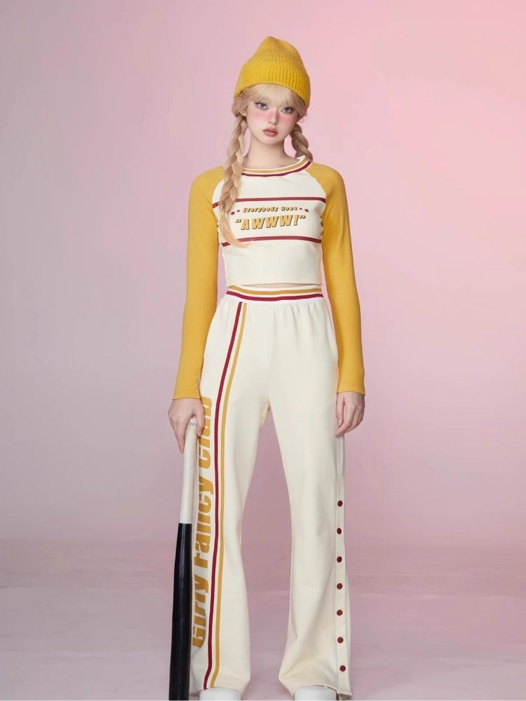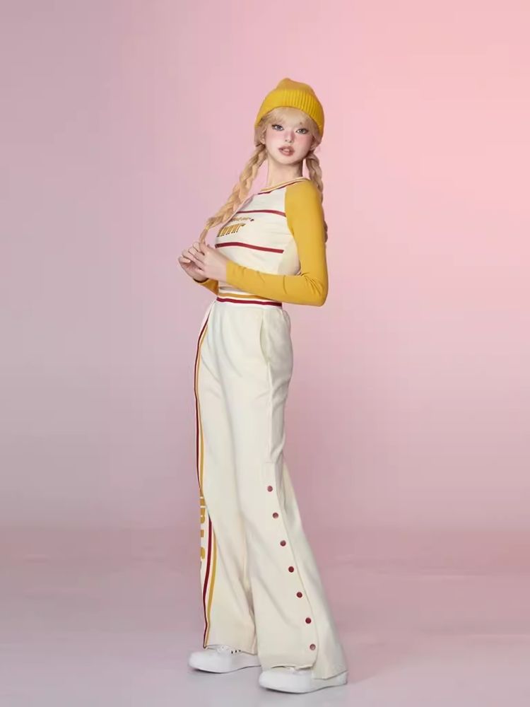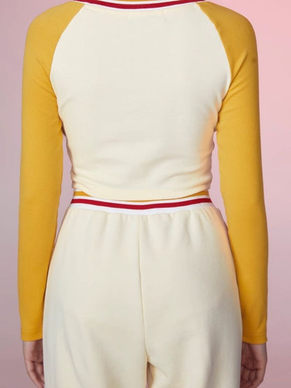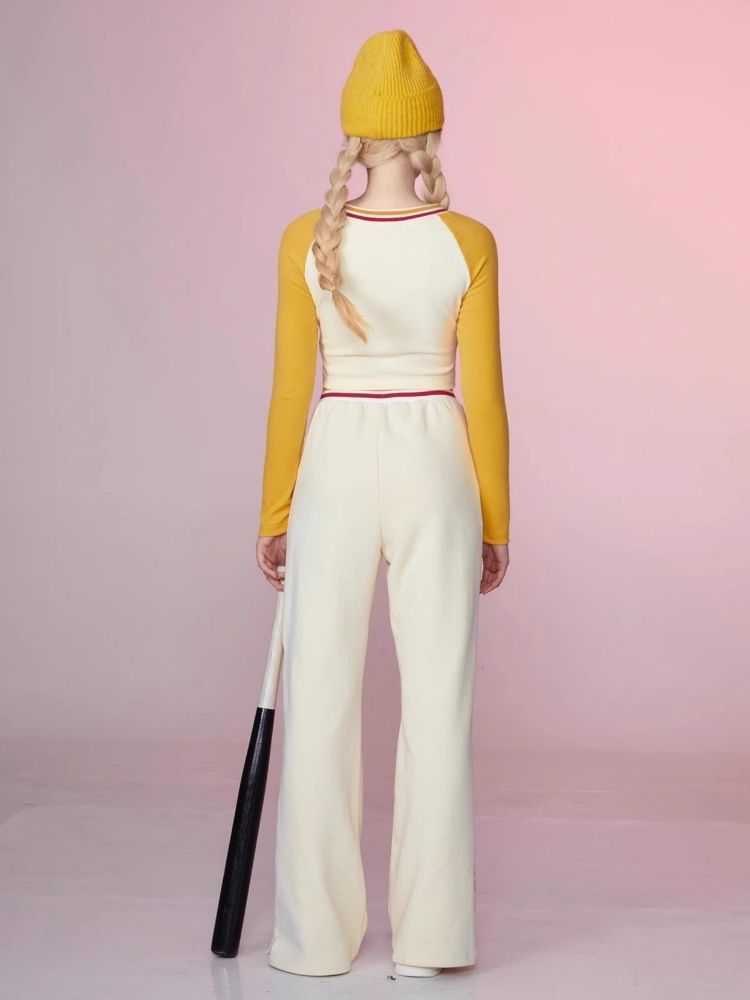 Colorblocked Plunger Long Sleeve t-shirt Casual Pants Set【s0000006343】