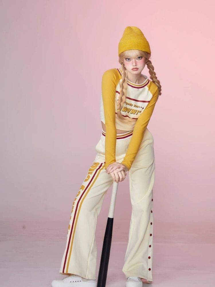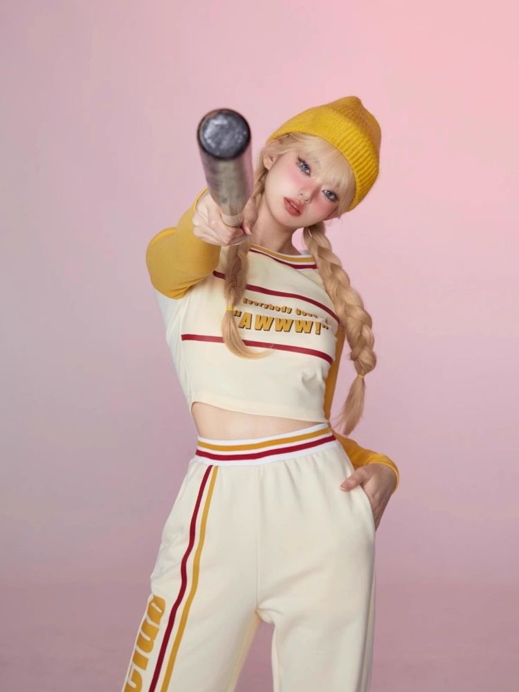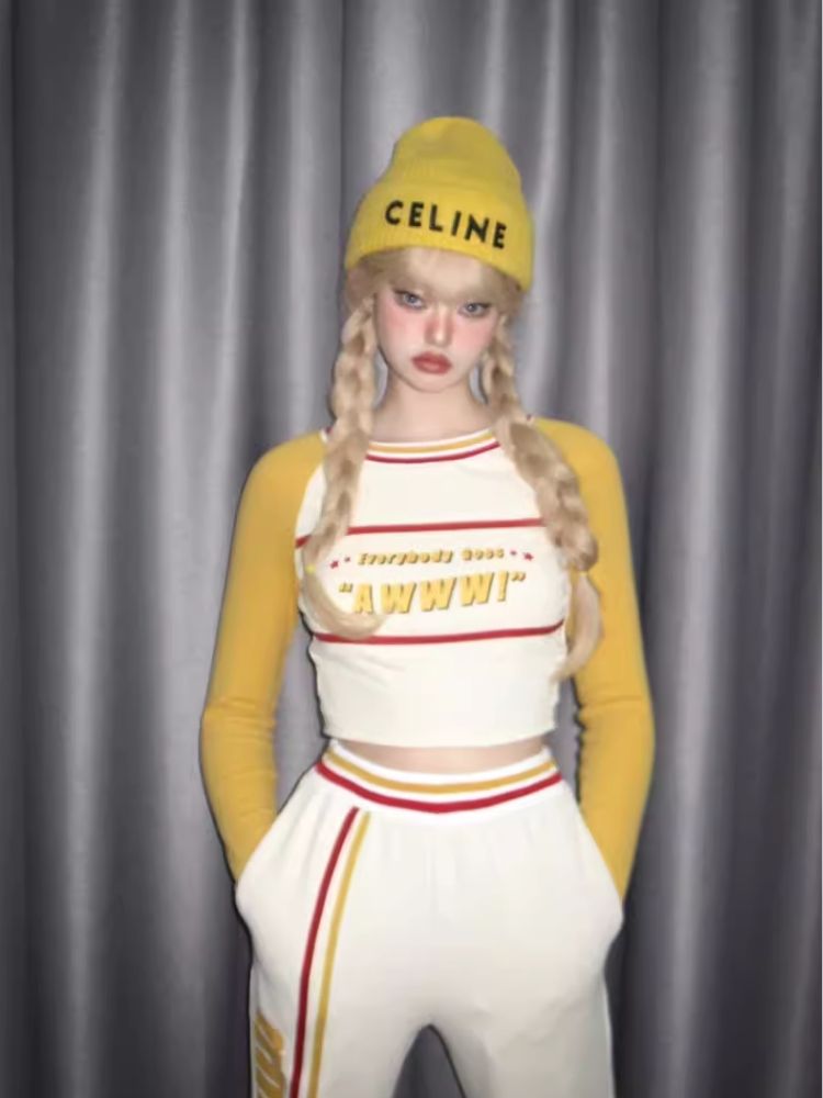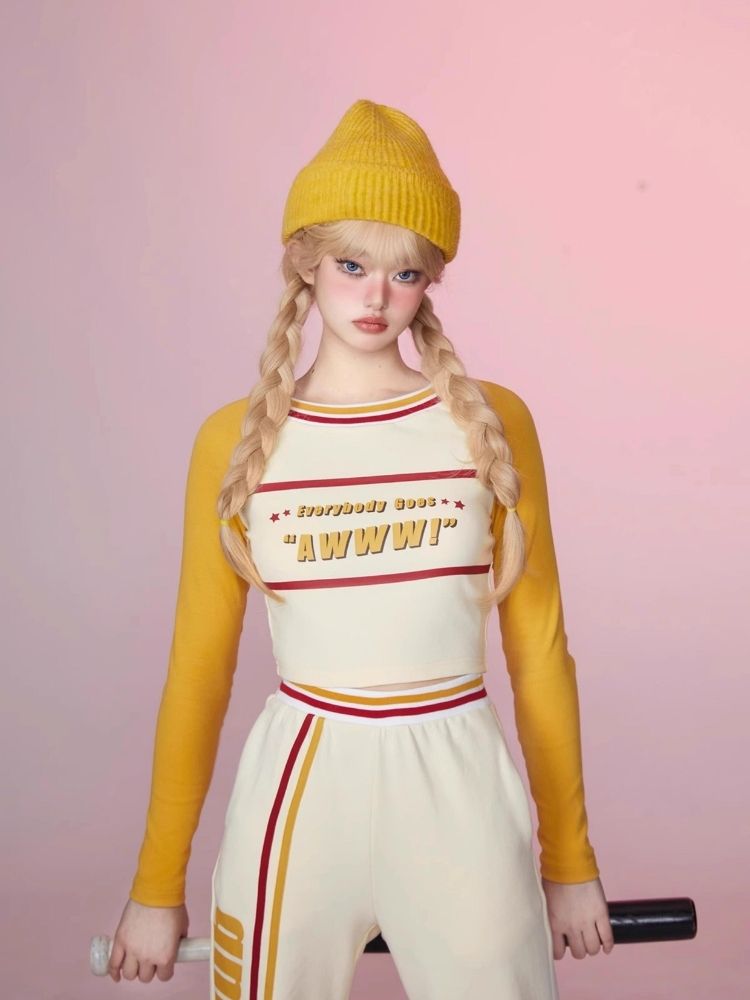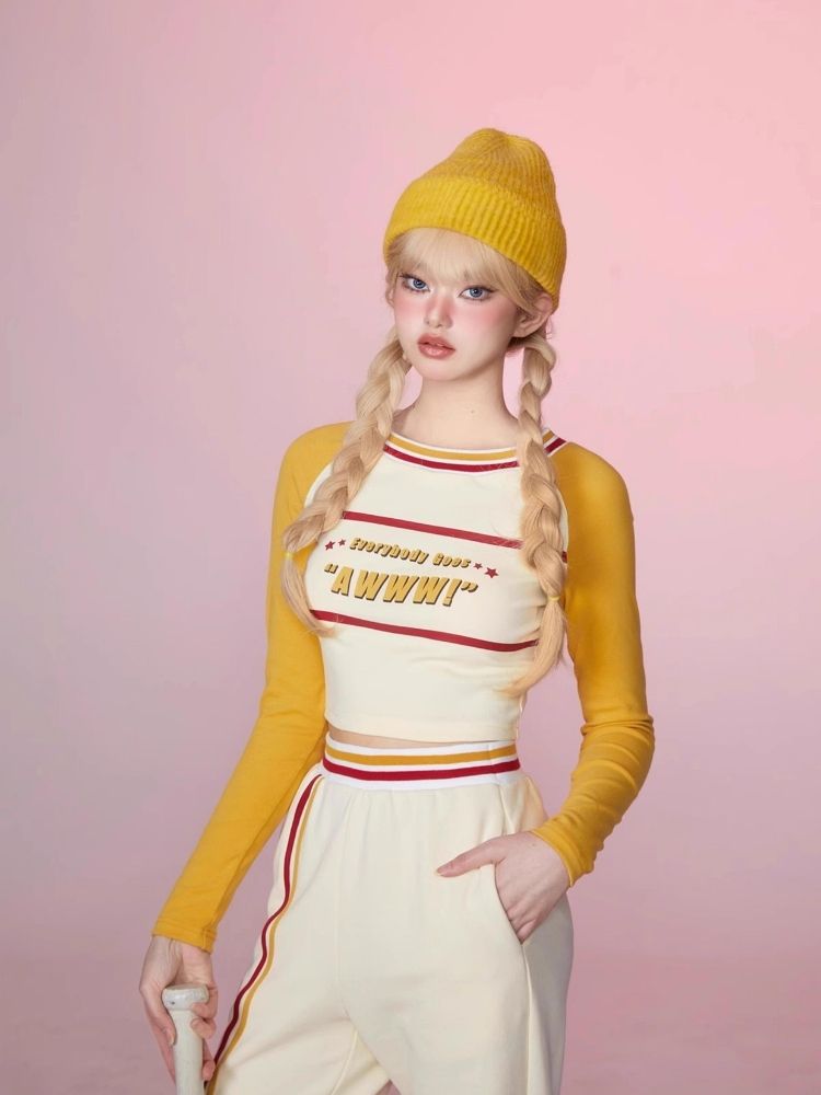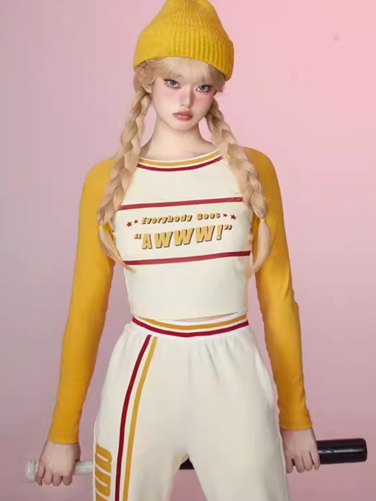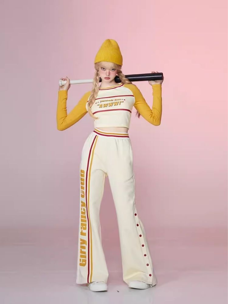 Colorblocked Plunger Long Sleeve t-shirt Casual Pants Set【s0000006343】