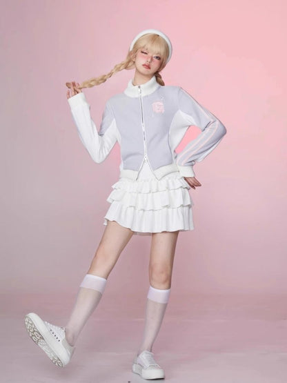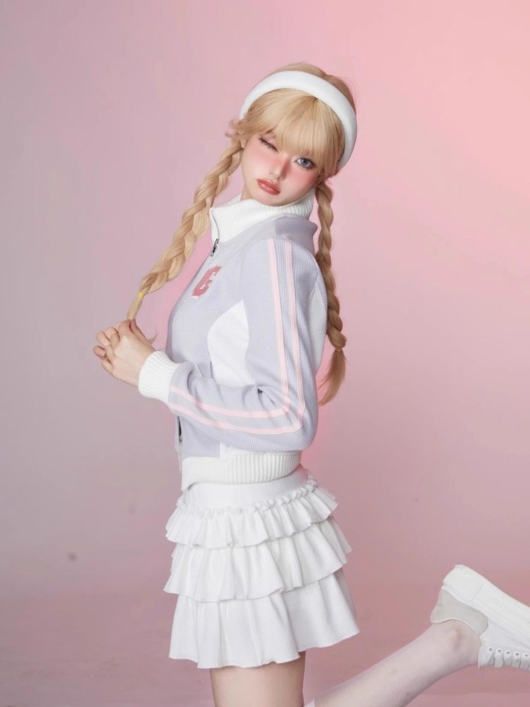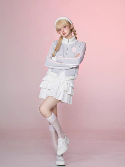 Stand Up Neck Top Double Zipper Sweatshirt【s0000006345】