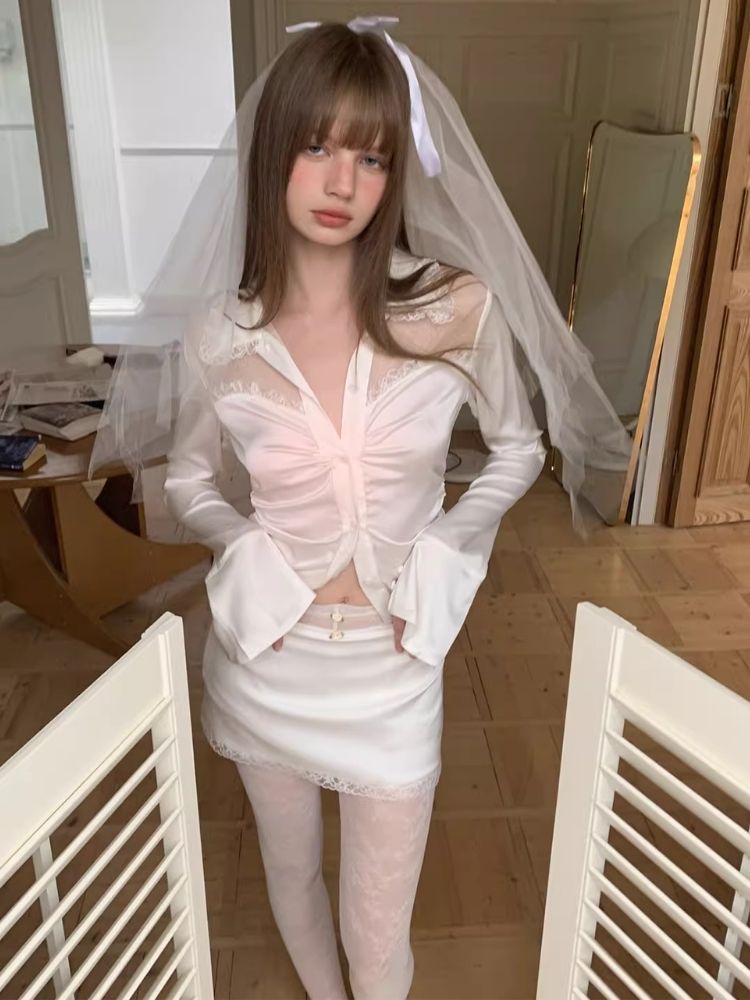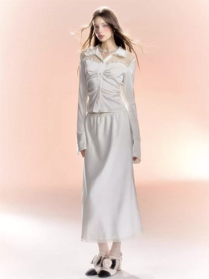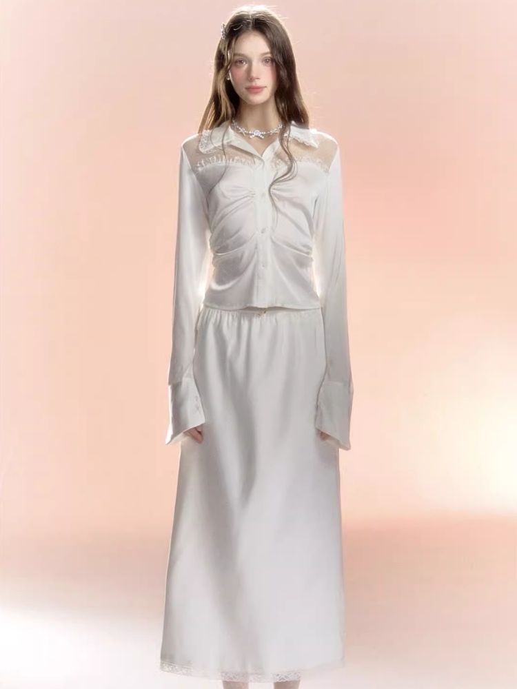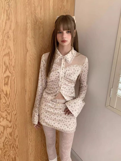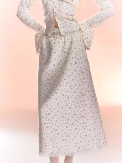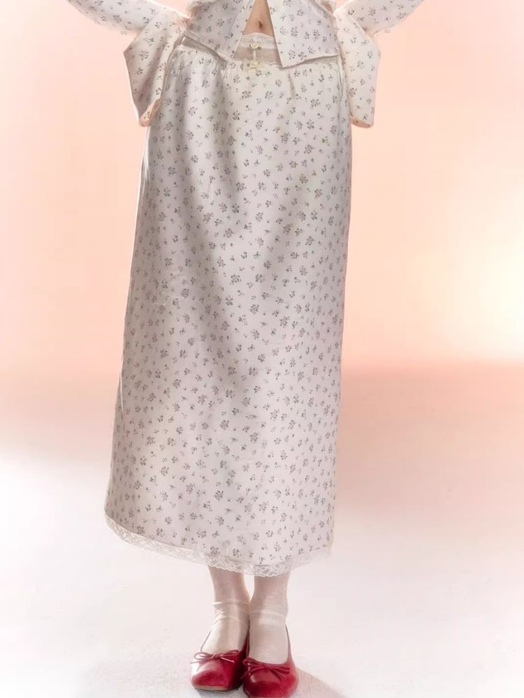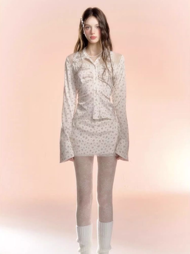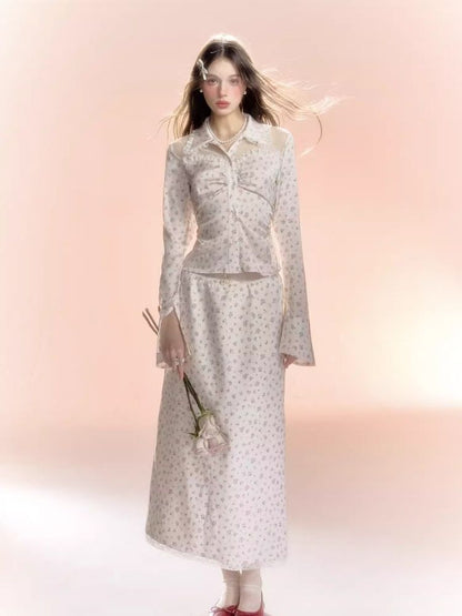 Lace Waisted Floral Tie Shirt Half Skirt Set 【s0000006438】