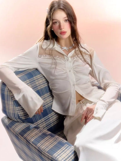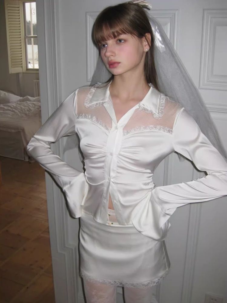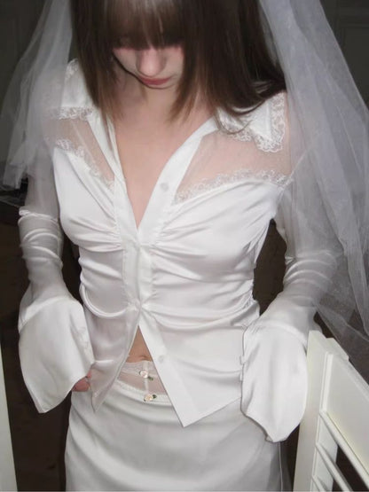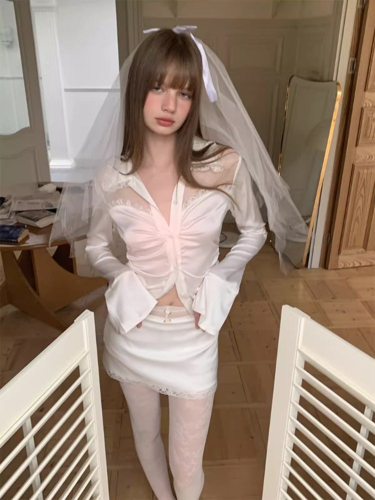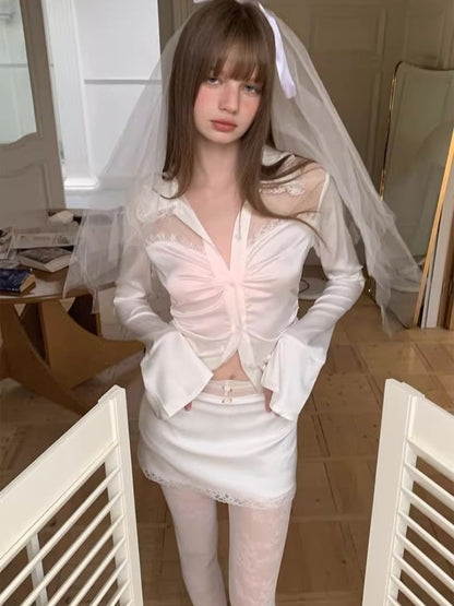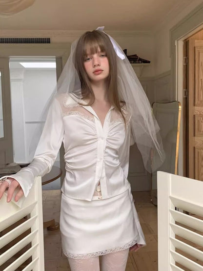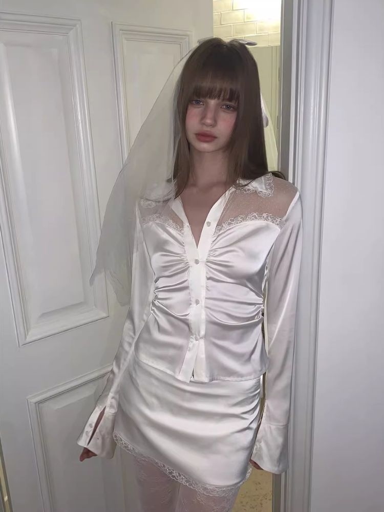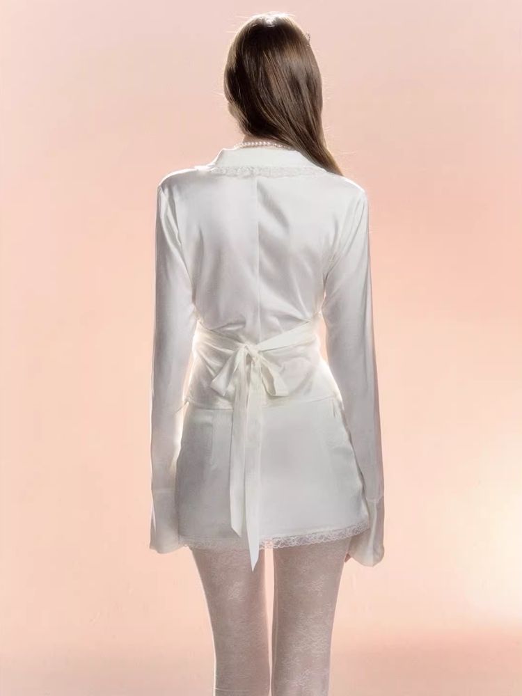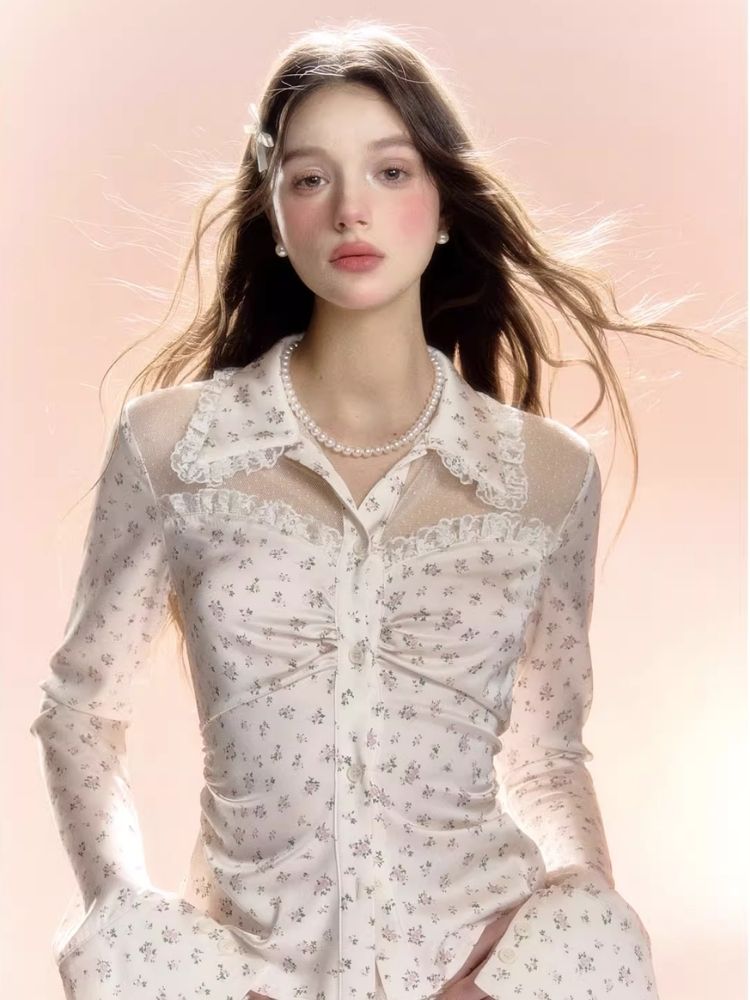 Lace Waisted Floral Tie Shirt Half Skirt Set 【s0000006438】