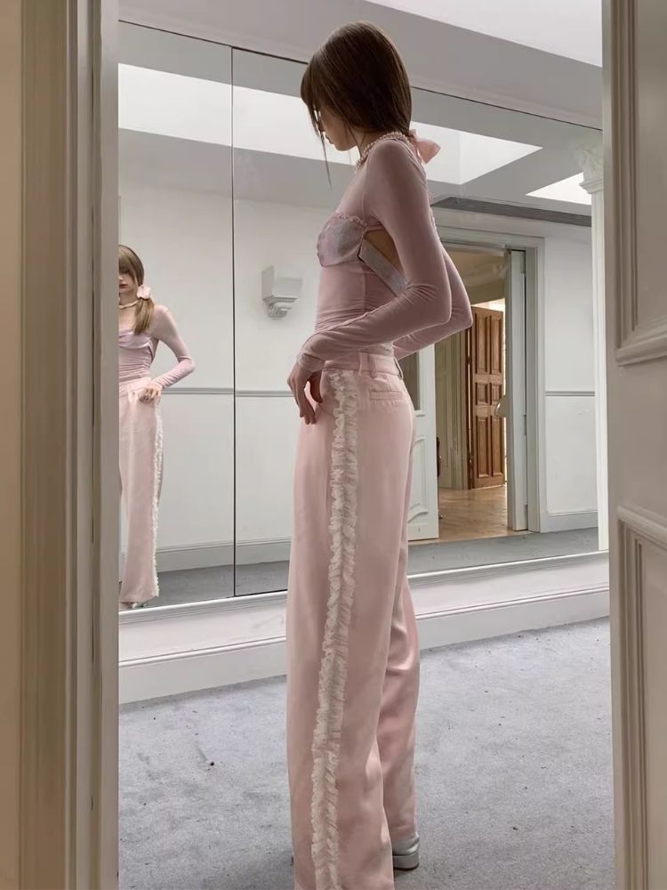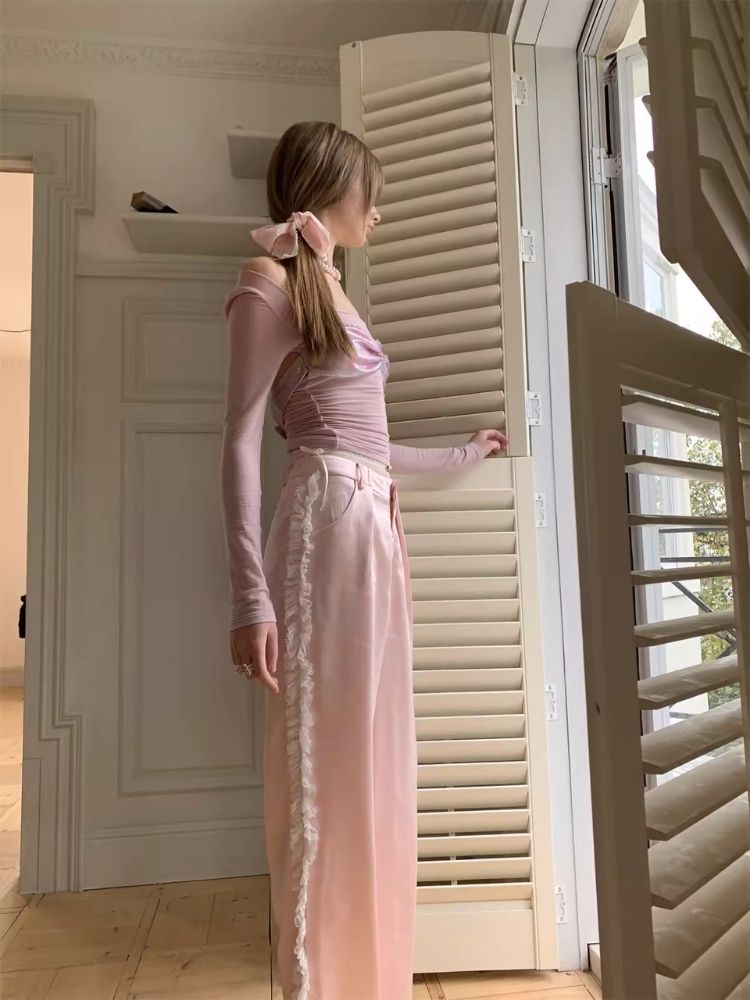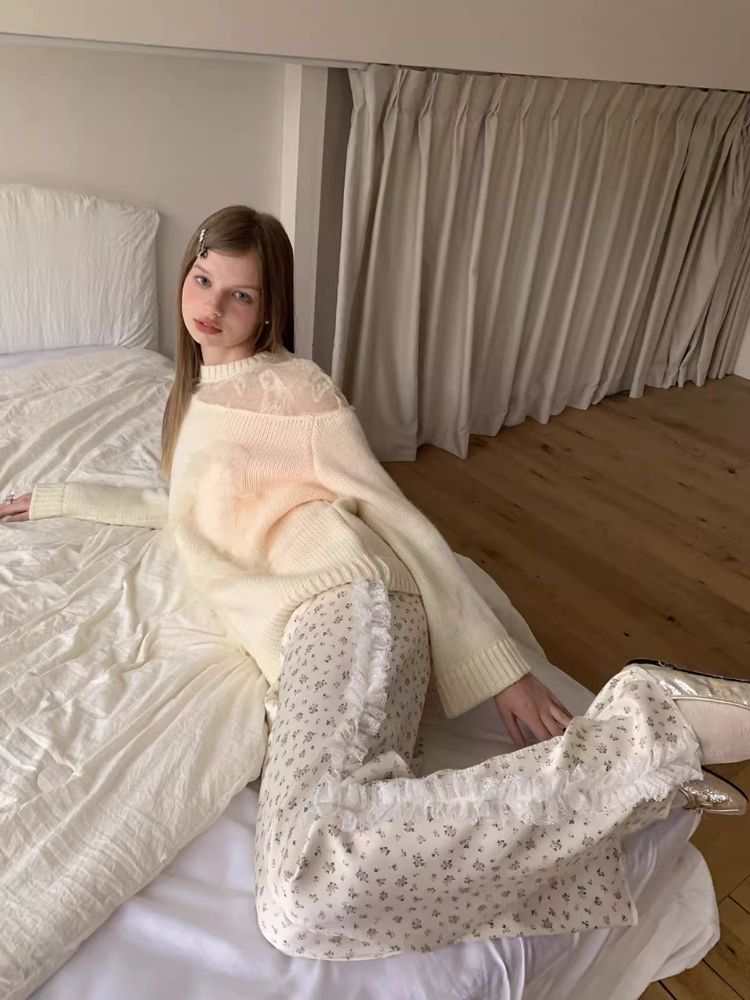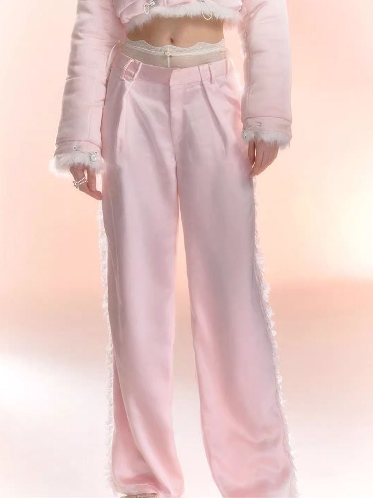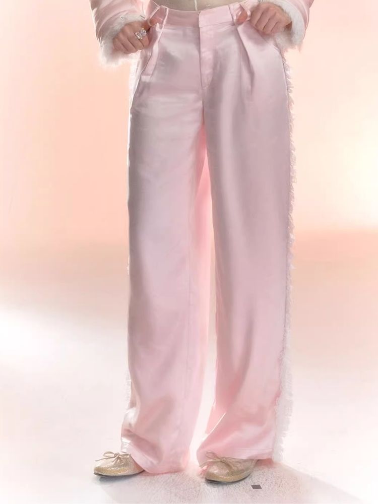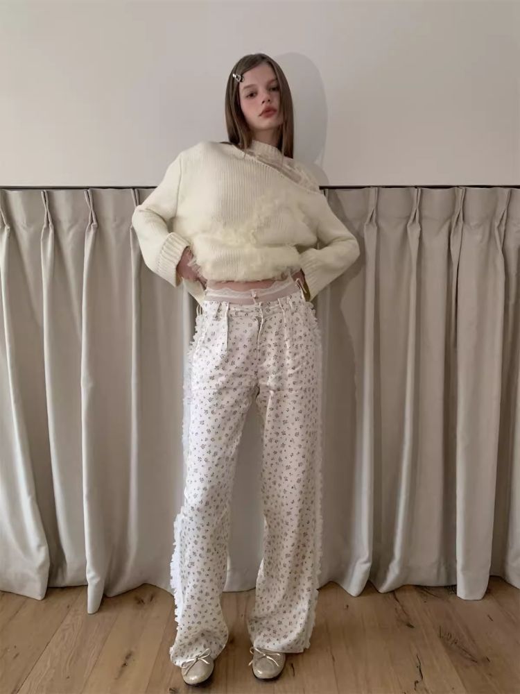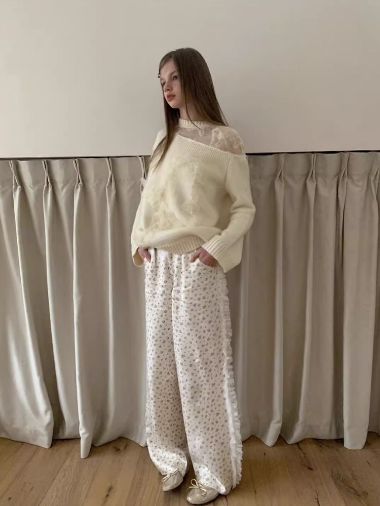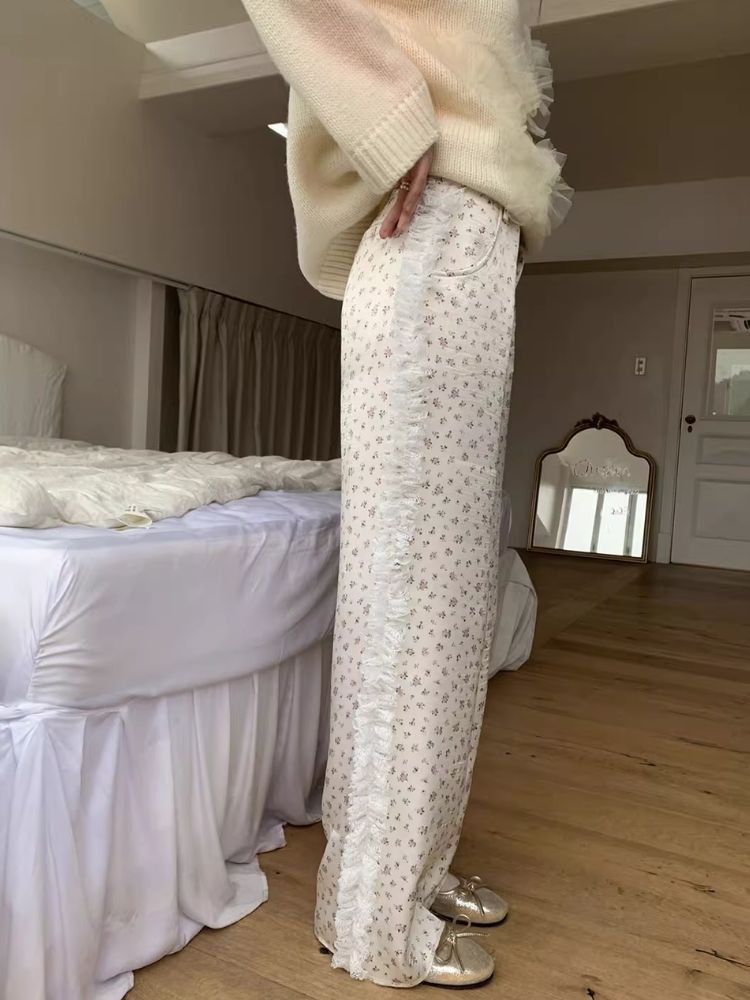 Patchwork Floral Satin Loose Pants【s0000006439】