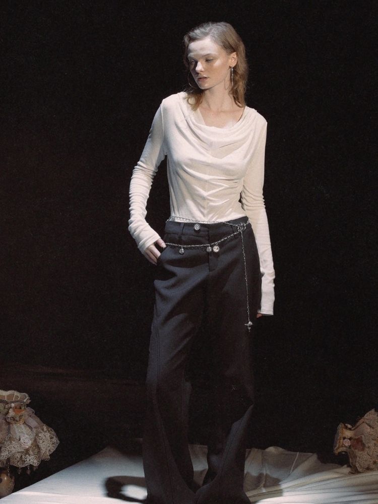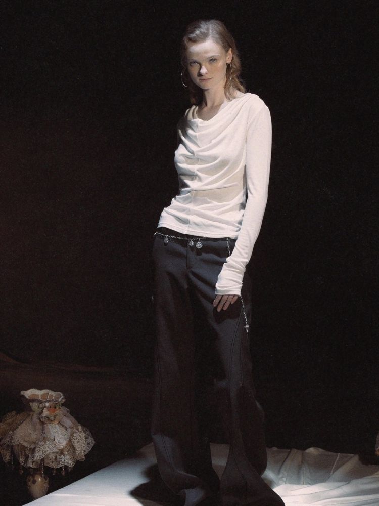 Line deconstruction tailoring draping original minimalist suit pants【s0000006444】