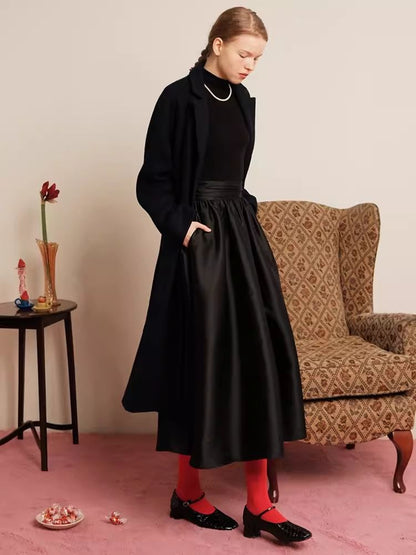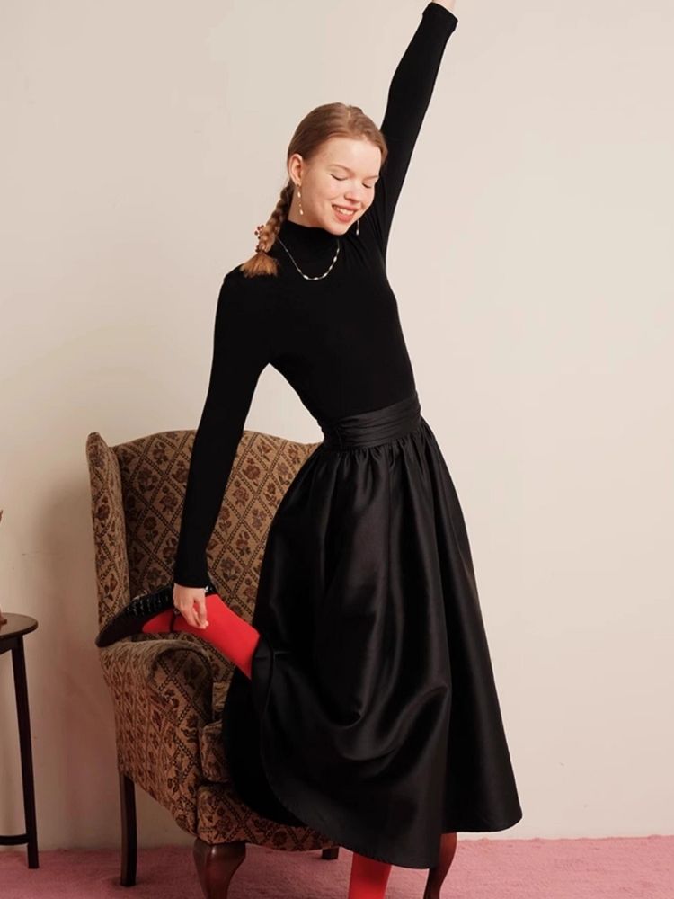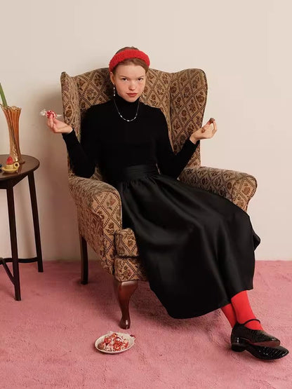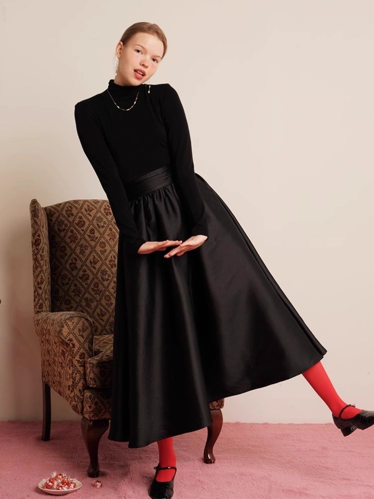 Knit Patchwork Satin Cocktail Black Maxi Dress【s0000006458】