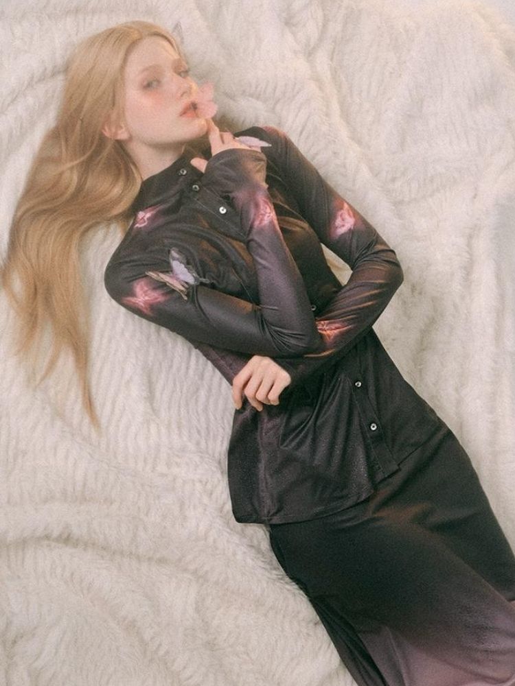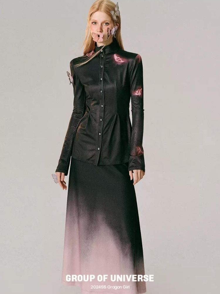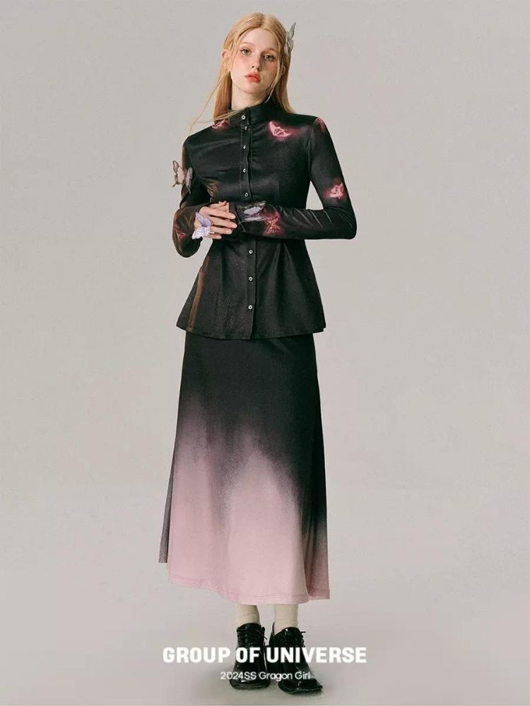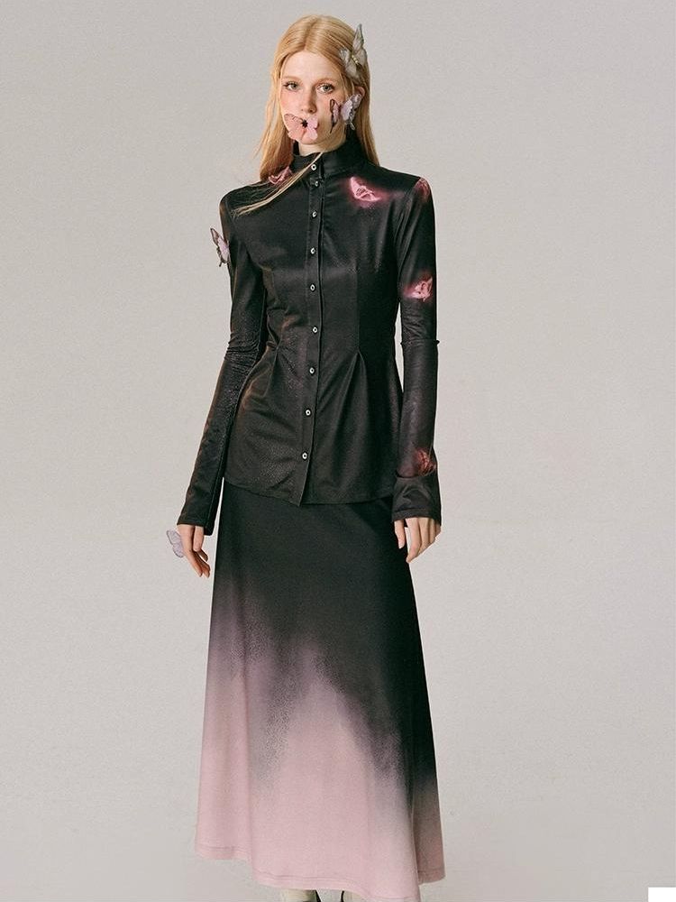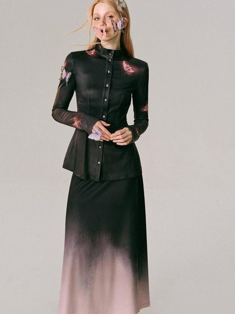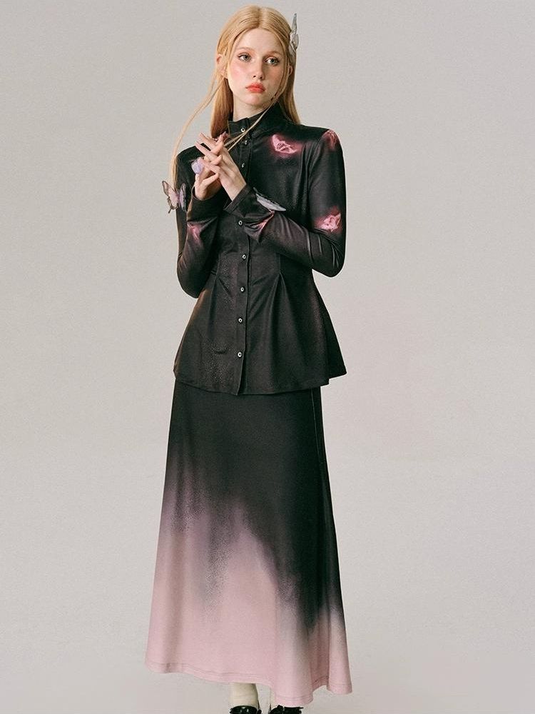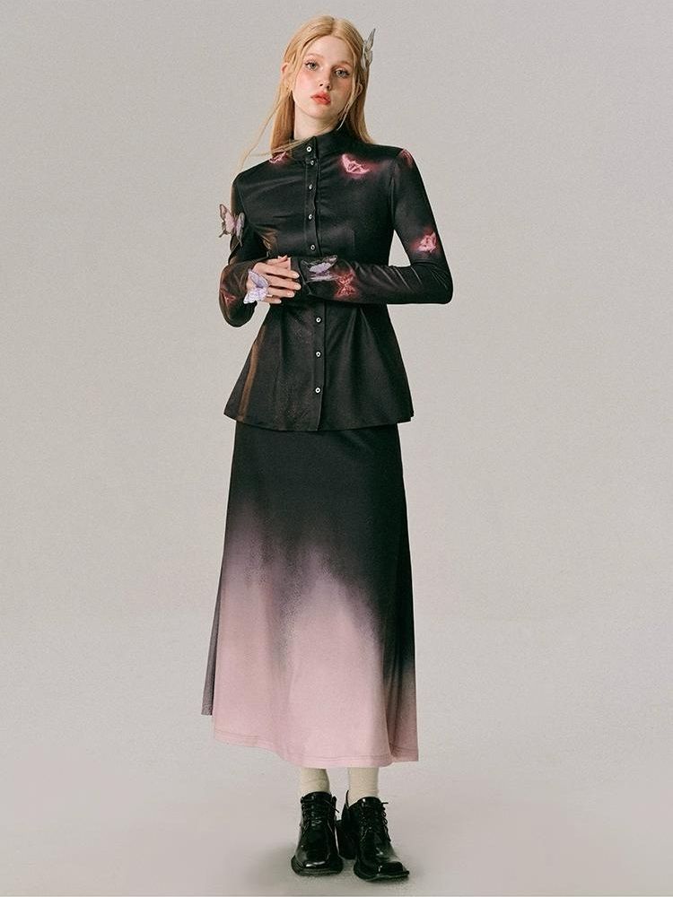 Gradient Neon Print Waistless Blouse + Long Skirt Set【s0000006490】