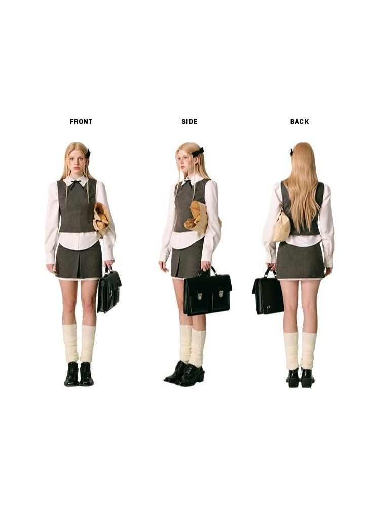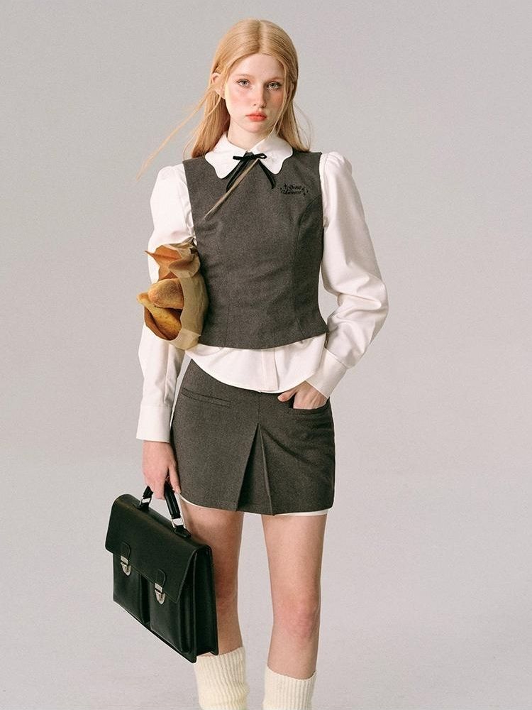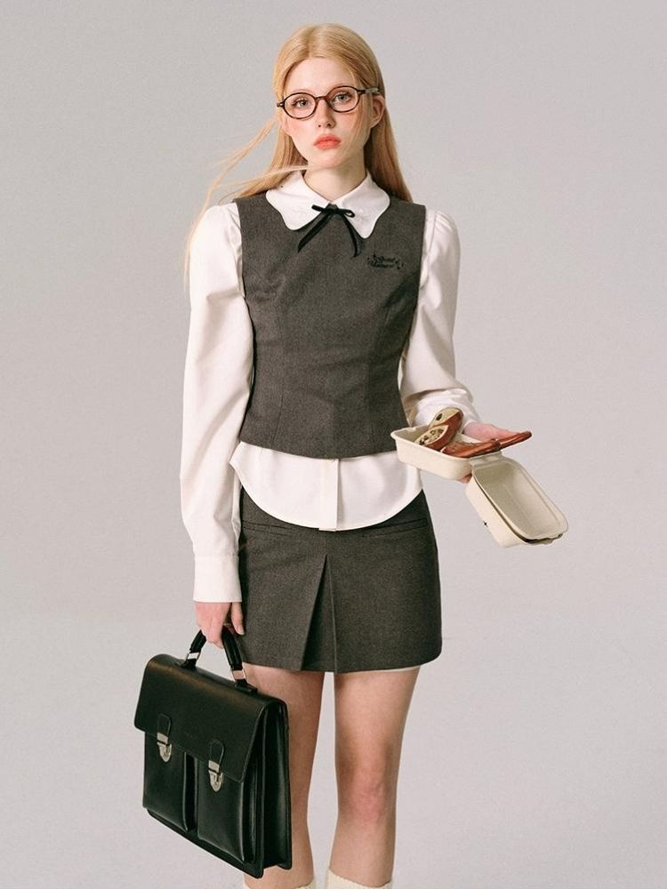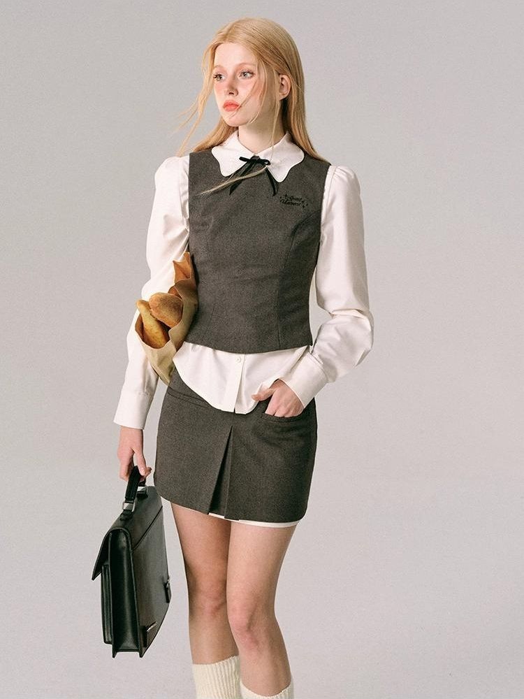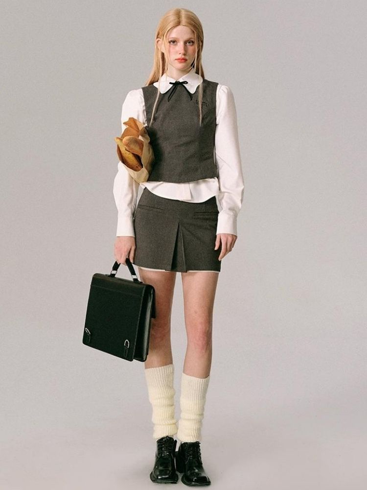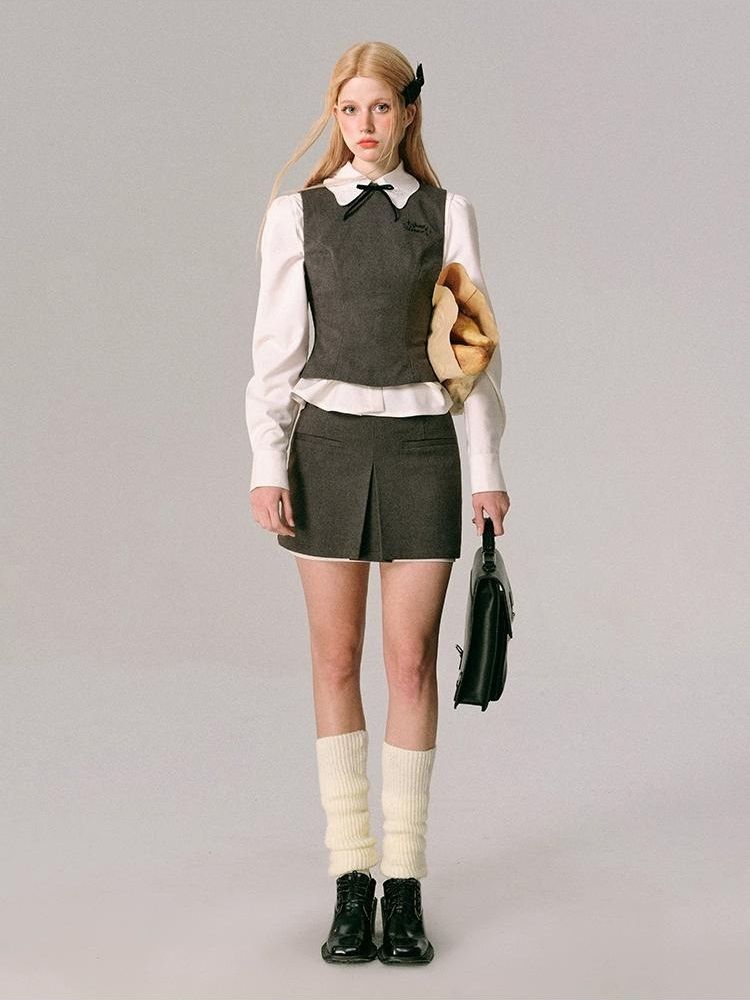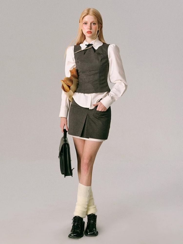 College style two-piece waisted vest half-skirt set【s0000006492】