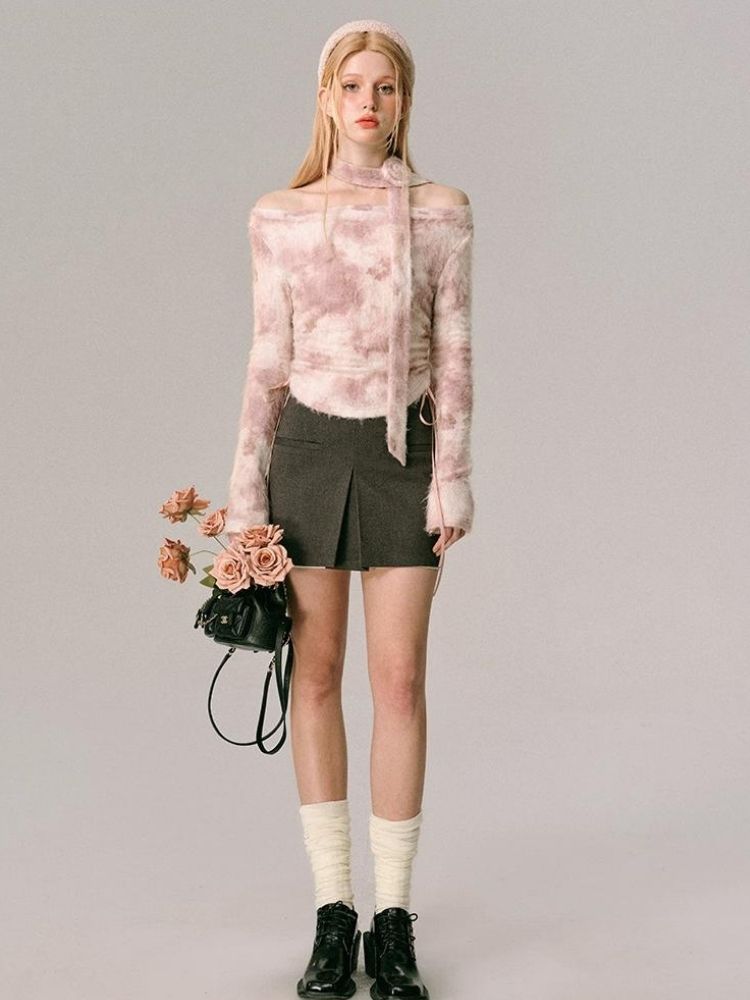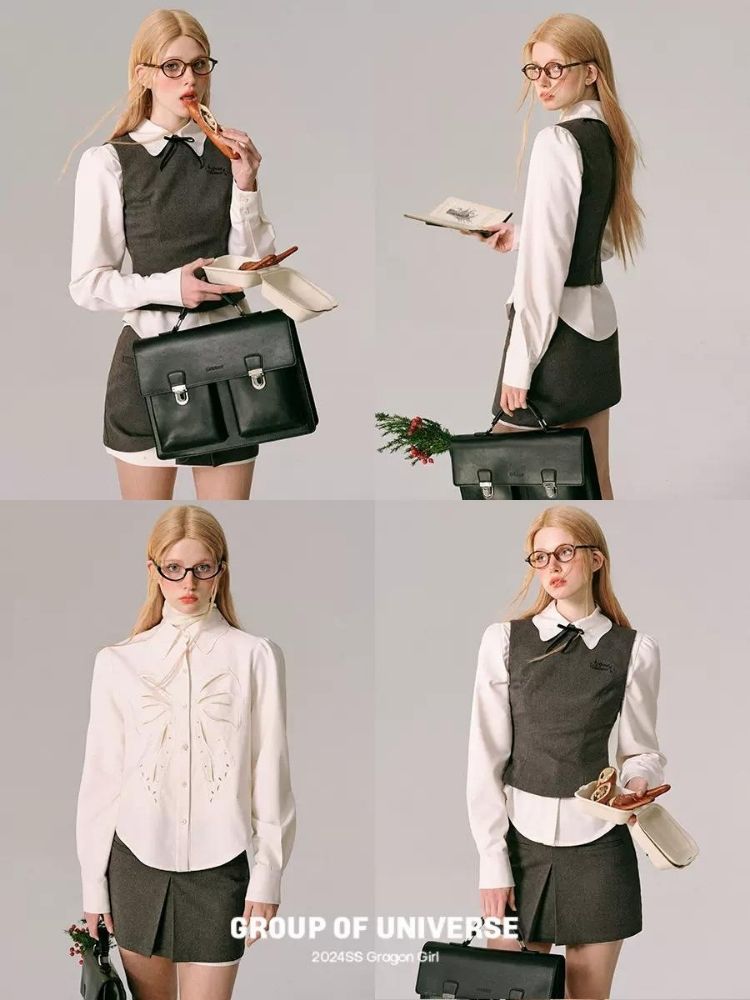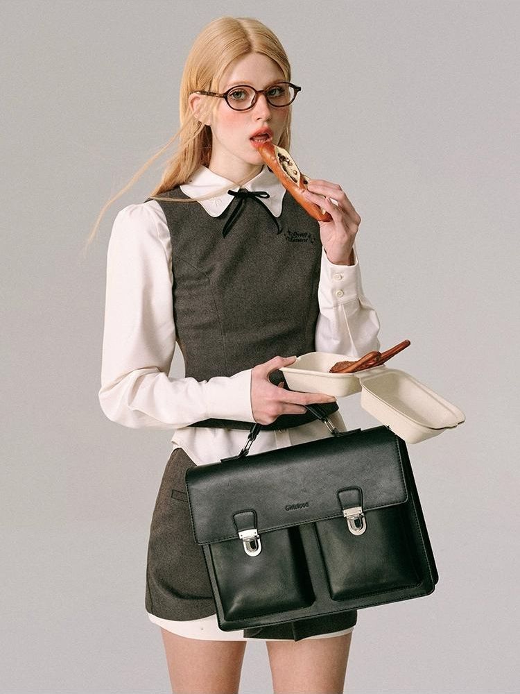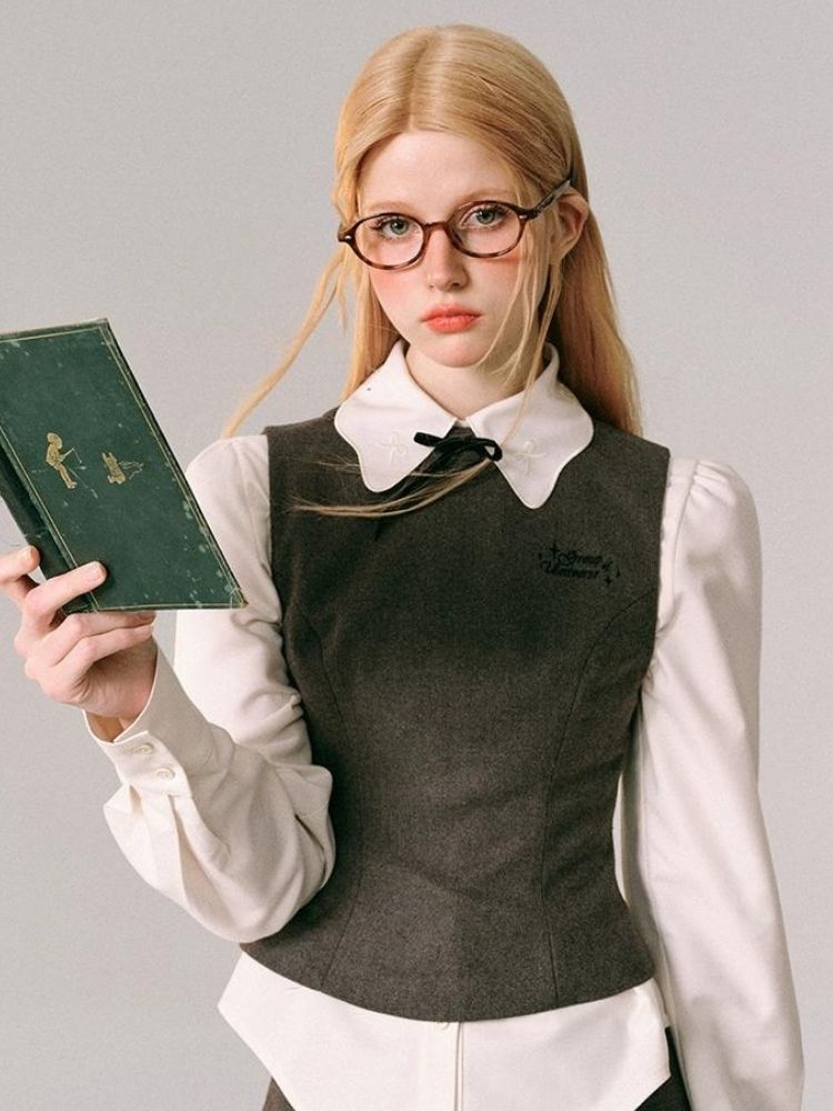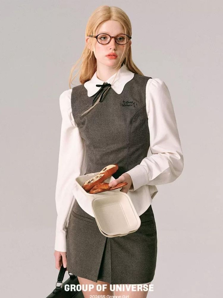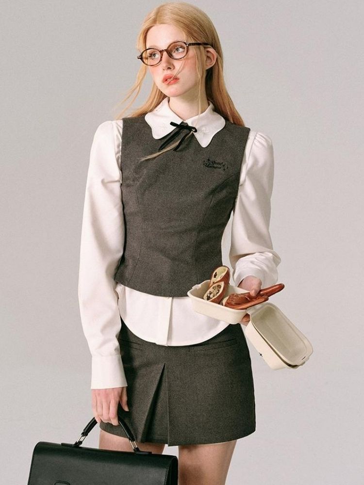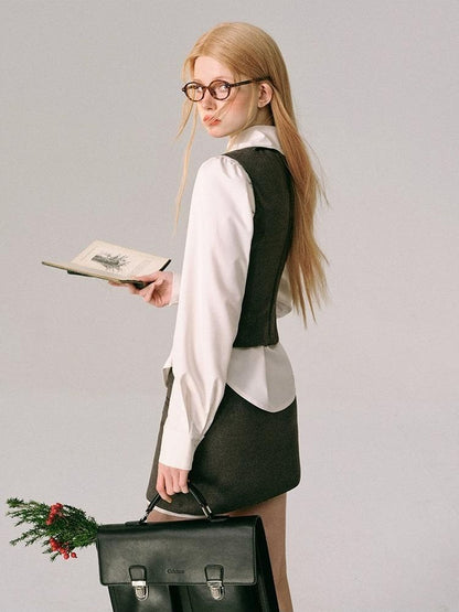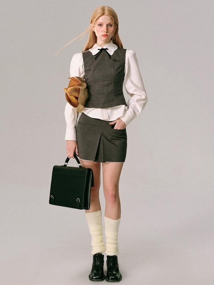 College style two-piece waisted vest half-skirt set【s0000006492】