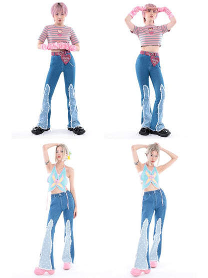 Stretch Flare Star Spliced Raw Edge Jeans【s0000006582】