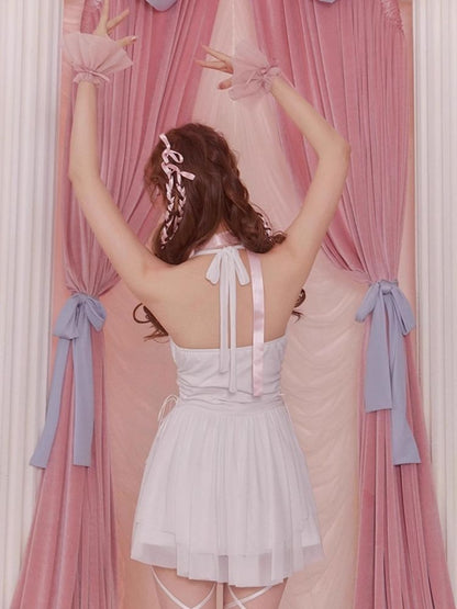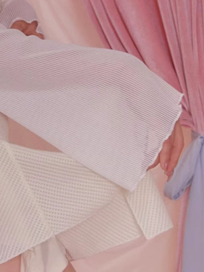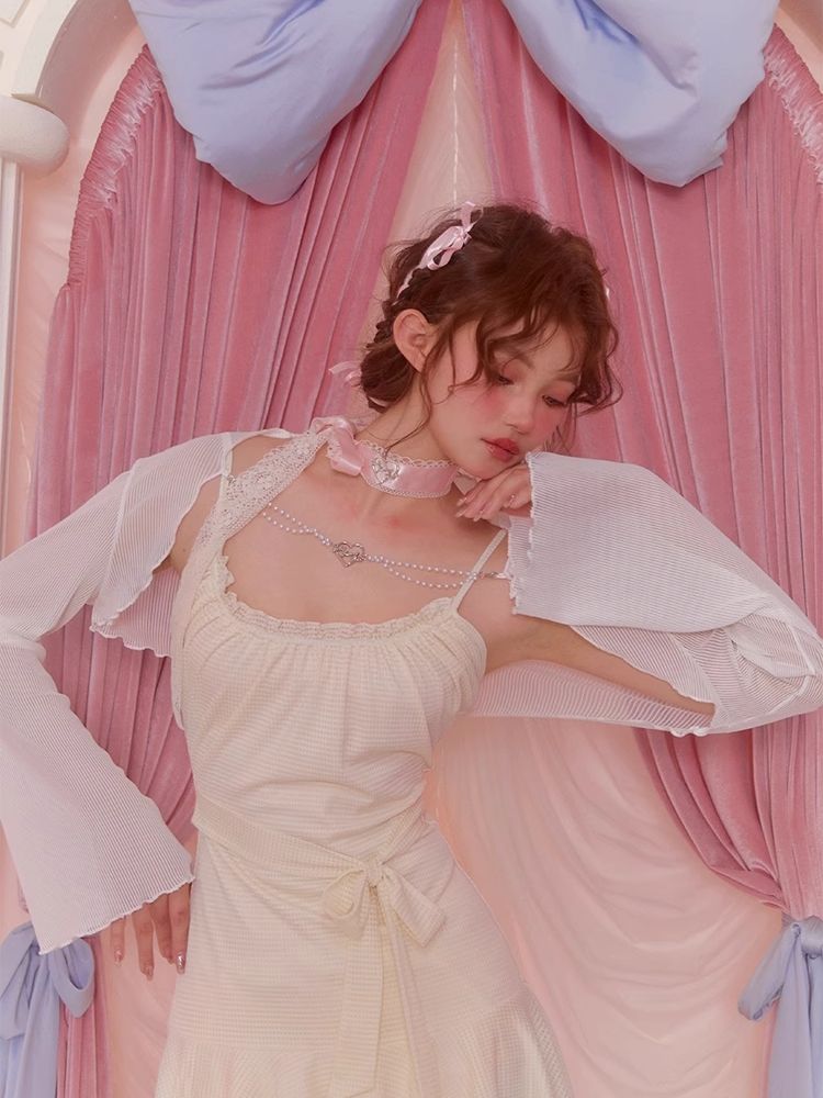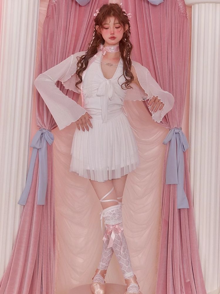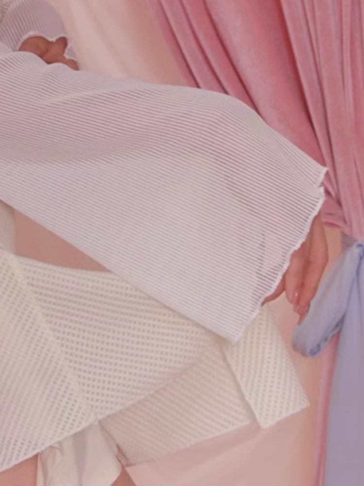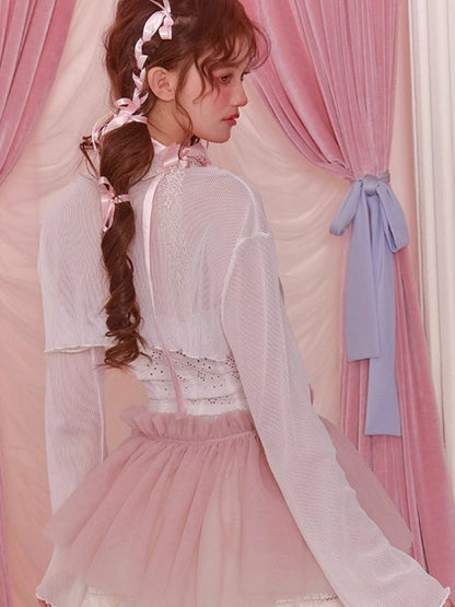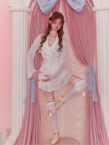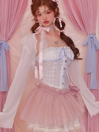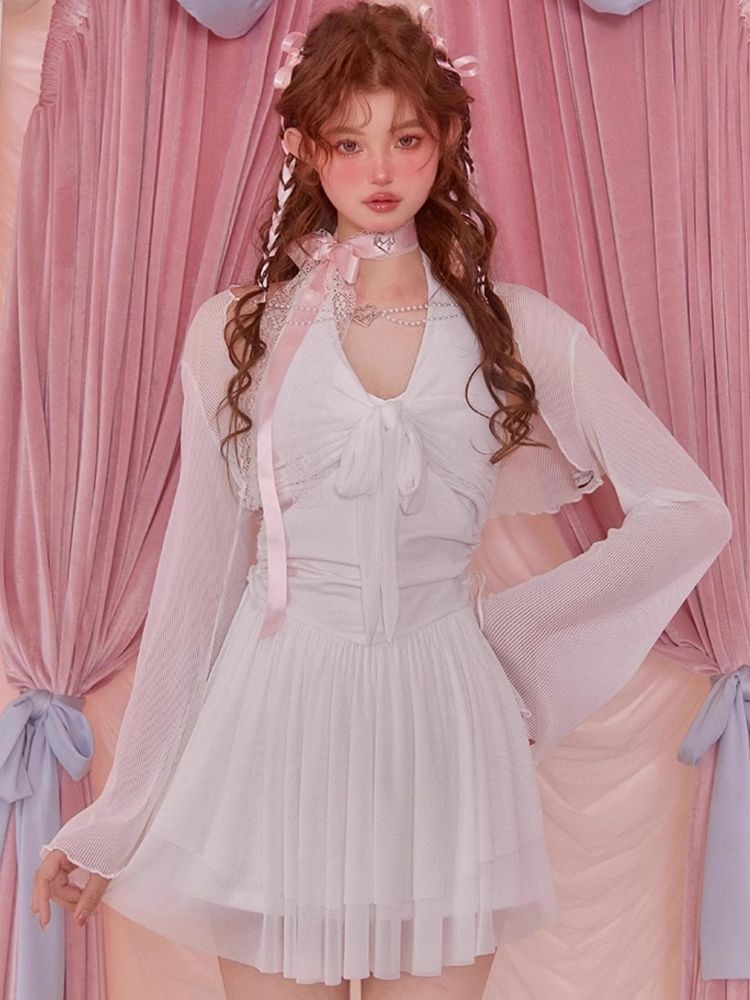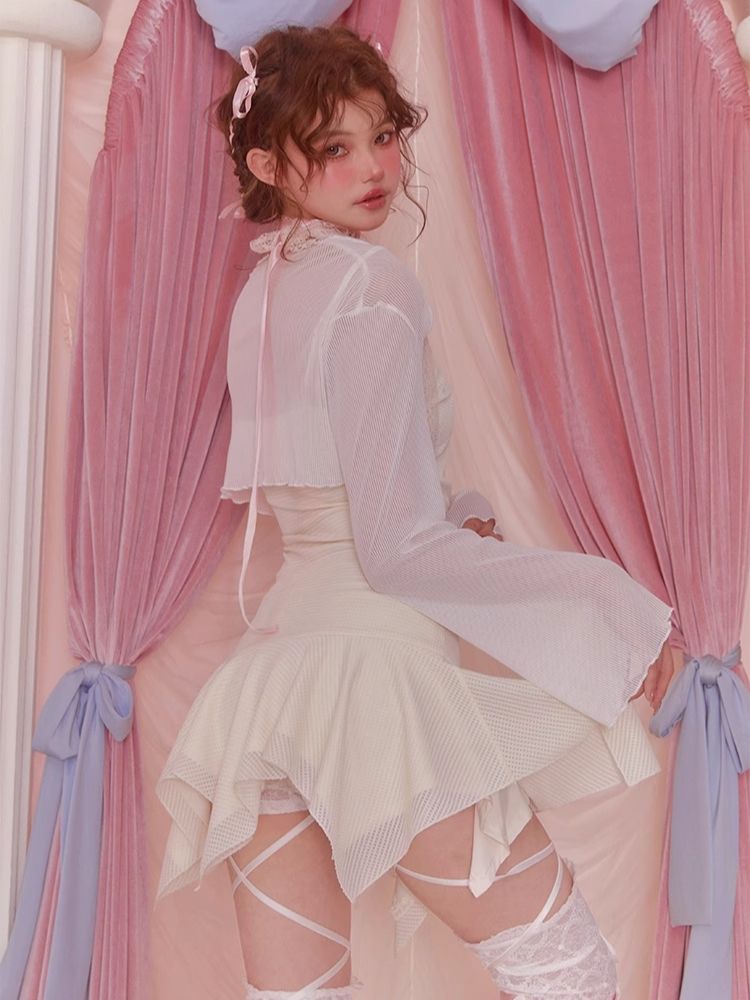 White Short Flared Sleeve Mesh Blouse【s0000006589】