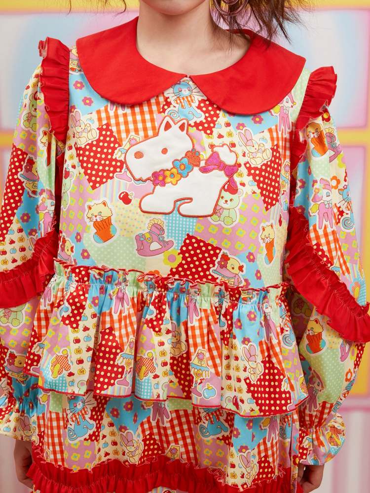 Plaid Doll Collar Print Cartoon Dress【s0000006671】