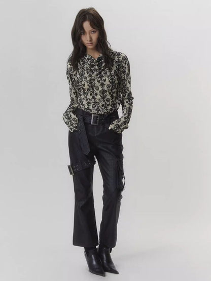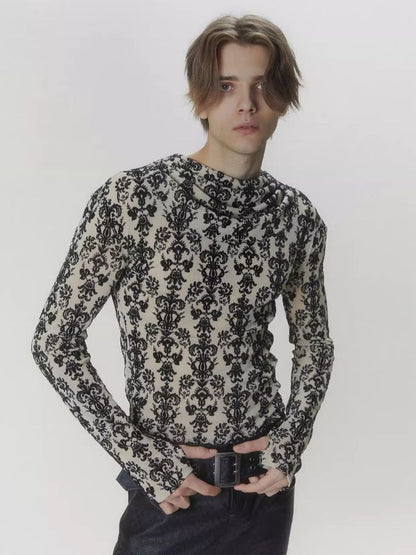 Punk Court Flocking Print Stretch Slim Bottom Sweater【s0000006681】